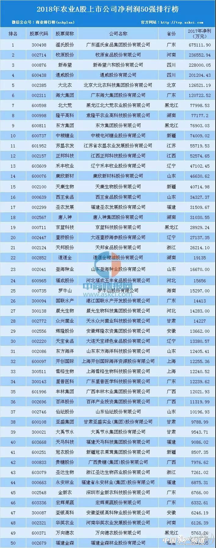 中國(guó)水產(chǎn)頻道報(bào)道,日前,農(nóng)業(yè)行業(yè)有84家上市公司披露了2017年報(bào)。在2018年農(nóng)業(yè)A股上市企業(yè)凈利潤(rùn)50強(qiáng)排行榜中,50強(qiáng)農(nóng)業(yè)上市企業(yè)凈利潤(rùn)總額為263.13億元。 具體來(lái)看,2018年農(nóng)業(yè)行業(yè)凈利潤(rùn)排名前十企業(yè)依次為溫氏股份、牧原股份、新希望、通威股份、大北農(nóng)、海大集團(tuán)、北大荒、隆平高科、東方集團(tuán)、中糧糖業(yè)。 其中,溫氏股份最賺錢,以67.5億凈利潤(rùn)位列榜首;牧原股份則以23.67億元排名第二;新希望位列第三,2017年新希望凈利為22.8億元。值得提出的是,2018年農(nóng)業(yè)A股上市企業(yè)中,排名前四企業(yè)凈利均超20億,其凈利總額為134.09億元。以下為2018年農(nóng)業(yè)行業(yè)上市公司凈利潤(rùn)排名情況: 2018年農(nóng)業(yè)A股上市公司 凈利潤(rùn)50強(qiáng)排行榜 溫氏股份 4月9日晚,廣東溫氏食品集團(tuán)股份有限公司(簡(jiǎn)稱“溫氏股份”)發(fā)布2017年年度報(bào)告,稱報(bào)告期內(nèi)公司實(shí)現(xiàn)銷售收入556.57億元,同比下降6.23%;實(shí)現(xiàn)歸屬于上市公司股東的凈利潤(rùn)67.51億元,同比下降42.74%。業(yè)績(jī)同比下降的主要原因是受養(yǎng)豬、養(yǎng)雞業(yè)務(wù)市場(chǎng)行情波動(dòng)影響。值得一說(shuō)的是,構(gòu)建產(chǎn)業(yè)鏈閉環(huán)模式的溫氏股份,2017年末的應(yīng)收賬款僅1.73億元,占總資產(chǎn)的0.35%。 通威股份 3月30日,通威股份發(fā)布2017年年度報(bào)告。報(bào)告期內(nèi),通威股份實(shí)現(xiàn)營(yíng)業(yè)收入260.89億元,同比增長(zhǎng)24.92%;實(shí)現(xiàn)歸屬于上市公司股東的凈利潤(rùn)20.12億元,同比增長(zhǎng)96.35%,其中扣除非經(jīng)常性損益后歸屬于上市公司股東的凈利潤(rùn)19.62億元,同比增長(zhǎng)219.96%。公司各業(yè)務(wù)板塊均呈現(xiàn)較快速度增長(zhǎng)。 大北農(nóng) 3月30日晚,北京大北農(nóng)科技集團(tuán)股份有限公司(簡(jiǎn)稱“大北農(nóng)”)發(fā)布2017年年度報(bào)告,報(bào)告期內(nèi),公司實(shí)現(xiàn)營(yíng)業(yè)總收入187.42億元,比上年同期增長(zhǎng)11.29%,營(yíng)業(yè)利潤(rùn)15.77億元,比上年同期增長(zhǎng)55.47%,利潤(rùn)總額15.67億元,比上年同期增長(zhǎng)40.21%,歸屬于上市公司股東的凈利潤(rùn)12.65億元,比上年同期增長(zhǎng)43.34%。 海大集團(tuán) 4月19日晚,廣東海大集團(tuán)股份有限公司(簡(jiǎn)稱“海大”)發(fā)布2017年年度報(bào)告,顯示報(bào)告期內(nèi)海大的經(jīng)營(yíng)情況良好,量利雙收,再創(chuàng)佳績(jī)。實(shí)現(xiàn)營(yíng)業(yè)收入326億元,同比增長(zhǎng) 19.76%;營(yíng)業(yè)利潤(rùn)14.76億元,同比增長(zhǎng) 47%;利潤(rùn)總額14.82億元,同比增長(zhǎng)41.96%;歸屬于上市公司股東的凈利潤(rùn)12.07億元,同比增長(zhǎng)41.06%。各業(yè)務(wù)板塊均保持穩(wěn)定增長(zhǎng)。 【關(guān)鍵字】:農(nóng)業(yè) 水產(chǎn) 水產(chǎn)養(yǎng)殖 |