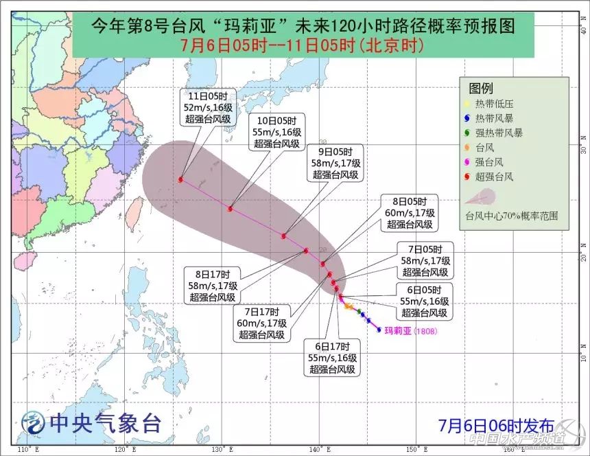 中國(guó)水產(chǎn)頻道報(bào)道,8號(hào)臺(tái)風(fēng)“瑪莉亞”自7月4日夜里20時(shí)生成以來(lái),受關(guān)島附近海域良好的海溫條件影響,再配合以中低層間合理的垂直風(fēng)速切變,強(qiáng)度快速增強(qiáng)。截至6日早晨05時(shí),“瑪莉亞”中心附近的風(fēng)速?gòu)纳蓵r(shí)的18米/秒(8級(jí)風(fēng)),快速增強(qiáng)到55米/秒(16級(jí)風(fēng),超強(qiáng)臺(tái)風(fēng)級(jí))。尤其是從5日夜里20時(shí)至6日早晨05時(shí)時(shí),“瑪莉亞”中心附近最大風(fēng)速更是在9小時(shí)內(nèi)從35米/秒急速增強(qiáng)到了55米/秒。 “瑪莉亞”已增強(qiáng)為超強(qiáng)臺(tái)風(fēng) ▲葵花-8號(hào)衛(wèi)星監(jiān)測(cè)到的“瑪莉亞”昨夜急速增強(qiáng)時(shí)的水汽動(dòng)畫(huà)圖(時(shí)間段:7月5日22時(shí)00分至7月6日05時(shí)00分),在“瑪莉亞”急速增強(qiáng)過(guò)程中可以清晰地看到中心臺(tái)風(fēng)眼逐漸打開(kāi)的全過(guò)程。