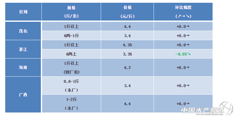 文/ 粵海飼料集團、中國水產(chǎn)頻道 彭曉君 中國水產(chǎn)頻道原創(chuàng)報道,粵西、海南區(qū)域:整體價格與上周基本持平。茂名、海南區(qū)環(huán)保風影響,淡水魚價格維穩(wěn)。湛江小規(guī)格略加一點價錢出魚,達規(guī)格魚未來穩(wěn)中略升。 廣西區(qū)域:目前在養(yǎng)羅非魚新魚在5-7兩左右,羅非規(guī)格魚上市較少,加工廠開工不足,價格與上周基本持平。近期氣溫有所緩和,羅非鏈球菌發(fā)病情況有所減緩,但部分魚塘還是主動或被動減料,今年羅非魚存塘量不多,部分養(yǎng)殖戶開始轉(zhuǎn)養(yǎng)叉尾,預計今年羅非的市場會進一步萎縮。市場價方面:鮮活1.3斤上的5元/斤(平)。 ※上述報價可能會因區(qū)域、規(guī)格、品質(zhì)和時間等因素的不同而會產(chǎn)生差異,在此僅供參考。環(huán)比幅度以本周價格與上周價格數(shù)據(jù)做對比。 【關鍵字】:羅非魚 羅非魚價格 水產(chǎn)養(yǎng)殖 |