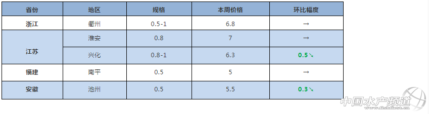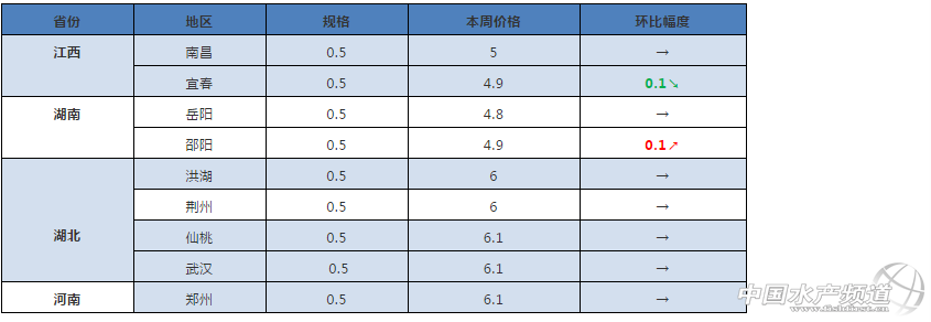 一周要聞 中國水產(chǎn)頻道原創(chuàng)報(bào)道,1.剛剛,風(fēng)王“山竹”的路線再次北調(diào),登陸珠海和陽江的概率增加,珠三角地區(qū)再次進(jìn)入臺風(fēng)正面襲擊的核心范圍內(nèi)。廣東、香港、澳門和臺灣等地區(qū)將有大暴雨,局部有特大暴雨。 2.入秋以來,池塘環(huán)境突變開始增多,近期鹽城地區(qū)有部分魚塘鯽魚發(fā)病比較嚴(yán)重,小規(guī)格鯽魚被壓價(jià)比較嚴(yán)重。 3.受到江蘇地區(qū)黃金鯽魚上市沖擊,近期湖南部分地區(qū)鯽魚出現(xiàn)爛市,大規(guī)格鯽魚也出現(xiàn)明顯下滑。 4.雖然最近華南地區(qū)不斷大風(fēng)大雨,但是江西很多地區(qū)還是干旱比較嚴(yán)重,水庫出現(xiàn)嚴(yán)重缺水。目前很多水庫魚都亟待上市,價(jià)格行情持續(xù)低迷,當(dāng)?shù)伥a魚價(jià)格短期內(nèi)恐難以上漲。 本周行情 華南地區(qū) 自從被風(fēng)王“山竹”看上,本周華南地區(qū)一直成為大家關(guān)注的焦點(diǎn),預(yù)計(jì)“山竹”將提前登陸廣東陽江茂名一帶。珠海在去年收到“天鴿”重創(chuàng)之后,今年也將再次迎接臺風(fēng)正面襲擊。據(jù)珠海流通商介紹,目前已經(jīng)全部停工并撤到安全地區(qū),本周珠海地區(qū)鯽魚行情一般,目前收魚不多,8兩鯽魚最新報(bào)價(jià)7.5元/斤,佛山地區(qū)出現(xiàn)0.2元的下滑,珠三角其他地區(qū)本周鯽魚價(jià)格基本以穩(wěn)定為主。 珠海:從流通商了解到,目前珠海地區(qū)8兩以上鯽魚最新塘頭價(jià)7.5元/斤,5兩的鯽魚最新報(bào)價(jià)5.4元/斤。 佛山:流通商表示,受江蘇鯽魚上市沖擊,目前佛山地區(qū)7-8兩江蘇鯽魚最新報(bào)價(jià)6.5-7元/斤,本地鯽魚價(jià)格未見上漲。 江門:養(yǎng)殖戶表示,近期江門地區(qū)魚價(jià)有上漲勢頭。目前鯽魚價(jià)格保持穩(wěn)定,但草魚已經(jīng)上漲了0.5元。 廣西:本周廣西地區(qū)鯽魚價(jià)格仍保持穩(wěn)定,沒有出現(xiàn)明顯價(jià)格波動。來賓、桂林等地區(qū)價(jià)格基本維持上周水平,目前桂林地區(qū)湘云鯽還是6.5元/斤。 肇慶:養(yǎng)殖戶表示,目前肇慶鯽魚還是維持8.5元/斤,價(jià)格保持穩(wěn)定。 華中地區(qū) 本周華中地區(qū)鯽魚行情也是再次受到?jīng)_擊,大部分地區(qū)魚不好賣,價(jià)格持續(xù)低迷。主要原因包括以下個(gè)方面:其中,江西樟樹地區(qū)大部分水庫缺水嚴(yán)重,養(yǎng)殖戶被迫集中賣魚。其次,受到江蘇地區(qū)黃金鯽集中上市的沖擊,本周湖南長沙地區(qū)大規(guī)格鯽魚出現(xiàn)明顯下滑,小規(guī)格鯽魚有價(jià)無市。 江西:本周江西地區(qū)鯽魚價(jià)格繼續(xù)維持低位。養(yǎng)殖戶表示,近期江西樟樹地區(qū)的鯽魚沒有出現(xiàn)上漲,很多水庫沒有水都急著賣魚。目前,九江和南昌地區(qū)鯽魚價(jià)格也沒有變化,南昌地區(qū)鯽魚塘頭價(jià)維持6元/斤。 湖北:從養(yǎng)殖戶了解到,本周湖北地區(qū)鯽魚價(jià)格沒有出現(xiàn)明顯變化,目前隨州、仙桃以及武漢等地區(qū)鯽魚的最新塘頭價(jià)還是老樣子,繼續(xù)維持上周水平。 湖南:本周湖南地區(qū)鯽魚行情再次受到?jīng)_擊,部分地區(qū)爛市比較嚴(yán)。其中,常德地區(qū)8兩的鯽魚最新報(bào)價(jià)8元/斤,湘云鯽6元/斤,價(jià)格較上周均有所下降。據(jù)養(yǎng)殖戶介紹,最近長沙地區(qū)鯽魚行情受到江蘇黃金鯽魚沖擊,大規(guī)格鯽魚爛市,小鯽魚有價(jià)無市,行情進(jìn)一步惡化。岳陽養(yǎng)殖戶表示,現(xiàn)在魚都沒人要,頭痛。目前,常德地區(qū)鯽魚的整體價(jià)格沒有出現(xiàn)明顯變化,流通商表示本周部分地區(qū)價(jià)格出現(xiàn)了一點(diǎn)點(diǎn)上浮。 華東地區(qū) 近期,江蘇地區(qū)鯽魚發(fā)病有所增加,鯽魚行情受到一定影響,小規(guī)格鯽魚被壓價(jià)比較嚴(yán)重。隨著草鯽混養(yǎng)塘鯽魚的上市,目前市場上鯽魚供給充足。 其他地區(qū) 四川:從養(yǎng)殖戶了解到,最近四川德陽地區(qū)鯽魚價(jià)格有所下滑;綿陽地區(qū)目前草魚不好賣,花白鰱價(jià)格比較好,鯽魚最新下車價(jià)6.5-6.8元/斤;養(yǎng)殖戶表示,最近廣元地區(qū)鯽魚行情保持下滑趨勢,最新塘頭價(jià)較上個(gè)月環(huán)比下滑0.5元。 重慶:流通商表示,本周重慶銅梁地區(qū)鯽魚價(jià)格基本沒有變化,價(jià)格繼續(xù)維持上周水平。 河北:據(jù)養(yǎng)殖戶介紹,近期河北地區(qū)的整體魚價(jià)出現(xiàn)了明顯下滑。其中,本周鯽魚行情從上周的6.1元/斤下滑到5.5元/斤,一周下滑了0.6元。 遼寧:養(yǎng)殖戶表示,本周遼寧沈陽地區(qū)近期鯽魚價(jià)格保持穩(wěn)定,最新塘頭價(jià)和以前一樣。 甘肅:從流通商了解到,目前蘭州地區(qū)鯽魚最新報(bào)價(jià)6元/斤,價(jià)格繼續(xù)保持穩(wěn)定。 云南:流通商表示,目前云南昆明地區(qū)黃金鯽最新報(bào)價(jià)13元/公斤左右,大理地區(qū)最新報(bào)價(jià)12元/斤。 江蘇:養(yǎng)殖戶表示,目前江蘇地區(qū)鯽魚價(jià)格持續(xù)低迷,最近淮安地區(qū)的水產(chǎn)碼頭天天爛市。近期江蘇地區(qū)賣熱水魚比較多,大部分草鯽混養(yǎng)塘的鯽魚開始大量上市,對近期魚價(jià)造成一定沖擊。最近鹽城地區(qū)鯽魚發(fā)病較多,小鯽魚被迫壓價(jià)上市,近期行情保持持續(xù)低迷,大規(guī)格鯽魚相對穩(wěn)定。無錫地區(q
