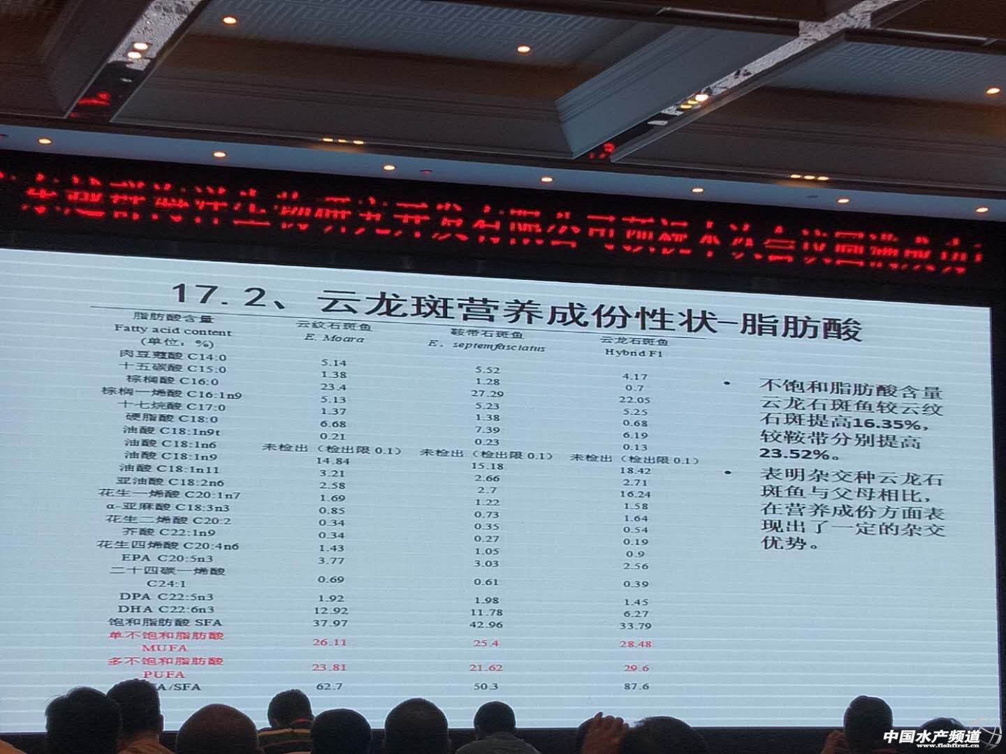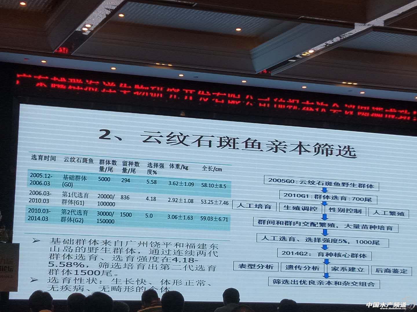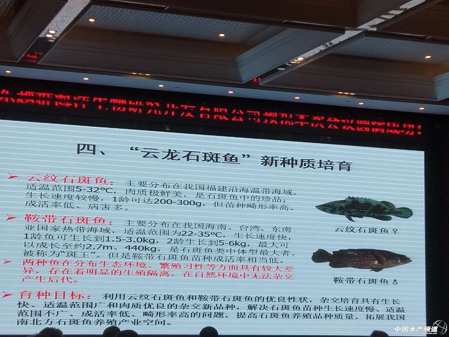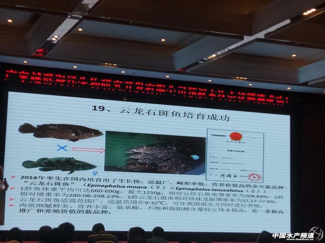 文/圖 水產(chǎn)前沿 吳佳輝 中國水產(chǎn)頻道原創(chuàng)報道,9月28日,第九屆“全國石斑魚產(chǎn)業(yè)發(fā)展論壇”暨中國水產(chǎn)流通與加工協(xié)會石斑魚分會2018年會于廣東揭陽舉行。本次大會由中國水產(chǎn)流通與加工協(xié)會石斑魚分會主辦,廣東越群海洋生物研究開發(fā)有限公司承辦,中山大學、廣東省海洋漁業(yè)試驗中心、海南晨海水產(chǎn)有限公司,揭陽市人民政府支持,《水產(chǎn)前沿》深度合作。 本次大會邀請了中國工程院院士、中國水產(chǎn)流通與加工協(xié)會石斑魚分會名譽會長林浩然先生,中國工程院院士、中國海洋大學教授麥康森先生,中國工程院院士、中國海洋大學教授包振民先生,廣東省揭陽市副市長劉端雄先生,中國水產(chǎn)流通與加工協(xié)會顧問委員會主任司徒建通先生,國家海水魚產(chǎn)業(yè)技術(shù)體系首席科學家關(guān)長濤先生,全國水產(chǎn)技術(shù)推廣總站、中國水產(chǎn)學會產(chǎn)業(yè)發(fā)展處處長趙文武先生,廣東省海洋與漁業(yè)技術(shù)推廣總站站長羅國武先生,中國水產(chǎn)流通與加工協(xié)會石斑魚分會會長蔡春有先生,廣東越群海洋生物研究開發(fā)有限公司董事長洪越群先生及多位中國水產(chǎn)科學研究院、部分省市漁業(yè)主管部門領(lǐng)導(dǎo),揭陽市相關(guān)主管部門領(lǐng)導(dǎo)和我國水產(chǎn)領(lǐng)域的權(quán)威專家和行業(yè)翹楚近350人參加本次大會,一同碰撞思想和理念,探索產(chǎn)業(yè)發(fā)展良策,以推動我國石斑魚產(chǎn)業(yè)持續(xù)健康發(fā)展! 黃海水產(chǎn)研究所田永勝研究員 在當前的石斑魚產(chǎn)業(yè)中主要出現(xiàn)幾個問題:種質(zhì)資源退化、病害頻發(fā)、育種技術(shù)相對滯后,新品種缺乏等,新品種的選育必不可少。 為此,黃海水產(chǎn)研究所開展石斑魚選育工作。 經(jīng)過選育,我們發(fā)現(xiàn)云龍石斑魚的許多性狀,表現(xiàn)優(yōu)于親本。 |