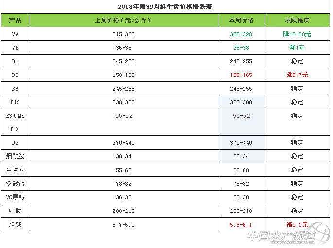 根據(jù)慧通數(shù)據(jù)研究部的初統(tǒng)數(shù)據(jù)顯示: VA 本周VA市場(chǎng)報(bào)價(jià)305-320元/公斤,7月2日BASF宣布解除VA、VE產(chǎn)品不可抗力,產(chǎn)品逐步恢復(fù)供應(yīng)。近日廠家出貨價(jià)格下調(diào),國(guó)內(nèi)VA市場(chǎng)隨之回落,7月中旬起新和成VA工廠計(jì)劃停產(chǎn)檢修10周,市場(chǎng)消息稱檢修時(shí)間或延長(zhǎng),外媒報(bào)道稱BASF在路德維希港的VA擴(kuò)建項(xiàng)目啟動(dòng),預(yù)計(jì)在2020年投產(chǎn),歐洲市場(chǎng)VA1000市場(chǎng)報(bào)價(jià)65-70歐元/公斤,國(guó)內(nèi)市場(chǎng)弱勢(shì)運(yùn)行。 VE 本周VE市場(chǎng)報(bào)價(jià)35-38元/公斤,新和成計(jì)劃從2018年8月初到2018年9月維生素E車間停產(chǎn)檢修5周,BASF恢復(fù)產(chǎn)品供應(yīng),豬瘟疫情不利于需求,VE市場(chǎng)低位運(yùn)行。歐洲市場(chǎng)報(bào)價(jià)小幅回調(diào)至4-4.1歐元/公斤。 泛酸鈣 本周市場(chǎng)報(bào)價(jià)在75-82元/公斤左右,近日市場(chǎng)消息稱有廠家恢復(fù)報(bào)價(jià)75-76元/公斤,市場(chǎng)價(jià)格震蕩整理。 煙酰胺 本周市場(chǎng)報(bào)價(jià)30-34元/公斤。受新產(chǎn)能釋放及需求低迷影響,煙酰胺價(jià)格較長(zhǎng)時(shí)間于低位運(yùn)行,此前有進(jìn)口廠家報(bào)價(jià)36元/公斤,下游庫存偏大抑制漲幅,凡特魯斯7月1日起上調(diào)3-甲基吡啶價(jià)格10%,近日煙酰胺市場(chǎng)穩(wěn)中整理。 D3 本周市場(chǎng)報(bào)價(jià)370-440元/公斤左右,6月份部分廠家曾大幅提高報(bào)價(jià),部分廠家停報(bào),需求不佳,近期市場(chǎng)報(bào)價(jià)震蕩回調(diào),8月24日臺(tái)州海盛提高飼料級(jí)D3產(chǎn)品報(bào)價(jià)至1000元/公斤,下游需求不佳,經(jīng)銷商報(bào)價(jià)偏弱震蕩。 B1 本周市場(chǎng)報(bào)價(jià)在245-255元/公斤左右。7月24日兄弟科技最新公告表示江蘇兄弟公司已完成復(fù)產(chǎn)的各項(xiàng)工作,已正式恢復(fù)生產(chǎn)。近日市場(chǎng)需求不佳,經(jīng)銷商報(bào)價(jià)震蕩整理。 B2 本周市場(chǎng)報(bào)價(jià)在155-165元/公斤左右。 此前有廠家報(bào)價(jià)160元/公斤,8月31日廣濟(jì)藥業(yè)公告稱,孟州公司于9月1日起恢復(fù)生產(chǎn)。近日部分廠商停止報(bào)價(jià)發(fā)貨偏緊,市場(chǎng)消息稱有停報(bào)廠商現(xiàn)提價(jià)意愿,市場(chǎng)購銷偏活躍,報(bào)價(jià)小幅上漲。 B6 本周市場(chǎng)報(bào)價(jià)245-255元/公斤左右,惠生藥業(yè)復(fù)產(chǎn)時(shí)間不確定,6月27日天新藥業(yè)受原料影響提高B6產(chǎn)品報(bào)價(jià)10%。近日市場(chǎng)需求不佳,經(jīng)銷商報(bào)價(jià)窄幅震蕩。 B12 本周市場(chǎng)報(bào)價(jià)330-380元/公斤左右,首輪環(huán)保督查期間廠家生產(chǎn)受影響,提價(jià)頻頻,此前部分廠家提價(jià)至450-500元/公斤,終端企業(yè)對(duì)高價(jià)格心態(tài)謹(jǐn)慎,此前B12報(bào)價(jià)震蕩回調(diào),而寧夏地區(qū)環(huán)保嚴(yán)格,泰瑞制藥事件發(fā)酵受關(guān)注,B12市場(chǎng)報(bào)價(jià)反彈,穩(wěn)中偏強(qiáng)運(yùn)行。 2%生物素 本周市場(chǎng)報(bào)價(jià)55-60元/公斤, 前期廠家停報(bào)或小幅提價(jià),下游企業(yè)積極補(bǔ)貨。因原料價(jià)格上漲,7月2日天新藥業(yè)提高生物素報(bào)價(jià)至60元/公斤。8月2日,帝斯曼公司在中國(guó)起訴安徽泰格專利侵權(quán)。受環(huán)保影響,9月生物素廠家停產(chǎn)時(shí)間延長(zhǎng),市場(chǎng)關(guān)注有所增加。 葉酸 本周市場(chǎng)報(bào)200-210元/公斤左右。原料貨緊提價(jià),7月12日天新提高葉酸報(bào)價(jià)至240元/公斤,環(huán)保嚴(yán)格,原料上漲,市場(chǎng)關(guān)注有所增加,近日葉酸市場(chǎng)價(jià)格穩(wěn)中整理。 K3 本周(MSB)K3市場(chǎng)報(bào)價(jià)56-62元/公斤,市場(chǎng)消息稱部分廠家停報(bào)停簽存提價(jià)意愿,市場(chǎng)需求不佳,K3市場(chǎng)震蕩整理。 VC 本周市場(chǎng)報(bào)價(jià)37-39元/公斤左右,前期廠家報(bào)價(jià)疲軟,下游需求不佳,VC市場(chǎng)成交偏淡,而出口量大存有支撐,此前帝斯曼公告稱江山制藥工廠升級(jí)改造,自2018年7月開始關(guān)閉4個(gè)月,近日VC市場(chǎng)價(jià)格波動(dòng)不大。 |