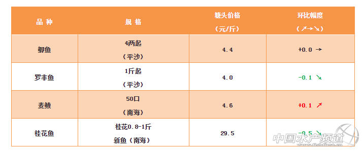 2018年11月23日鯽魚、羅非魚、麥鯪、桂花魚塘頭價格表