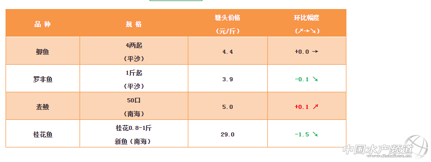 2018年12月7日鯽魚、羅非魚、麥鯪、桂花魚塘頭價(jià)格表
