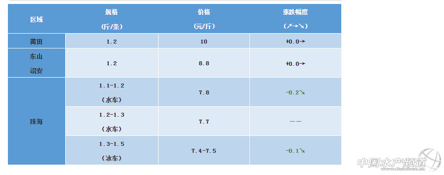文/圖 水產(chǎn)前沿 植銀素 中國水產(chǎn)頻道原創(chuàng)報道,福建莆田、東山、詔安區(qū)域:鱸魚均已達到上市規(guī)格,存塘規(guī)格在1.2-1.6。福建地區(qū)鱸魚銷售主要活魚為主,莆田地區(qū)本地收魚量減少,本周價格相對穩(wěn)定。 廣東珠海區(qū)域:(1)鱸魚價格依舊持續(xù)低迷,迫于魚塘到期和尾批分塘,養(yǎng)殖戶依舊在等安排出魚,部分有塘養(yǎng)殖戶選擇暫時不出;(2)下苗情況,由于成品魚價格不理想,養(yǎng)殖戶下苗熱情并不高,再加上今年還沒有真正意義的寒潮凍過,魚苗下塘怕有黑身死魚,養(yǎng)殖戶對下苗還是比較保守的;(3)寒潮準備下來,提醒廣大養(yǎng)殖戶提前殺蟲消毒和改底,由于本次是濕冷,很容易爆發(fā)水霉病,養(yǎng)殖戶群體要做好充分的準備。 ※上述報價可能會因區(qū)域、規(guī)格、品質和時間等因素的不同而會產(chǎn)生差異,在此僅供參考。環(huán)比幅度以本周價格與上周價格數(shù)據(jù)做對比 【關鍵字】:海鱸 海鱸價格 水產(chǎn)養(yǎng)殖 |