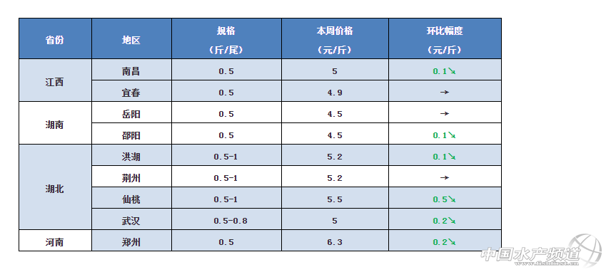 一周要聞 1.從養(yǎng)殖戶了解到,隨著2018年即將接近尾聲,最近廣西南寧西鄉(xiāng)塘以及金陵等地區(qū)的網(wǎng)箱又開始拆了。據(jù)了解,海南退塘還林高位池標(biāo)準(zhǔn)為3萬元/畝,低位池2.1萬元/畝,退塘還濕2萬元/畝;江蘇太湖圍網(wǎng)養(yǎng)殖國有水域占用補(bǔ)償標(biāo)準(zhǔn)為6912元/畝,一張養(yǎng)殖證可補(bǔ)償45萬元。 2.最近的冷空氣雖然帶動以一大批水產(chǎn)品行情的升溫,但同時也給魚塘帶來了新的問題,那就是水霉病。水霉在水溫10-15℃時最適合生長,因?yàn)閷ζ贩N沒有選擇性,只要受傷都容易被感染。據(jù)業(yè)內(nèi)人士介紹,最近廣東梅州地區(qū)的鯽魚苗種也已經(jīng)開始出現(xiàn)水霉問題。 3.近期很多地方的豬肉價格大漲,四川德陽地區(qū)已經(jīng)賣到16-17元/斤。但是從養(yǎng)殖戶了解到,本周全國的大部分地區(qū)的鯽魚行情仍然沒有出現(xiàn)好轉(zhuǎn)。其中,江蘇地區(qū)在出現(xiàn)短暫回暖之后,本周大部分地區(qū)的塘頭價再次出現(xiàn)回落。從最新調(diào)查情況來看,業(yè)內(nèi)普遍認(rèn)為年底的鯽魚行情不太樂觀。今年的鯽魚行情是否真的就這樣了呢? 本周行情 華南地區(qū) 據(jù)最新調(diào)查情況來看,本周華南地區(qū)鯽魚整體行情沒有出現(xiàn)明顯漲跌,各地的塘頭價也基本還是維持上周水平。據(jù)流通商介紹,最近華南地區(qū)氣溫明顯下降,近期鯽魚不是很好賣。目前廣西南寧一些地區(qū)又開始了年底的拆網(wǎng)箱,不過目前魚價整體行情還是保持穩(wěn)定,桂林地區(qū)鯽魚最新塘頭價繼續(xù)維持在5.5-6元/斤。 肇慶:據(jù)養(yǎng)殖戶介紹,本周肇慶地區(qū)鯽魚價格繼續(xù)維持穩(wěn)定,目前0.4斤的鯽魚塘頭價6元/斤,1斤以上的賣8元/斤。 中山:本周中山地區(qū)鯽魚最新塘頭價沒有出現(xiàn)明顯變化,但是市場行情相對低迷。據(jù)流通商介紹,天冷鯽魚不是很好賣。 梅州:隨著氣溫的下降,本周華南大部分地區(qū)降溫也是非常明顯。據(jù)業(yè)內(nèi)人士介紹,目前的低溫對梅州地區(qū)的鯽魚苗種的也是有一定的影響,有一部分苗已經(jīng)開始出現(xiàn)水霉。 興寧:據(jù)了解,最近興寧地區(qū)鯽魚最新塘頭價7元/斤,目前價格變化不大。 廣西:從養(yǎng)殖戶了解到,最近廣西南寧西鄉(xiāng)塘以及金陵等地區(qū)的網(wǎng)箱又在開始大面積拆除,不過目前整體魚價行情基本保持穩(wěn)定。目前桂林地區(qū)鯽魚最新塘頭價還是維持在5.5-6元/斤,價格保持不變。 華中地區(qū) 整體行情整體依然比較低迷,養(yǎng)殖戶表示魚不好賣。隨著近期氣溫有所回升,一些地區(qū)的魚價在短暫上漲之后這幾天也是再次出現(xiàn)回落,本周鯽魚價格整體上變化不大。目前,江西九江地區(qū)0.5斤鯽魚最新塘頭價5.5元/斤,常德地區(qū)1斤的彭澤鯽賣6.5元/斤,隨州地區(qū)1斤的鯽魚賣6元/斤,武漢地區(qū)0.4斤的鯽魚最新報價4.2元/斤。 江西:本周江西地區(qū)的鯽魚整體行情依然沒有出現(xiàn)好轉(zhuǎn),部分地區(qū)銷量有所增加。據(jù)養(yǎng)殖戶介紹,目前九江地區(qū)0.5斤的鯽魚最新塘頭價5.5元/斤,價格繼續(xù)保持穩(wěn)定不變;樟樹地區(qū)的鯽魚行情依然沒有出現(xiàn)好轉(zhuǎn),鯽魚價格繼續(xù)保持上周水平,前幾天草魚漲了一點(diǎn),但是這兩天也是掉了0.1-0.2元/斤;最近贛州地區(qū)魚的銷量開始有所增加,魚好賣了一些。 湖南:本周湖南地區(qū)鯽魚價格繼續(xù)保持穩(wěn)定。從養(yǎng)殖戶了解到,目前常德地區(qū)湘云鯽最新塘頭價4.2-4.3元/斤,1斤左右的彭澤鯽最新塘頭價6.5元/斤,魚不是很好賣;岳陽地區(qū)鯽魚價格繼續(xù)穩(wěn)定不變。 湖北:本周湖北地區(qū)鯽魚行情整體也是比較低迷,部分地區(qū)價格出現(xiàn)小幅下滑。目前武漢地區(qū)0.4斤的鯽魚最新塘頭價4.2元/斤,仙桃地區(qū)0.5斤以上的賣5.5元/斤,隨州地區(qū)1斤的鯽魚最新塘頭價6元/斤。養(yǎng)殖戶表示,目前隨州地區(qū)的鯽魚不是很好賣,預(yù)計年底鯽魚價格就這樣了。 華東地區(qū) 前幾天的冷空氣讓江蘇大部分地區(qū)的鯽魚價格出現(xiàn)了上漲,但是隨著目前氣溫的回升,一些地區(qū)的價格也是再次出現(xiàn)下滑。目前淮安地區(qū)的塘頭價較之前下滑0.2-0.3元/斤,岡中地區(qū)1斤的鯽魚最多下滑了0.5元/斤,最新報價6.2元/斤。浙江、安徽和福建地區(qū)的鯽魚價格目前沒有出現(xiàn)明顯變化,其中浙江衢州地區(qū)最新塘頭價5.5元/斤。 江蘇:隨著天冷空氣南下,江蘇地區(qū)的鯽魚整體行情出現(xiàn)了一波回暖。但是,由于這幾天氣溫逐漸回暖,最近江蘇大部分地區(qū)的鯽魚價格又出現(xiàn)了回落。據(jù)養(yǎng)殖戶介紹,最近幾天岡中地區(qū)1斤以上的鯽魚價格也下跌了0.5元/斤,最新塘頭價只賣到6.1-6.2元/斤,這個行情鯽魚真的沒發(fā)養(yǎng)了;窗驳貐^(qū)最新塘頭價較之前下滑了0.2-0.3元/斤。無錫地區(qū)鯽魚價格變化不大,但是目前銷量還可以。高郵地區(qū)0.9-1斤的鯽魚最新塘頭價5.8元/斤,養(yǎng)殖戶表示年前鯽魚價格大漲估計有點(diǎn)難。 浙江:本周浙江地區(qū)的鯽魚價格基本保持穩(wěn)定。據(jù)養(yǎng)殖戶介紹,當(dāng)?shù)仞B(yǎng)殖戶有經(jīng)常會加新水的習(xí)慣,最近的水霉病對衢州地區(qū)的影響不是很大,昨天干塘的鯽魚塘頭賣5.5元/斤 福建:從養(yǎng)殖