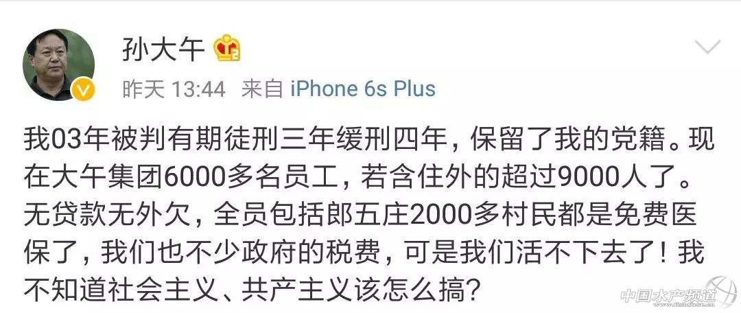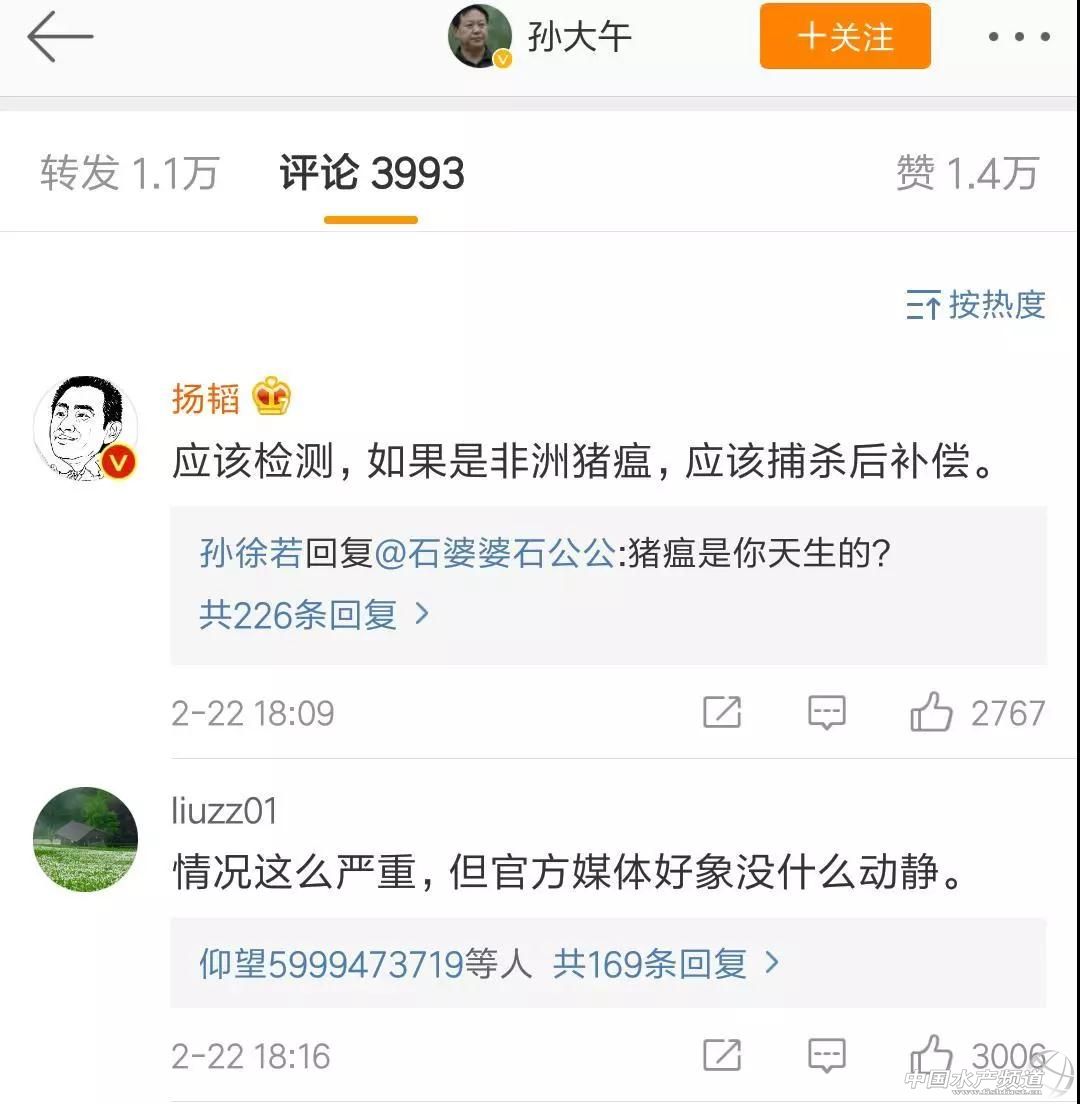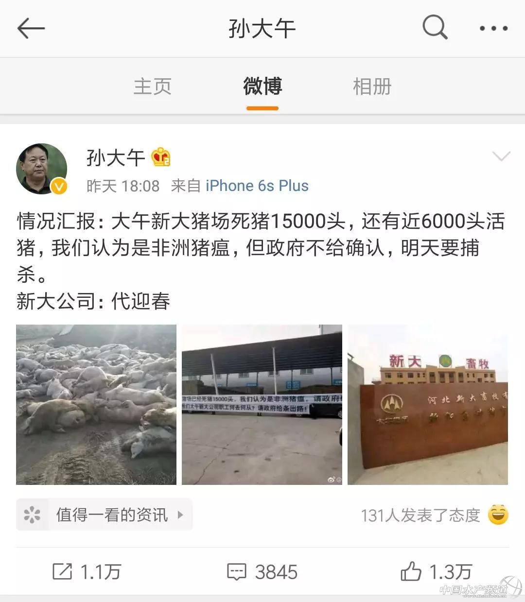 中國(guó)水產(chǎn)頻道原創(chuàng)報(bào)道, 文/圖 農(nóng)牧前沿 編輯部 河北大午新大豬場(chǎng)出現(xiàn)疑似非洲豬瘟疫情,孫大午上報(bào)無(wú)門,發(fā)布微博求助。 2月22日,孫大午在微博爆料稱“大午新大豬場(chǎng)死豬15000頭,還有近6000頭活豬,我們認(rèn)為是非洲豬瘟,但政府不給確認(rèn),明天要撲殺!贝藯l消息一出,引起業(yè)界嘩然。 首先我們來(lái)認(rèn)識(shí)下孫大午是誰(shuí)?大午新大豬場(chǎng)又是怎么回事? 孫大午,河北大午農(nóng)牧集團(tuán)有限公司的創(chuàng)始人、股東、監(jiān)事長(zhǎng)。1989年,孫大午組建了河北大午農(nóng)牧集團(tuán)有限公司,發(fā)展到現(xiàn)在集養(yǎng)殖業(yè)、種植業(yè)、加工業(yè)、工業(yè)、教育業(yè)為一體的大型科技型民營(yíng)企業(yè)——河北大午農(nóng)牧集團(tuán)有限公司。 河北大午農(nóng)牧集團(tuán)有限公司下轄大午種禽有限公司、大午飼料有限公司、大午電子電器有限公司、大午食品有限公司等,固定資產(chǎn)20億元,年產(chǎn)值超過(guò)30億元。 而孫大午微博所說(shuō)的大午新大豬場(chǎng)是由河北大午農(nóng)牧集團(tuán)有限公司與新希望六和合資組建的現(xiàn)代化、高科技養(yǎng)殖有限公司(河北新大畜牧有限公司)。河北新大畜牧有限公司計(jì)劃投資2.25億,與加拿大世界著名育種公司進(jìn)行深度合作,組建核心祖代種豬場(chǎng)1個(gè),3000頭父母代場(chǎng)5個(gè),打造年出欄30萬(wàn)頭育肥豬的安全放心肉生產(chǎn)基地。 孫大午微博圖片顯示,豬場(chǎng)掛出橫幅“大午新大豬場(chǎng)已經(jīng)死豬15000頭,我們認(rèn)為是非洲豬瘟,請(qǐng)政府確認(rèn),我們大午新大公司職工何去何從?請(qǐng)政府給條出路!”此條橫幅無(wú)不顯示出大午新大豬場(chǎng)的無(wú)奈和絕望。豬場(chǎng)出現(xiàn)了大量異常死亡生豬,疑似非洲豬瘟疫情,并上報(bào)給政府,當(dāng)?shù)卣、畜牧獸醫(yī)主管部門、動(dòng)物疫病預(yù)防控制機(jī)構(gòu)是否應(yīng)該立即開展疑似非洲豬瘟疫情的處置、調(diào)查和確認(rèn)工作?給予豬場(chǎng)一個(gè)明確的答復(fù)和交代? 非洲豬瘟對(duì)于養(yǎng)豬行業(yè)、養(yǎng)豬人的影響和打擊不必再細(xì)說(shuō)。2018年11月1日全國(guó)非洲豬瘟防控工作電視電話會(huì)議上曾強(qiáng)調(diào)“對(duì)因排查不到位、報(bào)告不及時(shí)、處置不力導(dǎo)致疫情擴(kuò)散蔓延或其他嚴(yán)重后果的嚴(yán)肅追責(zé)問(wèn)責(zé)!比绻嘘P(guān)部門對(duì)于上報(bào)的疑似非瘟疫情不給予調(diào)查和確認(rèn)便強(qiáng)行撲殺,這是嚴(yán)重的玩忽職守行為。 且不論這到底是不是非洲豬瘟疫情,政府部門的不作為、“不管”、“不問(wèn)”著實(shí)令養(yǎng)豬人寒心。網(wǎng)友們對(duì)于此事的評(píng)論中,有一條讓我們十分感概!皩O大午是河北保定可以呼風(fēng)喚雨的企業(yè)家,卻還要靠微博來(lái)呼吁政府!睂O大午尚且如此,其他平民百姓又該如何發(fā)聲? 我們活不下去了! 【關(guān)鍵字】:非洲豬瘟 豬瘟疫情 水產(chǎn)養(yǎng)殖 |