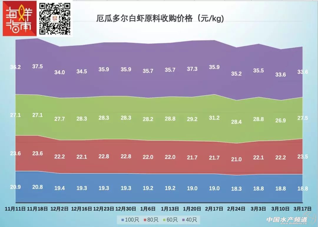 | 中國水產(chǎn)頻道報道, 文/圖 海鮮指南(seafood-guide) 張麗麗、陳磊 海外白蝦原料收購價格 3月17日,全球海外主產(chǎn)區(qū)白蝦收購價普遍走低,印度蝦全線下跌且40大蝦暴跌11.5元,越南、馬來西亞、泰國白蝦也出現(xiàn)不同程度下跌;厄瓜多爾和印尼60/80規(guī)格白蝦略有上浮。詳情如下圖: 注:以上產(chǎn)品為當?shù)匚r類的塘頭收購價,匯率按當?shù)刎泿艑崟r兌換人民幣計算 3月17日,印度40白蝦收購價跌幅高達11.5元/kg(來源:海鮮指南) 3月17日,厄瓜多爾、印尼、泰國60白蝦收購價保持上漲,其余產(chǎn)區(qū)下滑(來源:海鮮指南) 據(jù)了解,北美市場目前白蝦庫存依然較多,對國際蝦價的支撐作用有限。2019年上半年,全球蝦價延續(xù)去年的低迷態(tài)勢或?qū)⒊蔀榇蟾怕省?/div> 各產(chǎn)區(qū)原料蝦具體漲跌情況如下: 厄瓜多爾60/80規(guī)格白蝦收購價上漲 如下圖所示,3月17日,相較于一周前,厄瓜多爾白蝦收購價格出現(xiàn)上漲,但整體而言,相較于去年11月,目前的厄瓜多爾白蝦收購價格仍處于低位。60只/kg漲幅為0.6元/kg、80只/kg漲幅為1.3元/kg。其余規(guī)格與上周持平。 厄瓜多爾白蝦原料收購價格走勢(來源:海鮮指南) 越南白蝦收購價全線下跌,40大蝦跌3元 3月17日,相比一周前,越南白蝦收購價格全線下跌,其中,100只/kg原料蝦降幅為0.6元/kg,80只/kg降幅同樣為0.6元/kg,60只/kg降幅達2.2元/kg、40只/kg跌幅最大為3元/kg。 越南白蝦原料收購價格走勢(來源:海鮮指南) 泰國原料連跌4周,60蝦上漲1元 從下圖可以看出,泰國原料蝦價普遍繼續(xù)下行。3月17日,100只/kg原料蝦降幅為0.7元/kg,80只/kg降幅達1.1元/kg,60只/kg止跌回升,漲幅為1元/kg、40只/kg與上周持平。 泰國白蝦原料收購價格走勢(來源:海鮮指南) 印度白蝦收購價格大跌,40蝦跌幅高達11.5元 3月17日,印度白蝦收購價全蝦暴跌,從下圖可以看出,其中,40只/kg降幅高達11.5元/kg,猶如過山車。100只/kg原料蝦降幅為2.1元/kg,80只/kg降幅達1.6元/kg,60只/kg降幅達4元/kg。 印度白蝦近期因抗生素超標出口美國市場被退柜,這可能是印度蝦價暴跌的主要原因。 印度白蝦原料收購價格走勢(來源:海鮮指南) 印尼60/80白蝦止跌回升,價格相對堅挺 3月17日,從下圖可以看出,印尼白蝦收購價相對堅挺。其中,80只/kg原料蝦漲幅為0.5元/kg,60只/kg漲幅為1元/kg,但40只/kg降幅為0.8元/kg。 印尼白蝦原料收購價格走勢(來源:海鮮指南) 馬來西亞原料蝦價格繼續(xù)全線下滑,幅度減緩 3月17日,如下圖所示,馬來西亞白蝦原料繼續(xù)下跌,平均降幅在0.9元/kg。 馬來西亞白蝦原料收購價格走勢(來源:海鮮指南) 越南、馬來西亞虎蝦收購價格行情 3月17日,相對于一周前,越南虎蝦(草蝦)大幅下跌,詳見下圖。 其中,30只/kg的越南虎蝦收購價每公斤降幅達8.8元;40只/kg降幅同樣為8.8元/kg,50只/kg降幅為2.8元/kg。 越南虎蝦價格暴跌可能與其發(fā)往柬埔寨的注膠蝦被曝光有關。 越南虎蝦(草蝦)收購價格走勢(來源:海鮮指南) 3月17日,馬來西亞虎蝦收購價格暫無明顯波動,相對穩(wěn)定。 馬來西亞虎蝦(草蝦)收購價格走勢(來源:海鮮指南) |
