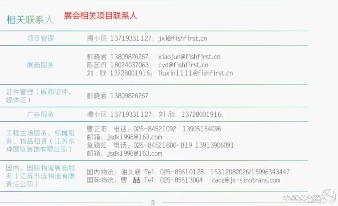 中國(guó)水產(chǎn)前沿展 3.30-31 南京等你 中國(guó)水產(chǎn)頻道原創(chuàng)報(bào)道,全球水產(chǎn)養(yǎng)殖的重心在中國(guó),而南京,則是中國(guó)水產(chǎn)養(yǎng)殖業(yè)的地理中心。以南京為中心,飛機(jī)2小時(shí)范圍,覆蓋了整個(gè)中國(guó)沿海與沿長(zhǎng)江水產(chǎn)養(yǎng)殖核心區(qū);高鐵3小時(shí)范圍可覆蓋江蘇、浙江、安徽、山東、江西、湖北,這個(gè)區(qū)域,也正是中國(guó)水產(chǎn)養(yǎng)殖業(yè)發(fā)展?jié)摿ψ畲蟮娜A東、華中區(qū)域,海水、淡水與特種水產(chǎn)養(yǎng)殖兼?zhèn),工業(yè)化也走在中國(guó)最前沿。 中國(guó)的水產(chǎn)養(yǎng)殖業(yè),歷經(jīng)40年高速發(fā)展,2018年開(kāi)始,在環(huán)保風(fēng)暴、消費(fèi)升級(jí)與全球競(jìng)爭(zhēng)的合力下,正式進(jìn)入全面轉(zhuǎn)型,可持續(xù)與產(chǎn)業(yè)升級(jí)成為方向,工業(yè)化、深海、傳統(tǒng)池塘升級(jí)、養(yǎng)殖品種升級(jí),正在逐一落地。 “中國(guó)水產(chǎn)前沿展”的使命:聚集中國(guó)主流水產(chǎn)養(yǎng)殖者以及全球領(lǐng)先企業(yè)、前沿產(chǎn)品、務(wù)實(shí)解決方案,成為中國(guó)水產(chǎn)養(yǎng)殖高手與全球前沿的專家,領(lǐng)先的飼料、種苗、設(shè)備、動(dòng)保等支撐體系的年度交流與對(duì)話平臺(tái)。 中國(guó)水產(chǎn)前沿展(2019) 2019’ China aquaculture expo 簡(jiǎn)稱:前沿展,CAE 2019.3.30-31 中國(guó)· 南京 一展看盡中國(guó)水產(chǎn)養(yǎng)殖前沿 The frontier of China aquaculture is here 參會(huì)指南 1、時(shí)間 | 地點(diǎn) 時(shí)間:3月30-31日08:30-17:00 地點(diǎn):南京國(guó)際博覽中心12號(hào)門(mén)2號(hào)館 (南京市建鄴區(qū)江東中路300號(hào)) 2、組織單位 主辦單位 水產(chǎn)前沿 支持單位 江蘇省漁業(yè)技術(shù)推廣中心 上海海洋大學(xué)水產(chǎn)與生命學(xué)院 廣東海洋大學(xué)水產(chǎn)學(xué)院 中國(guó)漁業(yè)協(xié)會(huì)水產(chǎn)動(dòng)保分會(huì) 國(guó)家工業(yè)化水產(chǎn)聯(lián)盟 湛江市對(duì)蝦苗種協(xié)會(huì) 廣東海大集團(tuán) 通威股份 恒興股份 廣東粵海飼料集團(tuán) 江蘇好潤(rùn)生物科技有限公司 3、參展單位 4、同期活動(dòng) 主題:第四屆中國(guó)小龍蝦與河蟹產(chǎn)業(yè)論壇之南京沙龍 時(shí)間:3月30日,9:30-16:00 地點(diǎn):上午:展館內(nèi)大會(huì)議室;下午:展館內(nèi)小會(huì)議室 四大議題 1.江蘇省蝦蟹產(chǎn)業(yè)的現(xiàn)狀和未來(lái) 2.小龍蝦養(yǎng)殖關(guān)鍵點(diǎn)分析與建議(早春苗培育與“五月魔咒”防治措施) 3.河蟹營(yíng)養(yǎng)研究進(jìn)展與功效性添加劑產(chǎn)品的運(yùn)用 4.河蟹新品種的選育與應(yīng)用推廣 報(bào)名聯(lián)系人:吳佳輝 13922350546(微信同號(hào)) 主題:第二屆中國(guó)水產(chǎn)動(dòng)保產(chǎn)業(yè)年會(huì)之南京沙龍 時(shí)間:3月30日,14:00-17:00 地點(diǎn):展館內(nèi)大會(huì)議室 五大議題 1. 水產(chǎn)動(dòng)物病毒病防控中的正確應(yīng)用方法 2. 過(guò)一硫酸鉀的鑒別與應(yīng)用 3. 益生菌研發(fā)思路與應(yīng)用 4. 最新病害研究與動(dòng)保產(chǎn)品的應(yīng)用 5. 動(dòng)保企業(yè)的新機(jī)會(huì)與新威脅 報(bào)名聯(lián)系人:吳佳輝 13922350546(微信同號(hào)) 主題:第三屆中國(guó)工業(yè)化與智能水產(chǎn)養(yǎng)殖論壇之南京沙龍 時(shí)間:3月31日,9:30-12:00 地點(diǎn):展館內(nèi)大會(huì)議室 四大議題 1、綠色發(fā)展形勢(shì)下淡水養(yǎng)殖轉(zhuǎn)型升級(jí)的機(jī)遇和挑戰(zhàn) 2、國(guó)內(nèi)工業(yè)化水產(chǎn)養(yǎng)殖裝備研發(fā)進(jìn)展及應(yīng)用 3、路基循環(huán)水、池塘內(nèi)循環(huán)、工業(yè)化育苗、循環(huán)水吊水精養(yǎng)等模式介紹 4、工業(yè)化水產(chǎn)養(yǎng)殖成功案例分享 報(bào)名聯(lián)系人:李釩 13324890299(微信同號(hào)) 主題:閉門(mén)沙龍:對(duì)蝦種苗檢測(cè)南京交流會(huì) 時(shí)間:3月30日,10:00-13:00 地點(diǎn):展館內(nèi)小會(huì)議室 七大議題 1、如何正確認(rèn)識(shí)蝦苗檢測(cè)的重要性 2、目前蝦苗檢測(cè)存在的主要問(wèn)題 3、如何科學(xué)地建立和完善蝦苗檢測(cè)標(biāo)準(zhǔn) 4、蝦苗檢測(cè)如何做到公平、公正以及科學(xué)、嚴(yán)謹(jǐn)、合法 5、如何建立更加科學(xué)的蝦苗質(zhì)量評(píng)價(jià)體系 6、怎么利用檢測(cè)去更準(zhǔn)確地評(píng)價(jià)蝦苗質(zhì)量 7、如何正確選擇檢測(cè)機(jī)構(gòu) 報(bào)名聯(lián)系人:李釩 13324890299(微信同號(hào)) 主題:第二屆鱖魚(yú)產(chǎn)業(yè)年會(huì)南京沙龍暨網(wǎng)友見(jiàn)面會(huì) 時(shí)間:3月31日9:00-12:00 地點(diǎn):展館內(nèi)小會(huì)議室 五大議題 1、2019年鱖魚(yú)魚(yú)價(jià)走勢(shì)預(yù)計(jì) 2、投苗季如何選擇鱖魚(yú)苗 3、鱖魚(yú)飼料養(yǎng)殖的可行性 4、最讓鱖魚(yú)養(yǎng)戶棘手的病害防控方法 5、新型鱖魚(yú)養(yǎng)殖模式 報(bào)名聯(lián)系人:李靜 13602467904(微信同號(hào)) 參展指南 5、天氣 3月29日:多云轉(zhuǎn)陰,10-19℃ 3月30日,晴轉(zhuǎn)多云,7-17℃ 3月31日,多云轉(zhuǎn)晴,5-12℃ 6、路線 機(jī)場(chǎng)至展館線路: 乘坐機(jī)場(chǎng)大巴2號(hào)線到河西萬(wàn)達(dá)廣場(chǎng)——轉(zhuǎn)乘