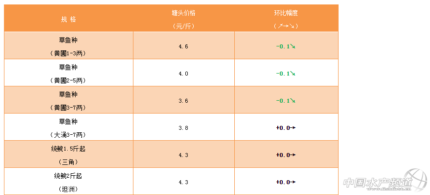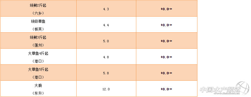 文/ 珠海海龍、水產(chǎn)前沿 吳佳輝 中國(guó)水產(chǎn)頻道原創(chuàng)報(bào)道,草魚(yú)種價(jià)格小幅度下滑,持續(xù)低迷,流通慢,市場(chǎng)存塘量大;統(tǒng)鯇和大草魚(yú)的價(jià)格穩(wěn)定,市場(chǎng)存塘量大,短時(shí)間內(nèi)難以回升;脆肉鯇價(jià)格平穩(wěn),波動(dòng)不大。 【關(guān)鍵字】:草魚(yú) 草魚(yú)價(jià)格 水產(chǎn)養(yǎng)殖 |