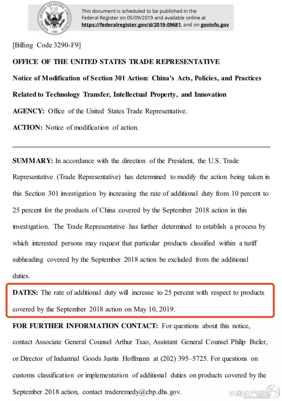 | 中國水產(chǎn)頻道報道, 美方擬于5月10日將2000億美元中國輸美商品的關(guān)稅從10%上調(diào)至25%,中方表態(tài):將不得不采取必要的反制措施!中國本土出口海產(chǎn)品幾乎無一幸免! 文/ 海鮮指南(seafood-guide)沈基文 最新消息:美方擬于5月10日將2000億美元中國輸美商品的關(guān)稅從10%上調(diào)至25% 美國當(dāng)?shù)貢r間2019年5月8日上午,美國貿(mào)易代表辦公室稱擬于東部時間5月10日(周五)凌晨起將2000億美元中國輸美商品的關(guān)稅從10%上調(diào)至25% 商務(wù)部:如果美方關(guān)稅措施付諸實施,中方將不得不采取必要反制措施 隨后,北京時間5月8日晚間,商務(wù)部發(fā)布消息稱,美方擬于5月10日將2000億美元中國輸美商品的關(guān)稅從10%上調(diào)至25%。升級貿(mào)易摩擦不符合兩國人民和世界人民的利益,中方對此深表遺憾,如果美方關(guān)稅措施付諸實施,中方將不得不采取必要反制措施。 2000億美元關(guān)稅清單含9頁中國出口水產(chǎn)品列表,中國本土輸美水產(chǎn)品幾乎無一幸免 2018年9月17日,特朗普當(dāng)局正式宣布將對產(chǎn)自中國的2000億產(chǎn)品加征10%關(guān)稅,9月24日生效。加征2000億美元關(guān)稅列表清單里,包含中國出口的水產(chǎn)品清單長達(dá)9頁。 2018年9月19日,包括真鱈、狹鱈、黑線鱈在內(nèi)的8個相關(guān)品項被豁免加征2000億美元關(guān)稅名單內(nèi)。隨后,兩個主要的三文魚編碼也被豁免。資深市場人士曾介紹“被豁免的編碼所指產(chǎn)品,是中國加工出口到美國市場的主要品類,意義重大”。 盡管相關(guān)來料加工的部分品項被豁免,但業(yè)者表示還是會受到不同程度的影響,“還在等待看事情的發(fā)展”。 美國是中國第二大水產(chǎn)品出口市場。2018 年我國水產(chǎn)品對美出口量 56.14 萬噸,出口額 34.28 億美元,出口產(chǎn)品主要包括羅非魚、鱈魚、墨魚及魷魚、對蝦、比目魚、蛤等。 從清單上看,中國本土輸美水產(chǎn)品幾乎無一幸免。鮮活、冰鮮、冷凍、干貨等不同形式的羅非魚、鯰魚、海鱸、鯉魚、比目魚、三文魚、鱒魚、金槍魚、對蝦、鮑魚、貽貝、生蠔、龍蝦、墨魚、魷魚、海螺、海膽等均在列。 海鮮指南采訪國內(nèi)一出口企業(yè)負(fù)責(zé)人時,該負(fù)責(zé)人表示“美國報關(guān)公司已內(nèi)部通知加稅,但要等通知”。 如果真被加征25%關(guān)稅,對水產(chǎn)品出口企業(yè)會產(chǎn)生什么影響?“大量中國海產(chǎn)無法去美國了!痹撠(fù)責(zé)人提到。 “那是完全沒辦法做生意的。完全沒辦法出口到最大的消費國美國,只能把產(chǎn)品賣到其他的國家,歐盟、英聯(lián)邦國家、中東地區(qū)、東南亞各國。”另一業(yè)內(nèi)人士感嘆,“南美洲某些國家也可以,但是這些國家消費羅非魚產(chǎn)品基本上都是比較要求產(chǎn)品的冰衣很厚,而且供應(yīng)不穩(wěn)定,再有就是價格偏低,難以有利潤,而且還有少部分國家的客戶信譽(yù)度也一般,對出口工廠的考驗比較大。羅非魚在國內(nèi)的消費需求一般,如果缺少了美國這個最大的消費國,將會對養(yǎng)殖戶也會造成較為嚴(yán)重的影響。“ |