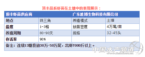 | 中國水產(chǎn)頻道獨家報道, 文/ 水產(chǎn)前沿 李釩 圖/ 泰國頂豐水產(chǎn)養(yǎng)殖有限公司 近年來,中國對蝦種苗市場呈現(xiàn)出新的格局,不斷有新的種蝦公司進入中國市場角逐,原有的由兩三家種蝦公司壟斷的局面逐漸被打破。但中國市場又有其自身的特點:地域廣、模式多、蝦苗需求多樣化,對于任何一家種蝦公司而言,想在競爭激烈的中國市場占有一席之地,養(yǎng)殖效果是檢驗種苗質(zhì)量的一個很重要的標準。 泰國頂豐水產(chǎn)養(yǎng)殖有限公司(英文名:TOP AQUACULTURE TECHNOLOGY CO, LTD,中文簡稱頂豐)自2017年12月進入中國市場后,憑借優(yōu)異的表現(xiàn)成為中國市場的一匹黑馬,也掀起了一股蝦苗“泰系”旋風。近日,為了將種苗的實際情況展示給中國對蝦養(yǎng)殖業(yè)者,頂豐聯(lián)合本刊發(fā)起“頂豐蝦苗養(yǎng)殖效果調(diào)研活動”,希望通過調(diào)研,客觀、全面地反饋頂豐品系蝦苗的實際養(yǎng)殖效果,為市場提供參考。 頂豐團隊合影。一排右2和右1分別為泰國頂豐技術總監(jiān)老A和吳國亮 以長速見長,工廠化養(yǎng)殖69天達30頭 據(jù)泰國頂豐技術總監(jiān)老A介紹,頂豐種蝦的選育路線一直以生長速度快為主線,同時還具有抗病力強、配對率高、出苗率高而且存活率良好等優(yōu)點。 “我們在工廠化養(yǎng)殖收集的數(shù)據(jù)來看,密度在800尾/方時,日均重率也在0.3克以上。頂豐蝦苗可以在0‰-34‰鹽度的水體中養(yǎng)殖,適應性廣。”老A說到,“頂豐蝦苗長速快,因此脫殼也多,養(yǎng)殖過程中要特別重視礦物質(zhì)的補充。特別是在低鹽度的地區(qū),需要定期添加礦物質(zhì),而且要保證充足的投料,溶氧也要保持在5mg/L以上,以獲得更好的養(yǎng)殖效果! 老A介紹,頂豐的親蝦在密閉的環(huán)境下養(yǎng)殖,從選育出來還需要在整個養(yǎng)成過程中要經(jīng)過五次篩選,以保證其安全性。另外,為了保證一代其后代生長性能的卓越性(中國養(yǎng)殖戶蝦苗的表現(xiàn)),會將親蝦的后代在養(yǎng)殖測試區(qū)進行試驗養(yǎng)殖,觀察其生長性狀是否達標,最大程度來保證苗企和養(yǎng)殖戶的利益。 工廠化養(yǎng)殖案例展示: 并非“長得快就死得快”,抗逆性也有不錯的表現(xiàn) 從頂豐蝦苗的放養(yǎng)情況來看,長速快是頂豐品系蝦苗最顯著的特點,同時,在抗逆性上也有不俗的表現(xiàn),能適應高密度養(yǎng)殖,也能適應土塘等環(huán)境比較惡劣的養(yǎng)殖模式。 從養(yǎng)殖一線反饋的數(shù)據(jù)來看,頂豐品系蝦苗在珠三角表現(xiàn)同樣出色。例如,海南海優(yōu)一號水產(chǎn)種苗有限公司培育的頂豐品系蝦苗,在珠三角的江門(大鰲鎮(zhèn)、睦洲鎮(zhèn)、南鎮(zhèn)、黃布、上橫)、中山(板枎鎮(zhèn)、橫欄鎮(zhèn)、港口鎮(zhèn)、阜沙鎮(zhèn)、三角鎮(zhèn)、民眾鎮(zhèn))、臺山廣海、崖南)等地養(yǎng)殖鹽度為1-2格,屬于咸談水養(yǎng)殖的區(qū)域,放苗密度為3-5萬/畝時,養(yǎng)殖60天即可達到40頭左右,成活率8成左右,加上長速快,養(yǎng)殖效率高,整體平均料比僅為1.0。 “到2019年我們大概有穩(wěn)定100個家系,現(xiàn)在還不在斷擴增,豐富的家系保證了頂豐種蝦的基因多樣性,適應性也更強。為了尋求最快增長和最具抗病能力的白蝦以滿足亞洲的市場需求,我們一直沒有停止過選育,從現(xiàn)在的表現(xiàn)來看非常滿意,頂豐蝦苗能滿足中國大部地區(qū)的需求。更令人高興的是我們的頂豐蝦苗放在很多區(qū)域比如廣西,比高抗蝦苗的存活率還高。目前我們的技術總監(jiān)已經(jīng)開始做SPR的種源,目標是選育出又快大抗病力又強的種蝦品系!碧﹪斬S中國區(qū)代理吳國亮介紹到。 吳國亮同時也提醒,養(yǎng)殖成功是一個系統(tǒng)的工程,選擇合適的蝦苗是第一步,但同時也要保證良好的管理,比如保證充足的溶氧、定期補充礦物質(zhì)等,才能使蝦苗的生長性狀完美地表現(xiàn)出來。如果大家能夠標苗30天左右再分池養(yǎng)殖,其表現(xiàn)會更突出,因為可以提高生長速度,同時標苗的過程也可以提高抗病力。 泰國頂豐的種蝦 泰國頂豐種蝦培育車間,技術人員在檢查種蝦的生長情況 泰國頂豐蝦苗 頂豐品系蝦苗在土塘中的表現(xiàn)展示: 頂豐蝦苗90天32頭 頂豐蝦苗冬棚73天42頭 頂豐蝦苗110天30頭 海口西秀鎮(zhèn)養(yǎng)殖戶2月25號放的寶萊頂豐蝦苗,5月1號收蝦39頭,31.5元/斤 頂豐蝦苗110天30頭,北方市場表現(xiàn)突出 隨著市場逐漸北移,頂豐蝦苗也進入了北方市場,開始嶄露頭角!绊斬S蝦苗能在北方市場占有一席之地,實際上這也說明了頂豐蝦苗的適應性廣。而且,還能養(yǎng)出大規(guī)格蝦,一般110天能達到30頭,這在北方市場非常重要,只有養(yǎng)出大規(guī)格蝦才能獲得更好的價格。這也是北方客戶選擇我們的原因。”老A說到。 據(jù)悉,頂豐目前有約160畝的種蝦車間不斷的更新養(yǎng)殖技術,100%SPF(Specific pathogen free)全封閉培育系統(tǒng),在四個位于不同區(qū)域的車間進行分段培育和挑選,泰國頂豐目前獲得泰國農(nóng)業(yè)部衛(wèi)生優(yōu)良管理級證書、我們會定時在第三方Centex Shrimp(泰國瑪希隆大學對蝦分子生物和生物技術實驗室)進行檢測各種病毒、我們內(nèi)部也使用熒光PCR來檢測EHP、WSSV、EMS、IHHNV、IMNV、ATM等多種對蝦特定病原體檢測為了保證3階段檢測100%無攜帶