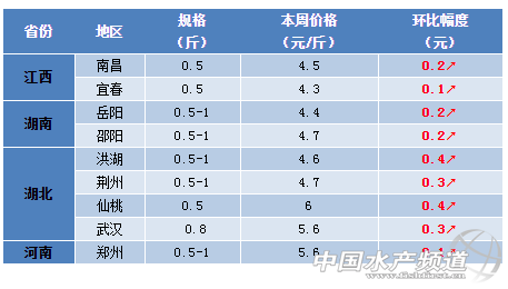| 中國(guó)水產(chǎn)頻道原創(chuàng)報(bào)道, 中美貿(mào)易戰(zhàn)直接導(dǎo)致豆粕暴漲,價(jià)格直逼3000元/噸!然而魚價(jià)卻依然低迷,近期華東地區(qū)鰓出血嚴(yán)重,已有大批鯽魚排塘。養(yǎng)殖不易,2019年淡水魚行情能否真正迎來(lái)大漲? 文/ 水產(chǎn)前沿 鄭鵬飛 一周要聞 水溫22-23℃是鯽魚鰓出血最容易爆發(fā)的時(shí)候,而近期隨著氣溫的逐漸升高,江蘇、安徽、湖北多個(gè)地區(qū)鯽魚發(fā)病比較明顯,目前江蘇鹽城、泰州已經(jīng)有很多的養(yǎng)殖戶被迫排塘。受魚病的影響,目前發(fā)病地區(qū)鯽魚行情受到?jīng)_擊而回落,福建,浙江,湖北,湖南,廣東等其他地區(qū)行情出現(xiàn)上漲。 據(jù)養(yǎng)殖戶和流通商介紹,最近廣州批發(fā)市場(chǎng)草魚漲了0.2元/斤,鯽魚較之前最高上漲2元/斤;肇慶地區(qū)1斤的鯽魚最高漲了0.5元/斤,最新塘頭價(jià)賣到8.5元/斤;梅州地區(qū)鯽魚塘頭價(jià)也漲到8-8.5元/斤,市場(chǎng)批發(fā)價(jià)10-10.5元/斤;湖北隨州地區(qū)0.5-0.8斤的鯽魚塘頭價(jià)已經(jīng)可以賣到6.3元/斤;仙桃地區(qū)0.45斤的鯽魚塘頭賣到6元/斤,半斤以上的可以賣到7元/斤;最近湖南常德地區(qū)鯽魚、鯉魚和鳊魚行情都有上升趨勢(shì),0.5斤的湘云鯽最新塘頭價(jià)4元/斤, 1斤以上的賣4.5-4.6元/斤,1-3斤的鯉魚賣4.5元/斤,1-1.6斤的鳊魚賣5元/斤;江西新魚地區(qū)鯽魚最新塘頭價(jià)也賣到6元/斤;福建南平地區(qū)鯽魚最新塘頭價(jià)6.5元/斤,較之前上漲0.4-0.5元/斤;最近浙江衢州地區(qū)0.5斤以上的鯽魚塘頭價(jià)賣到5.5-5.6元/斤,上漲0.2-0.3元/斤;遼寧沈陽(yáng)地區(qū)0.5斤的鯽魚塘頭價(jià)維持在6-6.2元/斤,1斤的最高也可以賣到8元/斤。據(jù)流通商介紹,最近甘肅蘭州地區(qū)鯽魚行情開始有所好轉(zhuǎn),批發(fā)價(jià)可以賣到8元/斤左右。 雖然,近期多地鯽魚行情呈現(xiàn)回暖趨勢(shì),無(wú)奈塘頭價(jià)仍相對(duì)低迷。了解到,最近江西有養(yǎng)殖戶已經(jīng)不再養(yǎng)魚改做其他行業(yè)了。隨著水產(chǎn)行業(yè)的發(fā)展,暴利時(shí)代已經(jīng)過(guò)去,隨便養(yǎng)養(yǎng)就能賺錢已經(jīng)成為一種奢望。如今,魚價(jià)依然低迷,然而飼料原料又出現(xiàn)大漲,豆粕直逼3000元/噸,2019年的養(yǎng)殖戶也是面臨進(jìn)一步壓力。今年淡水魚行情能否迎來(lái)真正的大漲,養(yǎng)殖戶又該如何度過(guò)當(dāng)前的困哪時(shí)期,歡迎留言分享! 本周行情 華南地區(qū) 近期,華南地區(qū)淡水魚行情進(jìn)一步回暖。有流通商表示,最近廣州地區(qū)草魚漲了0.2元/斤,鯽魚批發(fā)價(jià)相比月初最高上漲2元/斤;目前肇慶地區(qū)0.4斤的鯽魚塘頭價(jià)6.5元/斤,1斤的較之前最高漲了0.5元/斤,塘頭價(jià)賣到8.5元/斤;梅州地區(qū)鯽魚最新塘頭價(jià)8-8.5元/斤,批發(fā)價(jià)也賣到10-10.5元/斤;最近中山地區(qū)鯽魚行情繼續(xù)有小幅上漲;目前廣西來(lái)賓、桂林等地區(qū)鯽魚塘頭價(jià)還是維持在5.5-5.8元/斤,暫時(shí)沒(méi)有明顯變化。 肇慶:從養(yǎng)殖戶了解到,目前廣東肇慶地區(qū)0.4斤的鯽魚塘頭價(jià)6.5元/斤,1斤以上的大鯽魚比較緊俏,塘頭價(jià)已經(jīng)賣的8.5元/斤,相比之前最高上漲0.5元/斤。 廣州:最近廣州市場(chǎng)淡水魚行情逐漸好轉(zhuǎn),多個(gè)品種價(jià)格回升。據(jù)流通商介紹,最近廣州地區(qū)草魚漲了0.2元/斤,鯽魚較之前也是漲了,批發(fā)價(jià)相比月初最高可以多賣2元/斤。 中山:本周中山地區(qū)的鯽魚行情也是進(jìn)一步好轉(zhuǎn)。有流通商反映,目前鯽魚的行情還不錯(cuò),塘頭價(jià)繼續(xù)有回暖趨勢(shì)。 梅州:據(jù)業(yè)內(nèi)人士介紹,最近梅州地區(qū)鯽魚行情也開始好轉(zhuǎn),目前塘頭價(jià)已經(jīng)漲到8-8.5元/斤,批發(fā)價(jià)也賣到10-10.5元/斤。 廣西:本周廣西地區(qū)的鯽魚行情整體上還是沒(méi)有太大變化。據(jù)養(yǎng)殖戶介紹,目前來(lái)賓、桂林等地區(qū)的鯽魚最新塘頭還是維持在5.5-5.8元/斤。 華中地區(qū) 本周華中地區(qū)的鯽魚行情相比之前開始有所好轉(zhuǎn),部分地區(qū)上漲比較明顯。其中,湖北隨州地區(qū)0.5-0.8斤的鯽魚塘頭價(jià)已經(jīng)可以賣到6.3元/斤;仙桃地區(qū)鯽魚塘頭價(jià)較之前也是出現(xiàn)上漲,0.45斤的鯽魚塘頭賣到6元/斤,半斤以上的可以賣到7元/斤。湖南常德地區(qū)鯽魚、鯉魚和鳊魚行情都有上升趨勢(shì),0.5斤的湘云鯽最新塘頭價(jià)4元/斤, 1斤以上的賣4.5-4.6元/斤,1-3斤的鯉魚賣4.5元/斤,1-1.6斤的鳊魚賣5元/斤。江西新魚地區(qū)鯽魚最新塘頭價(jià)也賣到6元/斤,不過(guò)目前南昌、樟樹、宜春等地區(qū)的行情還是不好,了解到有養(yǎng)殖戶已經(jīng)改行不養(yǎng)魚了。 江西:從養(yǎng)殖戶了解到,最近新魚地區(qū)鯽魚塘頭價(jià)也可以賣到6元/斤。但是,目前南昌、樟樹、宜春等地區(qū)的淡水魚行情還是不好,塘頭價(jià)依然低迷,有養(yǎng)殖戶已經(jīng)改行不養(yǎng)魚了。 湖北:本周湖北地區(qū)的鯽魚行情整體上呈現(xiàn)回暖趨勢(shì),多個(gè)地區(qū)價(jià)格出現(xiàn)上漲。據(jù)了解,目前隨州地區(qū)0.5-0.8斤的鯽魚塘頭價(jià)賣6.3元/斤;仙桃地區(qū)0.45斤的鯽魚塘頭價(jià)賣6元/斤,半斤以上的可以賣到7元/斤;最近洪湖地區(qū)很多池塘也是出現(xiàn)死鯽