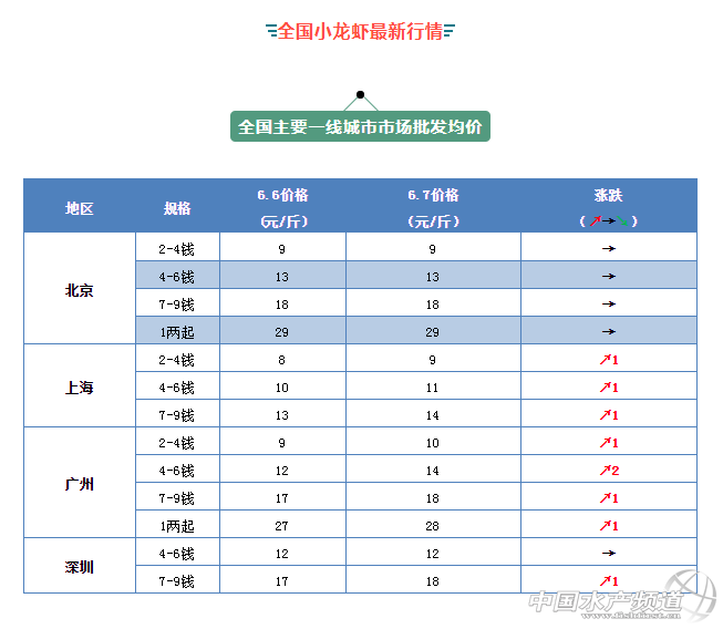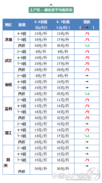 | 中國(guó)水產(chǎn)頻道原創(chuàng)報(bào)道, 小龍蝦上市正當(dāng)時(shí) 全國(guó)小龍蝦行情解析 水產(chǎn)前沿與您每周相約 文/ 水產(chǎn)前沿 鄭鵬飛 今天是一年一度的端午佳節(jié),又是和家人、朋友歡聚的時(shí)候,這么重要的時(shí)候小龍蝦一定是少不了的。據(jù)了解,最近小龍蝦消費(fèi)市場(chǎng)異;鸨壳耙呀(jīng)有多個(gè)地區(qū)的小龍蝦價(jià)格行情出現(xiàn)大漲。其中,青蝦的價(jià)格上漲最為明顯,尤其7-9錢(qián)規(guī)格更受市場(chǎng)歡迎;最近各地紅蝦也基本都有1-2元/斤的上漲。今天也是高考的第一天,水產(chǎn)前沿小龍蝦報(bào)價(jià)祝所有的考生:考到的都會(huì),瞎蒙的都對(duì),加油! 作為小龍蝦養(yǎng)殖最為集中的中部地區(qū)也正式進(jìn)入了梅雨季節(jié),近期湖北武漢地區(qū)白天最高氣溫將達(dá)到33℃,天氣以多云和陰雨天氣為主。對(duì)于小龍蝦養(yǎng)殖,近期需要適當(dāng)加深水位以減小溫度突變引起的應(yīng)激。同時(shí),底質(zhì)可以說(shuō)是小龍蝦養(yǎng)殖中影響最關(guān)鍵的一個(gè)因素,隨著前期投喂增多和氣溫的上升,近期需要進(jìn)一步加強(qiáng)改底以減小細(xì)菌性疾病的發(fā)病幾率。 |