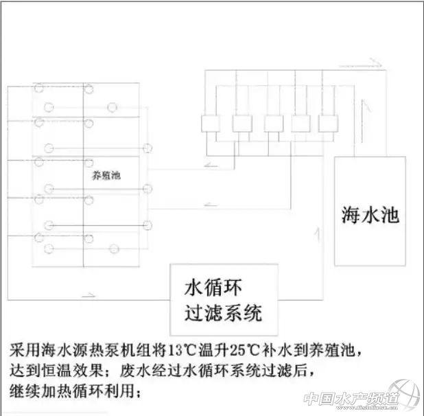 | 中國水產(chǎn)頻道原創(chuàng)報(bào)道, 低能耗、無污染——養(yǎng)殖專用海水源熱泵機(jī)組 文 | 工業(yè)化水產(chǎn)圈 植銀素 室內(nèi)工廠化養(yǎng)殖管理高效、環(huán)境可控、生產(chǎn)不受地域時(shí)間限制、效益好,可有效避免傳統(tǒng)土塘養(yǎng)殖方式帶來的病害和水體污染以及較高程度減少天氣對養(yǎng)殖的不利影響。 近年來,越來越多的水產(chǎn)養(yǎng)殖動物開始走進(jìn)室內(nèi),以南美白對蝦為例,反季節(jié)養(yǎng)殖可以利用市場需求賣出高價(jià),而且成功率相對較高,得到廣泛青睞。但控溫的成本和環(huán)保問題在近年也得到了較大關(guān)注。 一般來說,加熱池水的方式是傳統(tǒng)的燒煤方式,然而這種加熱方式會對環(huán)境造成污染,并不適應(yīng)長期發(fā)展。隨著環(huán)保的管控,燒煤已被逐漸禁止,新的加熱池水方式出現(xiàn)。例如以下的幾種選擇: 1、天然氣:會有自然條件和價(jià)格限制 2、生物質(zhì):供應(yīng)不穩(wěn)定 3、燒電:價(jià)格太貴,一般消費(fèi)者承擔(dān)不起該費(fèi)用 4、太陽能:在水產(chǎn)養(yǎng)殖中并不適用,因?yàn)橥砩蠜]有太陽能 5、熱泵(常見的熱泵是空氣源熱泵和水源熱泵) 因高污染、高能耗正在被加速淘汰,海水源熱泵產(chǎn)品作為一種清潔、高效、穩(wěn)定的采暖設(shè)備已成為海水養(yǎng)殖領(lǐng)域的新寵。 認(rèn)識海水源熱泵 海水養(yǎng)殖專用型水源熱泵恒溫機(jī)組 工作原理 海水源熱泵機(jī)組工作原理就是將海水中存在的大量的低位能收集起來,借助壓縮機(jī)系統(tǒng),通過消耗少量電能,在冬季把存于海水中的低品位能量“取”出來,給建筑物供熱;夏季則把建筑物內(nèi)的能量“取”出來釋放到海水中,以達(dá)到調(diào)節(jié)室內(nèi)溫度的目的。這種機(jī)組的最大優(yōu)勢在于對資源的高效利用,首先它雖然以海水為“源體”,但不消耗海水,也不對海水造成污染;其次它的熱效率高,消耗1千瓦的電能,可以獲得3千瓦至4千瓦的熱量或冷量,從根本上改變了傳統(tǒng)的能源利用方式。 海水源熱泵的優(yōu)勢 從海水中獲取能源 讓供暖制冷零污染 以熱泵作為熱源和冷源來完成海水的加熱和冷卻,是一種低能耗、無污染的加熱冷卻技術(shù),不消耗地下水,符合目前我國能源環(huán)保的基本政策和國民經(jīng)濟(jì)可持續(xù)發(fā)展的戰(zhàn)略要求。 環(huán)保效益顯著 海水源熱泵機(jī)組供熱時(shí)省去了燃煤、燃?xì)、燃油等鍋爐房系統(tǒng),無燃燒過程,避免了排煙、排污等污染;供冷時(shí)省去了冷卻水塔,避免了冷卻塔的噪音、霉菌污染及水耗。所以,海水源熱泵機(jī)組運(yùn)行無任何污染,無燃燒、無排煙,不產(chǎn)生廢渣、廢水、廢氣和煙塵,對環(huán)境非常友好,是理想的綠色環(huán)保產(chǎn)品。 節(jié)水省地 以海水為冷熱源,向其放出熱量或吸收熱量,不消耗水資源,不會對其造成污染;省去了鍋爐房及附屬煤場、儲油房、冷卻塔等設(shè)施,機(jī)房面積大大小于常規(guī)空調(diào)系統(tǒng),節(jié)省建筑空間,也有利于建筑的美觀。 可再生能源 海水源熱泵是利用了海洋所儲藏的太陽能資源作為熱源,利用海洋自然散熱后的低溫水作為冷源,進(jìn)行能量轉(zhuǎn)換的供暖空調(diào)系統(tǒng)。覆蓋地球表面71%的海洋不僅是世界上最大的太陽能集熱器(每km2海洋表面水層含有的能量相當(dāng)于3800桶石油燃燒發(fā)出的熱量),還是一個(gè)巨大的動態(tài)能量平衡系統(tǒng),海洋自然地保持能量接受和發(fā)散的相對的均衡,使得利用儲存于其中近乎無限的太陽能成為可能。所以說,水源熱泵利用的是清潔的可再生能源的一種技術(shù)。 高效節(jié)能 水源熱泵是目前空調(diào)系統(tǒng)中能效比(COP值)最高的制冷、制熱方式,理論計(jì)算可達(dá)到7,實(shí)際運(yùn)行為4~6。水源熱泵機(jī)組可利用的水體溫度冬季為12~22℃,水體溫度比環(huán)境空氣溫度高,所以熱泵循環(huán)的蒸發(fā)問題提高,能效比也提高。而夏季水體溫度為18~35℃,水體溫度比環(huán)境空氣溫度低,所以制冷的冷凝溫度降低,使得冷卻效果好于風(fēng)冷式和冷卻塔式,從而提高機(jī)組運(yùn)行效率。 水源熱泵消耗1kw.h的電量,用戶可以得到4.3~5.0kw.h的熱量或5.4~6.2kw.h的冷量。與空氣源熱泵相比,其運(yùn)行效率要高出20~60%,運(yùn)行費(fèi)用僅為普通中央空調(diào)的40~60%。 運(yùn)行穩(wěn)定 水體溫度較恒定的特性,使得熱泵機(jī)組運(yùn)行更可靠、穩(wěn)定,也保證了系統(tǒng)的高效性和經(jīng)濟(jì)性;不存在空氣源熱泵機(jī)組冬天除霜、制熱量衰減等難點(diǎn)問題。 同時(shí)可完成冬季魚池加熱及夏季魚池制冷,有效的解決水產(chǎn)養(yǎng)殖的水溫控制問題。 運(yùn)用多種防腐蝕材料及工藝 海水源熱泵在水產(chǎn)養(yǎng)殖中的應(yīng)用案例 系統(tǒng)安裝示意圖 福建石斑魚養(yǎng)殖 養(yǎng)殖池一般設(shè)立在海邊,如在福建沿海地區(qū)的海水冬季溫度在13-16℃,考慮到水源取之不盡,在循環(huán)大水量情況下,能效比COP值在4以上,采用海水源熱泵是最佳選擇。 養(yǎng)殖形式 車間式(搭保溫板全封閉車間):冬季可減少散熱量及降低系統(tǒng)投入成本。以這種形式進(jìn)行養(yǎng)殖每天晚上水池降溫2℃,白天有陽光照射的時(shí