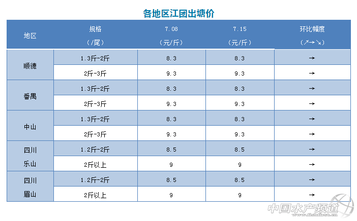 2、本周四川江團大小魚價格與上周持平,小魚還是8.5元/斤,大魚還是9元/斤,現在當地總體銷量不大,價格或將保持穩(wěn)定,銷量與上周也差不多。