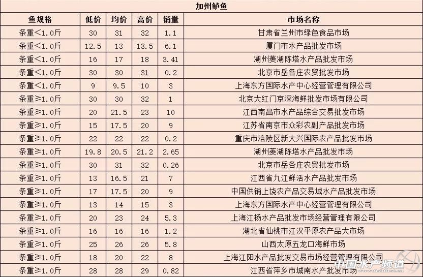 摘要: 中國(guó)水產(chǎn)頻道報(bào)道,8月12日最新加州鱸各地批發(fā)市場(chǎng)價(jià)