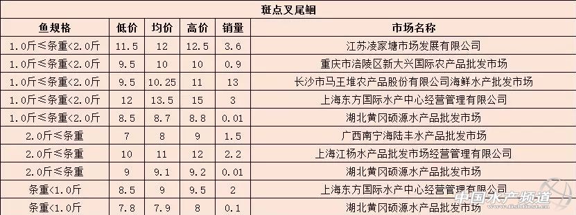 摘要: 中國水產(chǎn)頻道報道,8月12日最新斑點叉尾鮰各地批發(fā)市場價