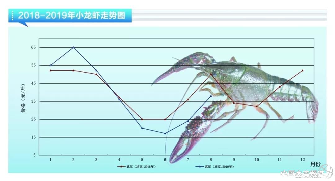 中國水產(chǎn)頻道原創(chuàng)報道,8月份天氣熱,但是在立秋之后已經(jīng)有所緩解,小龍蝦已經(jīng)進洞,下旬進入準備秋繁的階段。本月的小龍蝦市場走量與上月相比減少了一半,8月下旬武漢白沙洲市場小龍蝦市場的日均走量為20噸/天,市場銷售價格比上月同期平均上漲10元左右。小龍蝦武漢白沙洲市場小龍蝦市場銷售價為:20—34克的小龍蝦18元/斤;35—49克的小龍蝦38元/斤;50克以上的小龍蝦42元/斤。 荊州:10—19克的小龍蝦13元/斤;20—34克的小龍蝦20元/斤;35—49克的小龍蝦31元/斤;50克以上的小龍蝦45元/斤。 潛江:10—19克的小龍蝦14元/斤;20—34克的小龍蝦23元/斤;35—49克的小龍蝦33元/斤;50克以上的小龍蝦43元/斤。 荊門:20—29克的小龍蝦18元/斤;30—49克的小龍蝦28元/斤。 仙桃:10—19克的小龍蝦11元/斤;20—29克的小龍蝦18元/斤;30—40克的小龍蝦28元/斤;50克以上的小龍蝦38元/斤。 天門:10—19克的小龍蝦12元/斤;20—34克的小龍蝦20元/斤;35—49克的小龍蝦30元/斤;50克以上的小龍蝦40元/斤。 洪湖:20—34克的小龍蝦20元/斤;35—49克的小龍蝦31元/斤;50克以上的小龍蝦38元/斤。 監(jiān)利:10—19克的小龍蝦13元/斤;20—29克的小龍蝦20元/斤;30—49克的小龍蝦29元/斤;50克以上的小龍蝦37元/斤。 益陽:10—19克的小龍蝦13元/斤;20—29克的小龍蝦20元/斤;30—49克的小龍蝦30元/斤,50克以上的小龍蝦42元/斤。 南京:20—34克的小龍蝦20元/斤;35—49克的小龍蝦30元/斤;50克以上的小龍蝦38元/斤。 鹽城:10—19克的小龍蝦14元/斤;20—29克的小龍蝦21元/斤;30—49克的小龍蝦33元/斤;50克以上的小龍蝦43元/斤。 興化:10—24克的小龍蝦16元/斤;25—39克的小龍蝦22元/斤;40—50克以上的小龍蝦36元/斤。 南通:15—19克的小龍蝦12元/斤;20—29克的小龍蝦20元/斤;30—45克的小龍蝦28元/斤。 宜興:10—24克的小龍蝦15元/斤;25—39克的小龍蝦25元/斤;40-50克的小龍蝦35元/斤。 無錫:10—24克的小龍蝦15元/斤;25—39克的小龍蝦25元/斤;40—50克以上的小龍蝦38元/斤。 高郵:10—19克的小龍蝦12元/斤;20—34克的小龍蝦21元/斤;35—49克的小龍蝦32元/斤;50克以上的小龍蝦42元/斤。 淮安:20—34克的小龍蝦22元/斤;35—49克的小龍蝦35元/斤;50克以上的小龍蝦45元/斤。 馬鞍山:20—34克的小龍蝦15元/斤;35—49克的小龍蝦19元/斤;50克以上的小龍蝦23元/斤。 淮南:10—19克的小龍蝦12元/斤;20—34克的小龍蝦18元/斤;35—49克的小龍蝦33元/斤;50克以上的小龍蝦45元/斤。 亳州:10—19克的小龍蝦13元/斤;20—34克的小龍蝦21元/斤;35—49克的小龍蝦31元/斤;50克以上的小龍蝦40元/斤。 蕪湖:10—19克的小龍蝦10元/斤;20—34克的小龍蝦15元/斤;35—49克的小龍蝦20元/斤;50克以上的小龍蝦25元/斤。 宣城:15—19克的小龍蝦17元/斤;20—34克的小龍蝦20元/斤;35—49克的小龍蝦32元/斤;50克以上的小龍蝦37元/斤。 滁州:15—24克的小龍蝦12元/斤;25—39克的小龍蝦22元/斤;40—50克以上的小龍蝦26元/斤。 合肥:10—19克的小龍蝦11元/斤;20—34克的小龍蝦16元/斤;35—50克的小龍蝦22元/斤。 北京:10—19克的小龍蝦16元/斤;20—34克的小龍蝦22元/斤;35—49克的小龍蝦35元/斤;50克以上的小龍蝦42元/斤。 南昌:10—19克的小龍蝦14元/斤;20—34克的小龍蝦19元/斤;35—49克的小龍蝦36元/斤;50克以上的小龍蝦45元/斤。 廣州:10—19克的小龍蝦15元/斤;20—34克的小龍蝦19元/斤;35—49克的小龍蝦34元/斤;50克以上的小龍蝦40元/斤。 信陽:10—19克的小龍蝦13元/斤;20—34克的小龍蝦19元/斤;35—49克的小龍蝦29元/斤;50克以上的小龍蝦35元/斤。 濟寧:10—19克的小龍蝦13元/斤;20—29克的小龍蝦18元/斤;30—50克的小龍蝦28元/斤。 青島:20—34克的小龍蝦16元/斤;35—49克的小龍蝦21元/斤;50克以上的小龍蝦28元/斤。 上海:10—19克的小龍蝦10元/斤;20—34克的小龍蝦18元/斤;35—49克的小龍蝦20元/斤。 資陽:20—34克的小龍蝦24元/斤;35—50克的小龍蝦35元/斤。 成都:20—34克的小龍蝦16元/斤;35—49克的小龍蝦21元/斤。 昆明:15—24克的小龍蝦15元/斤;25—34克的小龍蝦22元/斤;35—49克的小龍蝦34元/斤;50克以上的小龍蝦40元/斤。 杭州:20—34克的小龍蝦15元/斤;35—49克的小龍蝦28元/斤;50克以上的小龍蝦40元/斤。 重慶:20—19克的小龍蝦13元/斤;20—29克的小龍蝦20元/斤;30—49克的小龍蝦32元/斤;50克以上的小龍蝦39元/斤。 預計2019年9月份小龍蝦的市場銷量可能會持續(xù)下降,市場價格繼續(xù)上漲。(耿明順) |