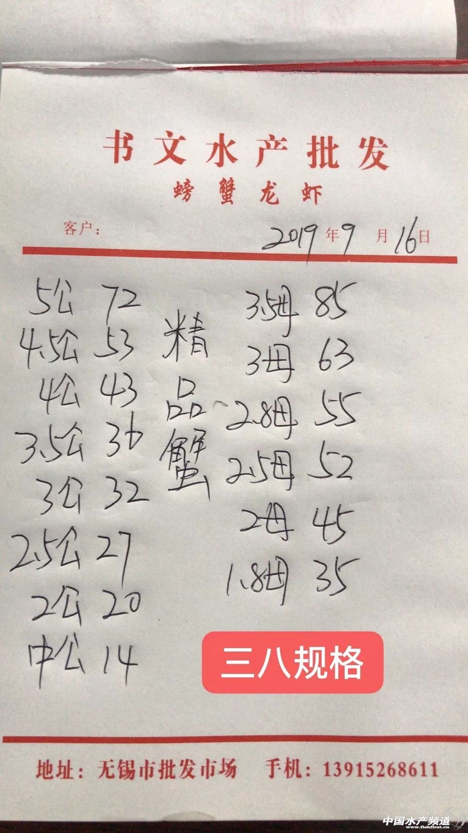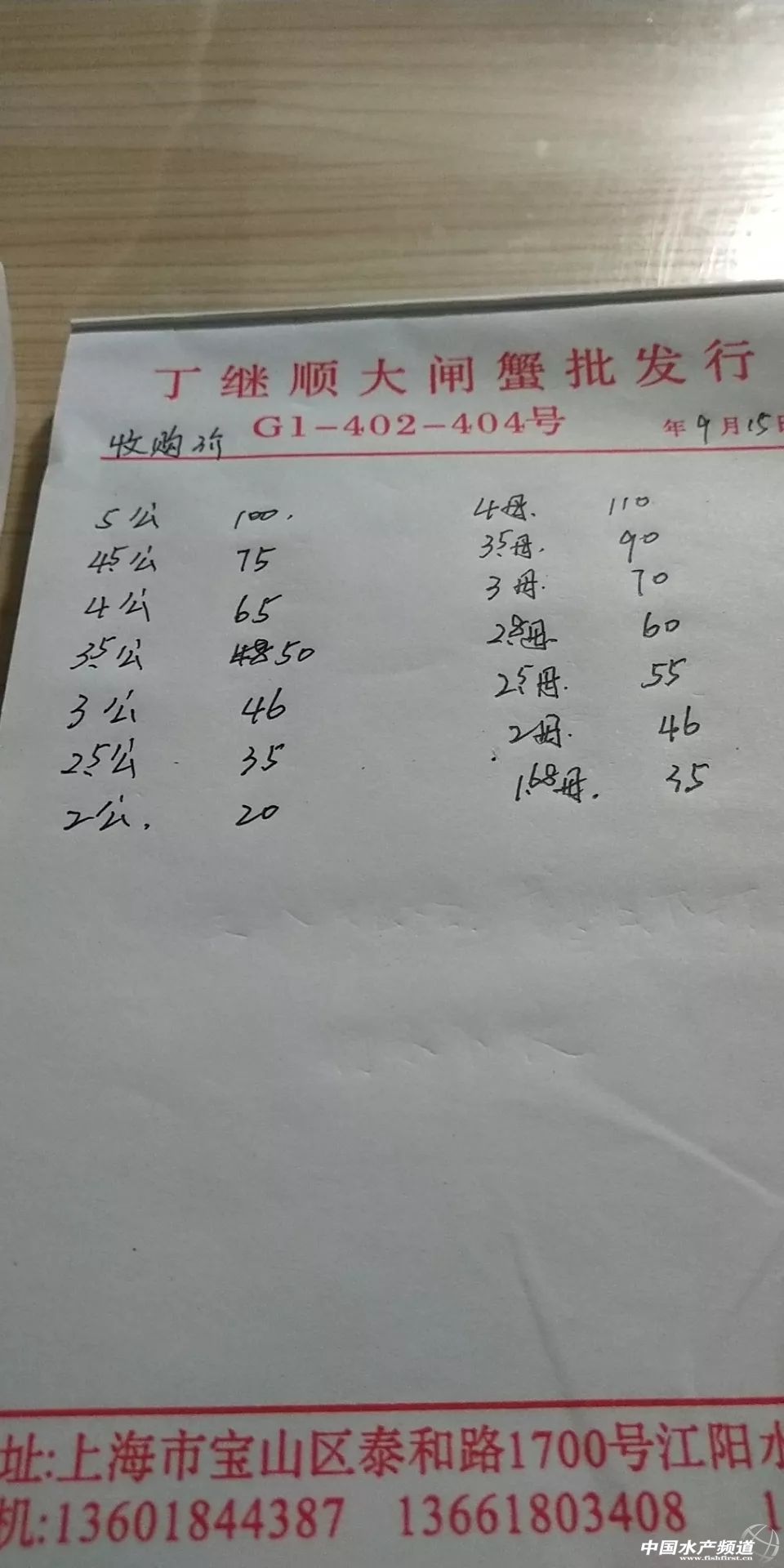 | 中國(guó)水產(chǎn)頻道原創(chuàng)報(bào)道, 做國(guó)內(nèi)最中立的報(bào)價(jià)平臺(tái),不被利益綁架,讓養(yǎng)殖者、流通商、零售商與消費(fèi)者都能第一時(shí)間了解最真實(shí)的價(jià)格與供求數(shù)據(jù)。 行情分析 與昨天相比,興化今天全線下跌。6公跌10元/斤,跌幅最大;中規(guī)格普遍跌3-5元/斤,4公、4.5公、3.5母均跌5元/斤。小規(guī)格普遍跌1-3元/斤,2.5公從昨天的22元/斤跌至今天20元/斤。 高淳今天也全線下跌。大規(guī)格蟹跌價(jià)多,小規(guī)格蟹跌價(jià)少,各規(guī)格跌價(jià)1-11元/斤。3母從昨天的67元/斤跌至今天的56元/斤,跌價(jià)最多。 今日交易價(jià) 高郵 此報(bào)價(jià)由江蘇好潤(rùn)臨澤養(yǎng)殖戶劉老板提供 泗洪 此報(bào)價(jià)單由江蘇好潤(rùn)臨淮店賈明先提供 今日參考價(jià) 興化 此報(bào)價(jià)由江蘇好潤(rùn)安豐店劉詩微提供 此報(bào)價(jià)由江蘇好潤(rùn)下圩店張玉蘭提供 此報(bào)價(jià)由江蘇好潤(rùn)陳剛提供 高淳 此報(bào)價(jià)由江蘇好潤(rùn)固城湖店劉坤提供 此報(bào)價(jià)由江蘇好潤(rùn)固城湖店劉坤提供 此報(bào)價(jià)由江蘇好潤(rùn)獅樹店田玲提供 盤錦 泗洪 此報(bào)價(jià)由泗洪孫老板提供 此報(bào)價(jià)由江蘇好潤(rùn)臨淮店賈明先提供 上海 此報(bào)價(jià)由上海曹老板提供 無錫 |