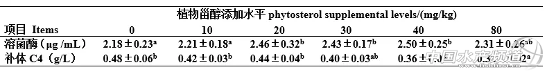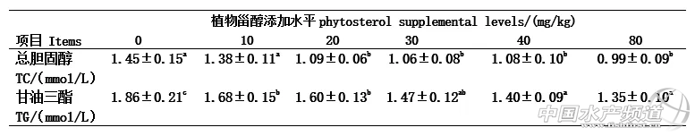 | 中國水產(chǎn)頻道報道, 摘要:本試驗旨在研究飼料中添加植物甾醇對草魚幼魚生長、血脂、免疫功能及腸道形態(tài)的影響。選取健康、平均體重為(5.32±0.10)g的草魚幼魚540尾,隨機(jī)分為6組,每組3個重復(fù),每個重復(fù)30尾,分別飼喂含0(對照組)、10、20、30、40和80mg/kg植物甾醇的試驗飼料。養(yǎng)殖試驗持續(xù)8周。結(jié)果表明:1)與對照組相比,飼料中添加植物甾醇顯著提高了草魚幼魚增重率和蛋白質(zhì)效率(P<0.05),顯著降低了飼料系數(shù)(P<0.05)。2)飼料中添加植物甾醇有使血清甘油三酯和膽固醇含量下降的趨勢,其中20、30、40和80mg/kg組血清膽固醇含量顯著低于對照組(P<0.05),各添加組血清甘油三酯含量均顯著低于對照組(P<0.05)。3)與對照組相比,20、30和40mg/kg組血清溶菌酶活性顯著上升(P<0.05);40和80mg/kg組血清C4補體含量顯著降低(P<0.05)。4)與對照組相比,30、40和80mg/kg組腸道黏膜厚度顯著增加(P<0.05);20和30mg/kg組腸道脂肪酶活性顯著升高(P<0.05)。綜上所述,飼料中添加適量植物甾醇能夠促進(jìn)草魚幼魚生長、降低飼料系數(shù),并降低血脂,增強(qiáng)免疫以及腸道發(fā)育。 文/ 廣東蔚萊生物科技有限公司 關(guān)鍵詞:植物甾醇,草魚,生長性能,免疫 植物甾醇是一種具有植物活性成分的甾體類化合物,是植物細(xì)胞的重要組成成分,其分子含28-29個碳原子,C-3位羥基是非常重要的活性基團(tuán),是一種多功能活性因子。大量研究表明,植物甾醇具有降低膽固醇、抗氧化、抗癌、調(diào)節(jié)免疫等功能,迄今已開發(fā)出多種含有植物甾醇的功能性食品。2008年,我國農(nóng)業(yè)部批準(zhǔn)植物甾醇可作為功能性添加劑用于畜禽飼料。近年來,已有不少關(guān)于植物甾醇在畜禽生產(chǎn)中的應(yīng)用研究,但植物甾醇在草魚等水產(chǎn)動物的研究應(yīng)用鮮見報道。本試驗通過在草魚幼魚飼料中添加不同水平的植物甾醇,研究植物甾醇對草魚幼魚生長性能、血脂、免疫功能及腸道形態(tài)的影響,確定其最佳添加量,并為植物甾醇在草魚生產(chǎn)上的合理利用提供理論依據(jù)。 1、材料與方法 1.1試驗設(shè)計與分組 選取健康、平均體重為(5.32±0.10)g的草魚幼魚540尾,隨機(jī)分為6組,每組3個重復(fù),每個重復(fù)30尾,分別飼喂含0(對照組)、10、20、30、40和80mg/kg植物甾醇的試驗飼料。 1.2試驗飼糧 試驗基礎(chǔ)飼糧配方及營養(yǎng)成分表見表1。 表1 基礎(chǔ)飼糧組成及營養(yǎng)水平(風(fēng)干基礎(chǔ)) 1.3飼養(yǎng)管理 根據(jù)水溫、溶氧、天氣和魚的攝食狀況進(jìn)行投喂,每天三次,魚進(jìn)箱時浸洗消毒。實驗期間,自然光照,每天觀察魚的活動和健康狀況,追蹤記錄死亡和投飼量。定期排污和換水,飼養(yǎng)周期為8周。 1.4樣品采集與處理 養(yǎng)殖試驗結(jié)束后,魚體饑餓24h后采樣。統(tǒng)計每個養(yǎng)殖箱的草魚尾數(shù)并稱總重,然后分別采集草魚的血清與腸道。每桶隨機(jī)取5尾羅非魚,用經(jīng)肝素鈉試劑潤洗后的注射器進(jìn)行尾靜脈采血,低溫靜置1h后,以4000r/min離心15min,制得血清樣品,置于-80℃冰箱中以備分析。 1.5測定指標(biāo)及方法 1.5.1生長性能的測定 按下式計算增重率、蛋白質(zhì)效率、飼料系數(shù)和成活率: 增重率(WGR,%)=100×(終末體重-初始體重)/初始體重; 蛋白質(zhì)效率(PER,%)=100×(終末體重-初始體重)/(總投餌量×蛋白質(zhì)含量); 飼料系數(shù)(FCR)=總投餌量/魚總增重量; 成活率(SR,%)=100×終末尾數(shù)/初始尾數(shù)。 1.5.2血清生化指標(biāo)的測定 將采集的血清從-80℃冰箱取出,解凍后待測。采用試劑盒測定血清總膽固醇(TC)、甘油三酯(TG)含量。測定方法按照北京北化康泰臨床試劑有限公司試劑盒使用說明。 1.5.3血清免疫指標(biāo)的測定 將采集的血清從-80℃冰箱取出,解凍后待測。血清溶菌酶活性采用南京建成生物工程研究所的試劑盒測定,補體C4含量采用浙江伊利康生物技術(shù)有限公司的試劑盒測定 1.5.4腸道脂肪酶及黏膜厚度的測定 腸道脂肪酶活性采用南京建成生物工程研究所的試劑盒測定。中腸經(jīng)過AFA固定、乙醇逐級脫水、二甲苯透明、石蠟包埋、切片(5μm)、蘇木精-伊紅(HE)染色、脫水、透明、中性樹脂封片。在每組選取9張非連續(xù)性切片,用LeicaMD4000B顯微鏡觀察并拍照,每張切片隨機(jī)選取3個視野,圖像由MoticImagesPlus6.0軟件進(jìn)行測量和計算黏膜厚度,分別取其平均值作為該樣品的測定結(jié)果。 1.6數(shù)據(jù)統(tǒng)計 試驗數(shù)據(jù)經(jīng)Excel初步統(tǒng)計,采用SPSS18.0軟件進(jìn)行方差分析,用Duncan法進(jìn)行多重比較。以P<0.05作為差異顯著性判斷標(biāo)準(zhǔn),結(jié)果以平均值±標(biāo)準(zhǔn)差表示。 2、結(jié)果與分析 2.1植物甾醇對草魚幼魚生長性能的影響 植物甾醇對草魚幼魚生長性能的影響見表2。 由表2所示,飼料中添加植物甾醇的各試驗組草魚終末體重和增重率均高于對照組,其中添加20、30、40mk/kg植物甾醇的試驗組的草魚終末體重、增重率顯著高于對照組(P<0.05);添加植物甾醇的各試驗組的蛋白質(zhì)效率均顯著高于對照組(P<0.05),添加20、30、40、80mg/kg植物甾醇的試驗組的飼料系數(shù)顯著低于對照組和10mg/kg試驗組(P<0.05),飼料中添加植物甾醇的各試驗組草魚幼魚的成活率與對照組相比差異不顯著(P>0.05)。 表2 植物甾醇對草魚幼魚生