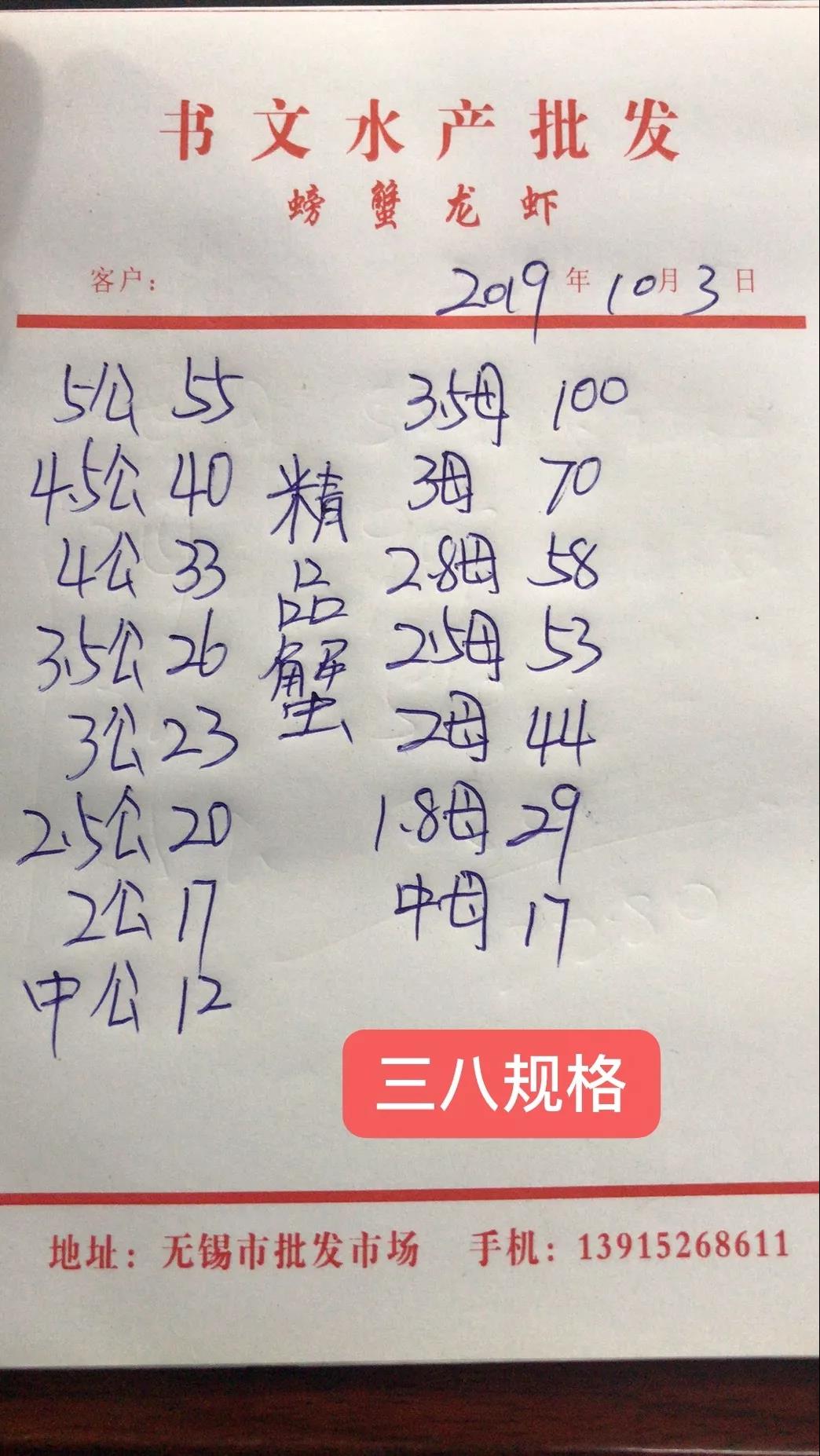 最新行情解析 興化 中國水產(chǎn)頻道原創(chuàng)報(bào)道,近期興化蟹價(jià)整體呈上漲趨勢,較國慶節(jié)前平均上漲2元/斤。但今天蟹價(jià)有所下跌,跌價(jià)主要以公蟹為主。目前市場對(duì)母蟹的需求還是比較大,母蟹價(jià)格堅(jiān)挺,部分規(guī)格還略有上漲。蟹價(jià)主要還是由供需決定,公蟹成熟晚,目前需求少,價(jià)格暫時(shí)難以持續(xù)上漲。 今天興化公蟹除6公、中公外,其他規(guī)格下跌1-3元/斤不等。3.5公跌價(jià)最多,由20元/斤跌至17元/斤。母蟹大多平穩(wěn),2母、2.5母均上漲1元/斤。 高淳 近期高淳蟹價(jià)起伏較大,繼昨天小漲后,今天呈斷崖式下跌,價(jià)格甚至低于國慶節(jié)前,且低于去年同期。 今天高淳精品門市全線下跌,大蟹大跌,小蟹小跌。4.5公、5公、6公暴跌20元/斤,2.5母及以上規(guī)格均跌10元/斤以上。小規(guī)格蟹跌2-5元不等。 今日參考價(jià) 興化 此報(bào)價(jià)由興化丁老板提供 此報(bào)價(jià)由江蘇好潤永豐店提供 高淳 此報(bào)價(jià)由江蘇好潤固城湖店劉坤提供 此報(bào)價(jià)由江蘇好潤獅樹店田玲提供 此報(bào)價(jià)由江蘇好潤獅樹店田玲提供 盤錦 此報(bào)價(jià)由盤錦王老板提供 泗洪 此報(bào)價(jià)由江蘇好潤臨淮店賈明先提供 此報(bào)價(jià)由江蘇好潤臨淮店賈明先提供 馬鞍山 此報(bào)價(jià)由江蘇好潤塘南店張悅提供 無錫 此報(bào)價(jià)由江蘇無錫王老板提供 宣城 此報(bào)價(jià)由宣城劉老板提供 |