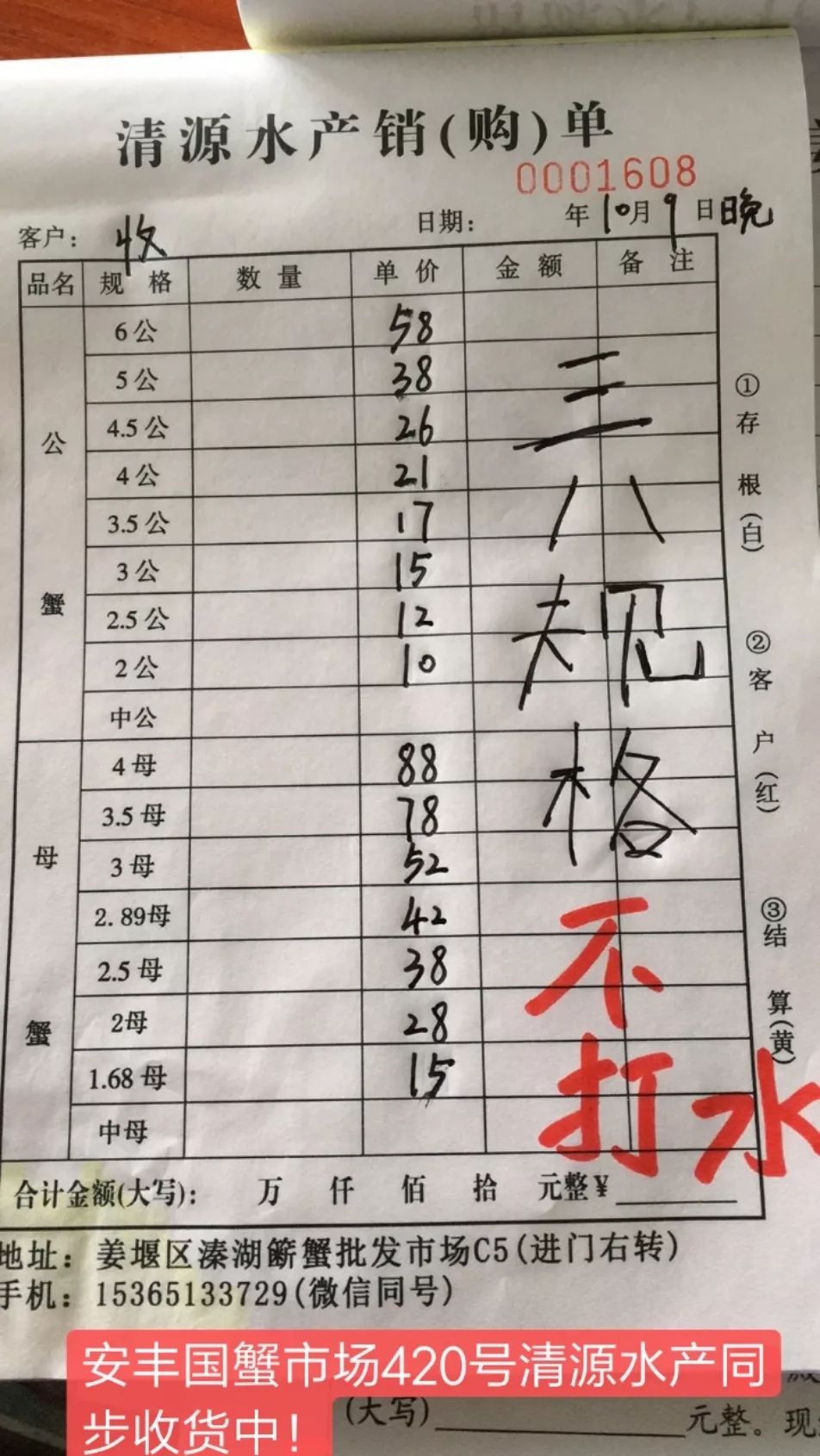 | 中國水產(chǎn)頻道報道, 最新行情解析 興化 近期興化蟹價整體呈“V”型,7日、8日大跌后,昨天大幅上漲,今天微跌。目前蟹價整體低于去年同期。 今天興化公蟹普遍跌1元/斤,母蟹跌1-3元/斤不等。1.8母跌3元/斤,跌價最多。僅2公漲1元/斤。 高淳 自7日暴跌后,近期高淳精品門市平均蟹價維持在58元/斤左右,今天略有上漲。但與去年同期相比,價格仍舊偏低。 今天高淳精品門市公蟹普遍上漲,母蟹整體平穩(wěn)。5兩公蟹由80元/斤漲至90元/斤,漲幅最大,其他規(guī)格公蟹上漲1-5元/斤不等。3.5母漲5元/斤,2.8母跌2元/斤,其他規(guī)格母蟹價格基本未變。 今日參考價 興化 此報價由興化丁老板提供 此報價由鹽城天邦申亞陽提供 高淳 此報價由江蘇好潤固城湖店劉坤提供 此報價由江蘇好潤獅樹店田玲提供 泗洪 此報價由泗洪孫老板提供 馬鞍山 此報價由江蘇好潤塘南店張悅提供 宣城 此報價由宣城劉老板提供 無錫 此報價由無錫王老板提供 上海 此報價由上海曹老板提供 |
