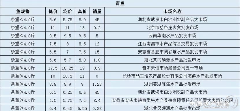 摘要: 中國水產(chǎn)頻道報道,10月24日最新青魚全國各地批發(fā)市場價。