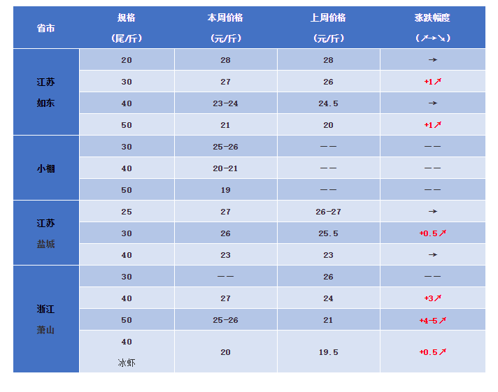 | 中國水產(chǎn)頻道原創(chuàng)報道, 文/水產(chǎn)前沿 植銀素 【本欄目由《水產(chǎn)前沿》、“西瑞動!甭(lián)合制定,助各養(yǎng)殖朋友,養(yǎng)得好、賣得好!】 本周行情 本周珠三角地區(qū)的養(yǎng)殖戶終于等到了蝦價大漲的消息。據(jù)了解,中山地區(qū)各規(guī)格均漲3元/斤,珠海最高漲4元/斤,江門也出現(xiàn)明顯增長。但是流通商表示近期交易量仍然有限,養(yǎng)殖戶也沒有因為價格上漲而增加上市。本周,惠州地區(qū)蝦價也跟漲1元/斤,但是陽江、湛江地區(qū)保持平穩(wěn),甚至出現(xiàn)小幅下調(diào),主要也是優(yōu)質(zhì)蝦少,病蝦上市的原因。 本周江浙地區(qū)蝦價持續(xù)穩(wěn)中有升。目前如東外塘蝦存量約剩10%,而不加溫的棚蝦已經(jīng)開始陸續(xù)上市,預(yù)計后期蝦價維穩(wěn)或者小幅回落。據(jù)如東縣南美白對蝦協(xié)會消息,有多處養(yǎng)殖戶反映,自家塘口蝦有被竊的跡象,可能是近期蝦價上漲,讓小偷起了賊心。此處提醒養(yǎng)殖戶要謹防深夜不速之客,條件好的應(yīng)裝上監(jiān)控視頻。蕭山地區(qū)養(yǎng)殖戶表示,不到一周當?shù)?0條規(guī)格的蝦從20元/斤飆漲至25元/斤,貨源短缺讓蝦價快速飆升。有業(yè)內(nèi)人士表示,這種上漲只是短期的,后期回落也會較大。 國內(nèi)部分產(chǎn)區(qū)蝦價分析 華南地區(qū) 珠三角:30條28元/斤,40條24-25元/斤,50條20-21元/斤,60條18元/斤,本周珠三角蝦價對比上周同期上漲非常明顯,漲幅達到2-4.5元不等。其中中山地區(qū)蝦價上漲最穩(wěn),各規(guī)格均漲3元/斤,養(yǎng)殖戶表示一周不到漲3元,賣蝦早的都要后悔了。也有流通商表示現(xiàn)在優(yōu)質(zhì)蝦不算很多,整體交易量沒有大的增漲,預(yù)計后期仍有上漲空間。 惠東:30條25元/斤,40條21元/斤,50條19元/斤;葜莸貐^(qū)十一長假后蝦價不斷回落,養(yǎng)殖戶表示今年蝦子發(fā)紅體病較多,病蝦上市帶低蝦價,目前交易量很少,養(yǎng)殖戶出蝦意愿較低。不過,本周蝦價也跟漲了1元/斤,對養(yǎng)殖戶來說仍是好消息。 陽江:土塘蝦價30條25元/斤,40頭22元/斤,50條20元/斤,60條18元/斤。本周陽江地區(qū)蝦價對比上周同期保持穩(wěn)定,目前存塘大蝦有限,養(yǎng)殖戶都希望養(yǎng)殖順利到元旦前出蝦,所以交易量少,預(yù)計蝦價在短期內(nèi)維穩(wěn)。 湛江:高位池40條22元/斤,50條19-20元/斤,東海島地區(qū)蝦價出現(xiàn)小幅調(diào)整,整體來說湛江、茂名地區(qū)交易量都較少,或者是病蝦上市,價格自然下降,養(yǎng)殖戶賣蝦時要多家比對,商議價格。 廣西:欽防30條28元/斤,40條25元/斤,50條19元/斤,本周廣西地區(qū)蝦價維穩(wěn),整體交易也有限,大蝦更少,存塘以中蝦為主。 福建:漳浦:30條24元/斤,40條21元/斤,50條19元/斤。龍海:30條26元/斤,40條22元/斤,50條20元/斤,60條18元/斤。福建地區(qū)冬棚養(yǎng)殖已經(jīng)開始,漳浦地區(qū)還有少量蝦上市,出蝦接近尾聲,養(yǎng)殖戶表示價格又亂了,同樣的規(guī)格有漲有跌,賣蝦需謹慎。 華東地區(qū) 江蘇:如東外塘20條以內(nèi)26元/斤,30條27元/斤,40條23-24元/斤,50條21元/斤。鹽城地區(qū)25條26-27元/斤,30條25元/斤,40條22元/斤,50頭19元/斤。對比上周同期如東、鹽城地區(qū)蝦價繼續(xù)上漲,但是鹽城地區(qū)外塘蝦基本清空,如東沒有使用加溫設(shè)備的小棚蝦在近期開始上市,價格略低于外塘。 浙江蕭山:40條27元/斤,50條26元/斤。蕭山地區(qū)蝦價在近兩日直線飆升,完美詮釋了“物以稀為貴”,但是業(yè)內(nèi)人士表示這種大幅增漲是短期的,目前大棚蝦規(guī)格在70條左右。 北方地區(qū) 山東:日照30條26元/斤,40條20元/斤。濱州地區(qū)外塘結(jié)束,暫停報價。目前山東地區(qū)主要有少量工廠化蝦出售,價格穩(wěn)中有漲,有業(yè)內(nèi)認識表示按照往年慣例,在11月中將達到短期價格高峰。 天津、遼寧:外塘結(jié)束,暫停報價。 |