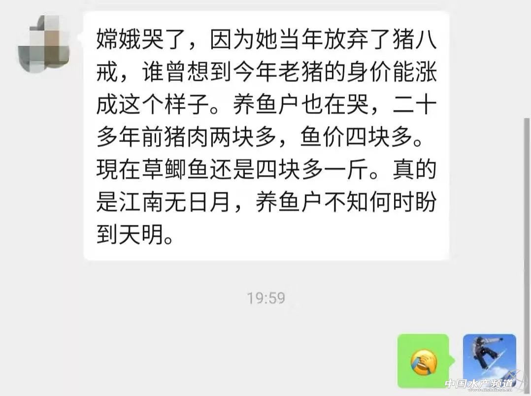 | 中國(guó)水產(chǎn)頻道原創(chuàng)報(bào)道, 江蘇半斤的鯽魚(yú)突破6元/斤,半個(gè)月漲了1.6元/斤!豬肉都賣(mài)到56.8元/斤,魚(yú)價(jià)也該漲了! 文/水產(chǎn)前沿 鄭鵬飛 一周要聞 今年做水產(chǎn)真的太不容易,典型的豐產(chǎn)不豐收。按目前的魚(yú)價(jià)行情,即使有產(chǎn)量也賣(mài)不出好價(jià)錢(qián)。了解到,最近各地魚(yú)塘偷魚(yú)事件頻發(fā),而且很多魚(yú)塘都出現(xiàn)反水顯現(xiàn),最近又有養(yǎng)殖戶出現(xiàn)大面積死魚(yú),損失慘重。越是到年底養(yǎng)殖戶越是睡不著覺(jué),生怕魚(yú)塘一個(gè)不小心出現(xiàn)意外。 養(yǎng)殖戶魚(yú)塘出現(xiàn)大面積死魚(yú) 最近的魚(yú)價(jià)整體行情卻依然非常低迷,即使是上漲勢(shì)頭迅猛的鯽魚(yú)在最近部分地區(qū)依然出現(xiàn)大幅下滑。據(jù)了解,目前廣東江門(mén)地區(qū)半斤的鯽魚(yú)市場(chǎng)上賣(mài)9元/斤,塘頭還是維持在5元/斤左右,養(yǎng)殖戶表示行情很爛;最近湖南岳陽(yáng)地區(qū)半斤的鯽魚(yú)塘頭價(jià)只有4元/斤,較上周下滑0.4元/斤;湖北隨州地區(qū)半斤左右的鯽魚(yú)塘頭賣(mài)5.5元/斤,最高跌幅達(dá)到1元/斤。有養(yǎng)殖戶反映,最近兩天不知道什么原因泰州地區(qū)大鯽魚(yú)也不好賣(mài)。 泰州網(wǎng)友留言 好在,在冷空氣的影響下,有多個(gè)地區(qū)的鯽魚(yú)行情已經(jīng)出現(xiàn)明顯上漲。有流通商反映,今天早上甘肅蘭州市場(chǎng)半斤以上的鯽魚(yú)已經(jīng)賣(mài)到9元/斤了,相比上周最高上漲1.2元/斤。最近江蘇地區(qū)病魚(yú)明顯減少,鯽魚(yú)整體行情出現(xiàn)明顯回升。江蘇鹽城地區(qū)6兩以上的鯽魚(yú)塘頭已經(jīng)可以賣(mài)到6.6元/斤,上漲0.8元/斤;9兩的鯽魚(yú)可以賣(mài)到8.8元/斤,上漲0.4元/斤;泰州部分地區(qū)半斤的鯽魚(yú)也可以賣(mài)到6.1元/斤,相比10月中旬的4.5元/斤最高上漲了1.6元/斤,7兩以上的可以賣(mài)到6.5元/斤。同時(shí)了解到,最近廣西來(lái)賓地區(qū)半斤的鯽魚(yú)塘頭價(jià)8元/斤,有1元/斤的上漲;桂林地區(qū)1斤左右的鯽魚(yú)最新塘頭價(jià)賣(mài)5.6-6元/斤,上漲0.1-0.5元/斤;江西南昌地區(qū)0.5-0.6斤鯽魚(yú)塘頭賣(mài)5.7元/斤,較上周最高上漲0.4元/斤;成都地區(qū)半斤以上的鯽魚(yú)塘頭賣(mài)6-6.5元/斤左右,上漲0.5元/斤;河北唐山地區(qū)半斤以上的鯽魚(yú)塘頭已經(jīng)可以賣(mài)到6.5元/斤,較之前上漲0.2元/斤。 蘭州市場(chǎng)半斤上的鯽魚(yú)9元/斤 最近豬肉行情還是繼續(xù)瘋漲!了解到,目前江蘇地區(qū)豬肉價(jià)格已經(jīng)賣(mài)到56.8元/斤,很多人紛紛表示豬肉吃不起了!豬肉這么貴,還是吃魚(yú)吧! 江蘇豬肉賣(mài)出新高度 本周行情 華南地區(qū) 中山:從流通商了解到,最近中山地區(qū)整體魚(yú)價(jià)行情都不是很好,目前半斤的鯽魚(yú)塘頭價(jià)基本還是維持在6元/斤左右,維持上周水平。 江門(mén):本周江門(mén)地區(qū)鯽魚(yú)行情也是比較低迷,暫時(shí)沒(méi)有出現(xiàn)上漲跡象。據(jù)養(yǎng)殖戶介紹,目前江門(mén)地區(qū)半斤的鯽魚(yú)市場(chǎng)上賣(mài)9元/斤,塘頭還是維持在5元/斤。 肇慶:本周肇慶地區(qū)的鯽魚(yú)行情整體上還是保持穩(wěn)定,目前半斤左右的塘頭賣(mài)7元/斤,1斤以上的賣(mài)9元斤,暫時(shí)沒(méi)有出現(xiàn)明顯變化。 梅州:從業(yè)內(nèi)人士了解到,目前梅州地區(qū)的鯽魚(yú)行情也是繼續(xù)保持穩(wěn)定,暫時(shí)沒(méi)有出現(xiàn)太大波動(dòng)。目前7-8兩的鯽魚(yú)塘頭賣(mài)8元/斤,1斤以上的賣(mài)8.5元/斤。 廣西:本周廣西地區(qū)的鯽魚(yú)行情較之前出現(xiàn)小幅上漲。從養(yǎng)殖戶了解到,目前來(lái)賓地區(qū)半斤的鯽魚(yú)塘頭價(jià)8元/斤,價(jià)格相比之前有1元/斤的上漲;桂林地區(qū)1斤左右的鯽魚(yú)最新塘頭價(jià)賣(mài)5.6-6元/斤,較之前上漲0.1-0.5元/斤。 華中地區(qū) 湖南:最近湖南的鯽魚(yú)塘頭價(jià)較之前出現(xiàn)了一定的下滑。據(jù)了解,目前岳陽(yáng)地區(qū)半斤的鯽魚(yú)最新塘頭價(jià)4元/斤,較上周最高下滑0.4元/斤;最近長(zhǎng)沙地區(qū)6兩以上的鯽魚(yú)塘頭賣(mài)4.1元/斤,邵陽(yáng)地區(qū)半斤的鯽魚(yú)塘頭也是賣(mài)到4元/斤,最高下滑0.3元/斤;目前常德地區(qū)鯽魚(yú)行情基本保持穩(wěn)定,暫時(shí)沒(méi)有出現(xiàn)明顯漲跌。 江西:本周江西地區(qū)的鯽魚(yú)塘頭價(jià)相比之前出現(xiàn)小幅上漲。從養(yǎng)殖戶了解到,目前南昌地區(qū)0.5-0.6斤鯽魚(yú)塘頭賣(mài)5.7元/斤,較上周最高上漲0.4元/斤;宜春地區(qū)半以上的鯽魚(yú)塘頭也賣(mài)到5.6元/斤,上漲0.2元/斤。不過(guò),有養(yǎng)殖戶表示魚(yú)還是太多了,近期的魚(yú)價(jià)行情還是不看好。 湖北:本周湖北地區(qū)的鯽魚(yú)行情也是出現(xiàn)了一撥較明顯的下滑,做大跌幅達(dá)到1元/斤。據(jù)了解,目前武漢地區(qū)7兩的鯽魚(yú)批發(fā)價(jià)只賣(mài)到6元/斤左右,較上周最高下滑0.6元/斤;目前隨州地區(qū)目前半斤左右的鯽魚(yú)塘頭賣(mài)5.5元/斤左右,最大跌幅達(dá)到1元/斤。 華東地區(qū) 江蘇:隨著病魚(yú)的減少,最近江蘇的鯽魚(yú)整體行情依然保持上漲趨勢(shì)。據(jù)了解,最近鹽城地區(qū)6兩以上的鯽魚(yú)塘頭已經(jīng)可以賣(mài)到6.6元/斤,上漲0