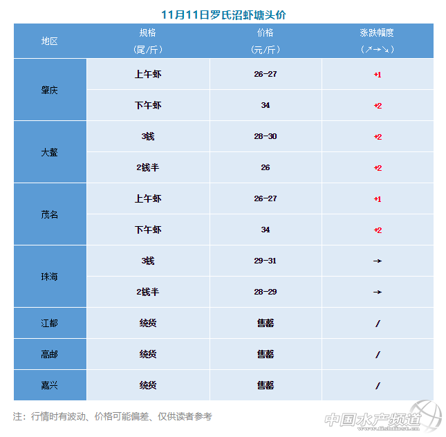 | 中國水產(chǎn)頻道原創(chuàng)報道, 本周羅氏沼蝦、斑節(jié)對蝦、日本對蝦行情報價 文/ 水產(chǎn)前沿 何鴻浩 本周行情 1、華東羅氏沼蝦無貨,華南地區(qū)價格上漲 本周華東地區(qū)的羅氏沼蝦已經(jīng)全部售罄,業(yè)者表示方圓五十里都沒有蝦了。華南各地區(qū)的羅氏沼蝦價格都出現(xiàn)了不同程度的增長。其中肇慶價格回升,但由于當(dāng)前市場病害嚴重,存塘量多。此外,珠海地區(qū)目前棚蝦階段價格都基本處于穩(wěn)定,業(yè)者預(yù)計到元旦價格會有所上升。 2、各地斑節(jié)對蝦交易量少,蝦農(nóng)瞄準(zhǔn)春節(jié) 斑節(jié)對蝦持續(xù)高漲,福建地區(qū)交易量基本沒有,存塘養(yǎng)殖戶表示扣棚過冬等候春節(jié)或元旦高價,但敢留蝦過冬的養(yǎng)殖戶仍是少數(shù)。海南地區(qū)由于氣候較合宜,具備越冬條件。但由于今年養(yǎng)殖不順,海南島內(nèi)斑節(jié)對蝦存塘較少,業(yè)者表示過年期間可能達到120-130元/斤的高價。海南島內(nèi)因為各區(qū)域養(yǎng)殖情況、養(yǎng)殖條件不同,價格會有所波動,但總歸大蝦有高價。 3、吳川日本對蝦開始極少量交易,1條1元 本周湛江吳川日本對蝦開始極少量交易,規(guī)格50-60條塘頭價60元/斤,但整體交易量仍然非常少。同時,有部分日本對蝦發(fā)病,養(yǎng)殖戶低價拋售,規(guī)格30-60條不等,最高出價20元/斤。當(dāng)前氣溫仍然較熱,蝦中收蝦風(fēng)險高,不敢收蝦。另外,目前北方市場暫無流通信息傳出。總的來說,養(yǎng)殖戶仍然看好后市,待價出手。 羅氏沼蝦 羅氏沼蝦 斑節(jié)對蝦 斑節(jié)對蝦 日本對蝦 日本對蝦,也稱花蝦 |