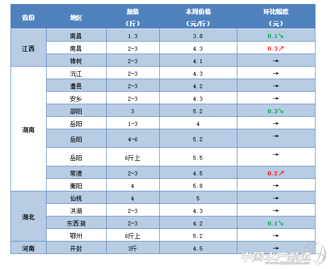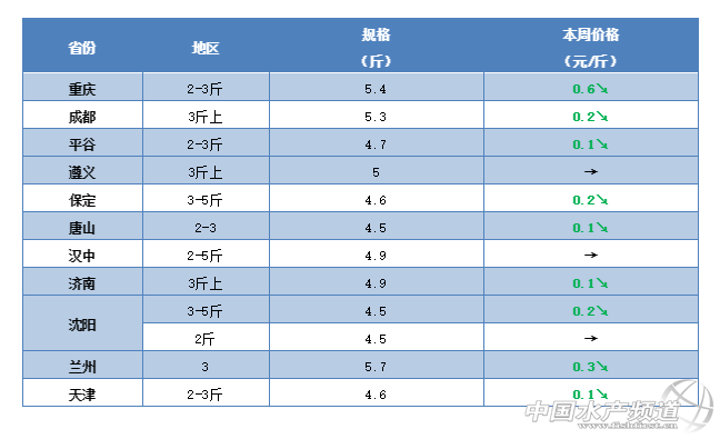 | 中國水產(chǎn)頻道原創(chuàng)報道, 淡水魚幾乎全線下滑,大批草魚被迫集中上市魚價全線下滑,最低賣3.8元/斤! 文/ 水產(chǎn)前沿 鄭鵬飛 日前,廣西來賓市忻城縣紅渡紅水河清理網(wǎng)箱(轉(zhuǎn)自:忻城家園) 一周要聞 據(jù)了解,目前北方養(yǎng)殖戶要趕在冰封前出魚導(dǎo)致了近期出魚的養(yǎng)殖戶較多;養(yǎng)殖戶面臨年底飼料回款壓力被迫賣魚,近期出魚相對比較集中;最近,山東微山湖以及廣西來賓、橫縣等地拆網(wǎng)箱也是導(dǎo)致近期很多魚大量集中上市。在拆網(wǎng)箱、年底飼料回款壓力、魚塘到期等諸多因素影響下,近期魚價整體行情都出現(xiàn)明顯下滑。有養(yǎng)殖戶表示,魚價行情就像現(xiàn)在的天氣一樣,拔涼拔涼的。 來賓市忻城縣紅渡紅水河清理網(wǎng)箱(轉(zhuǎn)自:忻城家園) 據(jù)了解,最近湖北武漢地區(qū)鱖魚和鱸魚全線下跌,昨天有魚中一車鱖魚虧了2萬多。目前,武漢白沙洲市場3-5斤的草魚都只賣到4.2元/斤,5-9斤的草魚賣5.1元/斤,2斤的標(biāo)草只有3.8元/斤,半斤以上的彭澤鯽賣5元/斤。湖北隨州地區(qū)3斤以上的草魚賣4.8元/斤,最高下滑0.7元/斤。目前廣東江門3斤的草魚塘頭賣4.6元/斤,最高下滑0.4元/斤;肇慶地區(qū)3斤左右的草魚最新塘頭價賣5元/斤,下滑0.3元/斤。河北唐山地區(qū)3斤的草魚最新塘頭價賣4.6元/斤,最低賣到4.4元/斤,7-8兩的鯽魚賣6元/斤。甘肅蘭州市場3斤以上的草魚上周最低價還可以賣到5.7元元/斤,目前最低價只賣到5元/斤。四川成都地區(qū)的批發(fā)市場受外地草魚沖擊,3斤的草魚賣5.3元/斤,下滑0.2元/斤;眉山地區(qū)3斤以上的草魚塘頭賣5.4元/斤,下滑0.2元/斤。遼寧沈陽地區(qū)3斤的草魚最新塘頭價賣4.5元/斤,下滑0.2元/斤。 廣東江門草魚出現(xiàn)上漲 福建閩江地區(qū)魚市情況 不過,有養(yǎng)殖戶反映最近江門部分地區(qū)3斤的草魚最新塘頭價賣到5.3元/斤,上漲0.3元/斤;湖南常德地區(qū)3斤的草魚最新報價4.4-4.5元/斤,上漲1-2毛錢;江西南昌部分地區(qū)3斤以上的草魚塘頭價賣到4.3元/斤,上漲0.3元/斤。受冷空氣影響,東北一些地區(qū)已經(jīng)開始冰封,明天吉林長春的最高氣溫也只有-2℃,最低氣溫降到-12℃。天氣越來越冷了,接下來草魚行情能否出現(xiàn)好轉(zhuǎn)呢?歡迎留言分享! 一周行情 華南地區(qū) 廣州:最近廣東的草魚市場受華中地區(qū)草魚沖擊比較嚴(yán)重,草魚行情暫時沒有出現(xiàn)好轉(zhuǎn),局部仍有小幅下滑。目前廣州番禺地區(qū)統(tǒng)鯇的塘頭價基本還是維持在4.5元/斤左右,基本維持上周水平。 中山:目前中山地區(qū)3斤的草魚最新塘頭價在4.5元/斤,局部地區(qū)相比上周有1-2毛錢的小幅上漲;部分養(yǎng)殖戶塘頭3斤的草魚可以賣到5.1元/斤。據(jù)了解,目前珠三角地區(qū)的最高氣溫還有27℃左右,明天廣州的最高溫甚至達(dá)到30℃。雖然冷空氣不斷南下,但是影響廣東還是不太明顯,這也導(dǎo)致了目前廣東脆肉鯇的出魚,大草魚的行情也是受到很大影響。養(yǎng)殖戶表示,草魚回暖只能等天氣真正冷下來才行。 江門:最近江門地區(qū)淡水魚行情整體出現(xiàn)下滑,目前3斤的草魚塘頭賣4.6元/斤,最高下滑0.4元/斤。不過,也有養(yǎng)殖戶反映江門部分地區(qū)3斤以上的草魚升了一點(diǎn)點(diǎn),最新塘頭價已經(jīng)可以賣到5.3元/斤,上漲0.3元/斤。 肇慶:本周肇慶地區(qū)的草魚行情相比之前也是出現(xiàn)了一定的下滑。目前3斤左右的草魚最新塘頭價賣5元/斤,較上周下滑0.3元/斤。 佛山:最近佛山地區(qū)的草魚行情基本還是保持穩(wěn)定。養(yǎng)殖戶表示,南海九江地區(qū)草魚統(tǒng)級魚的塘頭價基本還是維持在5.6元/斤,最近5斤以上的流通量比較大。 梅州:從業(yè)內(nèi)人士了解到,下個月很多養(yǎng)殖戶即將面臨回款,使得近期出現(xiàn)草魚出魚相對比較集中,價格也是呈現(xiàn)下滑趨勢。目前3斤左右的草魚最新塘頭價在5.2元/斤之間,下滑0.1元/斤。 廣西:據(jù)了解,在環(huán)保壓力下最近廣西橫縣地區(qū)拆網(wǎng)箱導(dǎo)致草魚大量上市,部分地區(qū)草魚塘頭價有下滑趨勢。從養(yǎng)殖戶了解到,目前金陵部分地區(qū)3斤以上的網(wǎng)箱草魚最新塘頭價5.8元/斤,較之前下滑0.2元/斤;桂林地區(qū)3斤左右的草魚塘頭賣5.2-5.3元/斤,貴港地區(qū)3斤的草魚最新塘頭價5.2元/斤,基本保持穩(wěn)定。 華中地區(qū) 湖南:本周湖南地區(qū)的草魚行情整體上還是低迷,不過局部地區(qū)塘頭價較上周出現(xiàn)了小幅上漲。從養(yǎng)殖戶了解到,目前常德地區(qū)3斤的草魚最新報價4.4-4.5元/斤,相比之前上漲1-2毛錢;岳陽地區(qū)3斤左右的草魚塘頭賣4元/斤,繼續(xù)維持原價;永州地區(qū)3斤以上的草魚塘頭賣5元/斤,養(yǎng)殖戶表示魚不好賣;邵陽地區(qū)3斤的草魚塘頭賣5.2元/斤,價格繼續(xù)保持穩(wěn)定。有養(yǎng)殖戶表示,自己養(yǎng)了100多畝水面,目前還有十幾萬斤魚沒有賣,行情一直不見起色,頭都大了。 湖北:本周湖北地區(qū)的草魚行情整體呈現(xiàn)下滑趨勢。有養(yǎng)殖戶表示,現(xiàn)在的魚價就像現(xiàn)在的天氣一樣,拔涼拔涼的,只有白鰱不愁賣,其他魚行情全線下跌。據(jù)養(yǎng)殖戶介紹,目前武漢白沙洲市場3-5斤的草魚買4.2元/斤,2斤的標(biāo)草賣3.8元/斤,5-9斤的草魚賣5.1元/斤,半斤以上的彭澤鯽賣5元/斤;最近鱖魚和