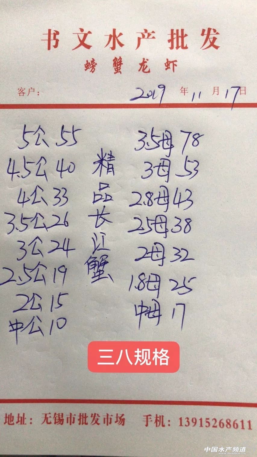 | 中國(guó)水產(chǎn)頻道原創(chuàng)報(bào)道, 高淳精品4母漲10元/斤。 蝦蟹行情每日播報(bào) 您身邊的行情顧問 歡迎關(guān)注蝦蟹前沿公眾號(hào)! 最新行情解析 高淳 近期高淳精品蟹價(jià)波動(dòng)較為明顯,15日大跌后,近兩天蟹價(jià)略有上漲。但與去年同期相比,目前蟹價(jià)明顯偏低。 今天高淳精品門市僅4母大漲10元/斤,其他規(guī)格蟹價(jià)未變。 興化 近期興化精挑蟹價(jià)整體呈U字型,自昨天上漲后,今天蟹價(jià)保持平穩(wěn),各規(guī)格精挑蟹價(jià)基本未變。同時(shí),今天興化市場(chǎng)指導(dǎo)價(jià)普挑、普貨價(jià)格均保持平穩(wěn)。 今日參考價(jià) 興化 高淳 此報(bào)價(jià)由江蘇好潤(rùn)固城湖店劉坤提供 泗洪 此報(bào)價(jià)由泗洪孫老板提供 無錫 此報(bào)價(jià)由無錫王老板提供 宣城 此報(bào)價(jià)由宣城劉老板提供 |