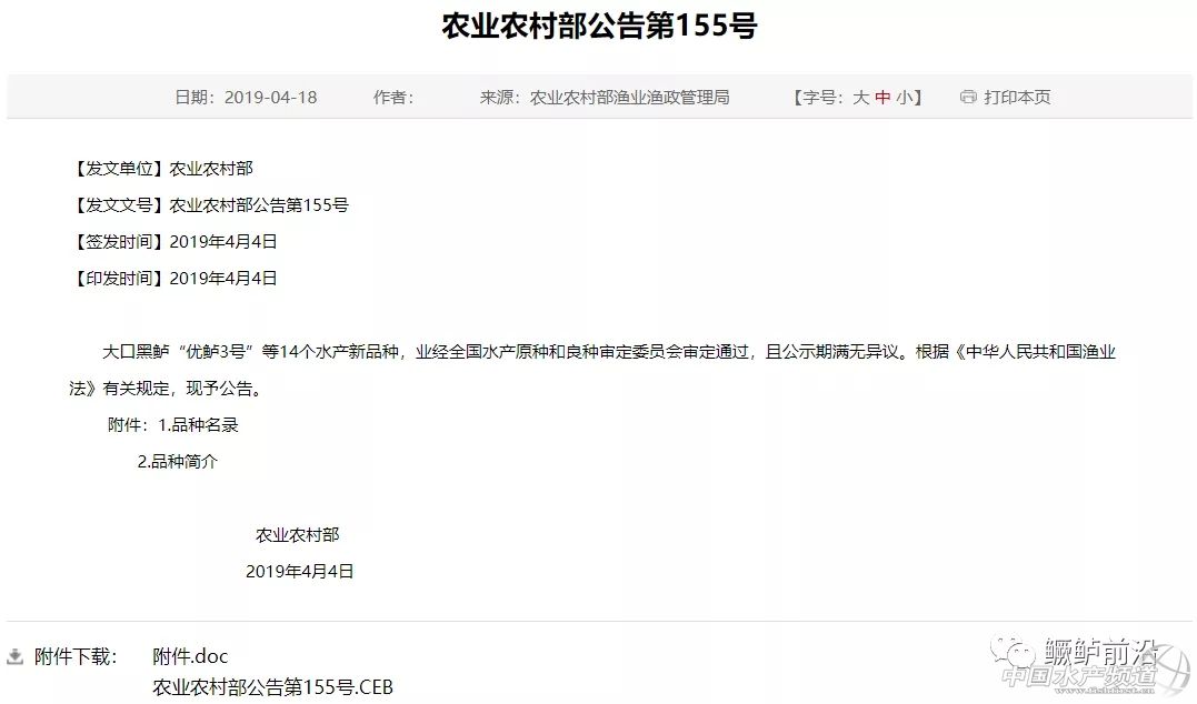 | 中國水產(chǎn)頻道原創(chuàng)報(bào)道, 目前大口黑鱸“優(yōu)鱸3號(hào)”仍未正式推向市場(chǎng),預(yù)計(jì)在不久的2020年即將上市 文/ 鱖鱸前沿 李曉欣 日前,筆者從廣東梁氏水產(chǎn)種業(yè)有限公司董事長(zhǎng)梁健輝獲悉,大口黑鱸“優(yōu)鱸3號(hào)”加盟企業(yè)已經(jīng)覆蓋廣東、江蘇、浙江、湖北、四川、重慶等省,具體名單包括:佛山市三水白金水產(chǎn)種苗有限公司、蘇州市未來水產(chǎn)養(yǎng)殖場(chǎng)、眉山偉繼水產(chǎn)種業(yè)科技有限公司、湖州湖旺水產(chǎn)種業(yè)有限公司、蘇州聚福水產(chǎn)有限公司、重慶市三峽生態(tài)漁業(yè)股份有限公司、監(jiān)利縣天瑞漁業(yè)科技發(fā)展有限公司共7家。 “目前已確定的加盟企業(yè)名單是這7家,先試運(yùn)行一下!睋(jù)梁健輝董事長(zhǎng)介紹,大口黑鱸“優(yōu)鱸3號(hào)”采用“特許加盟合作”推廣模式,只有加盟苗企才能繁殖和銷售種苗“優(yōu)鱸3號(hào)”。 2019年4月4日,農(nóng)業(yè)農(nóng)村部發(fā)布公告稱,大口黑鱸“優(yōu)鱸3號(hào)”等14個(gè)水產(chǎn)新品種經(jīng)全國水產(chǎn)原種和良種審定委員會(huì)審定通過。 品種名錄 此后,坊間關(guān)于大口黑鱸“優(yōu)鱸3號(hào)”何時(shí)上市及其正規(guī)購買渠道的關(guān)注和討論度都很熱烈,甚至還有一些不法商家打著“優(yōu)鱸3號(hào)”的名號(hào)在賣苗。然而,筆者從梁健輝董事長(zhǎng)了解到,目前大口黑鱸“優(yōu)鱸3號(hào)”仍未正式推向市場(chǎng)。 “大口黑鱸‘優(yōu)鱸3號(hào)’要到明年再一起推出,具體時(shí)間未定,不過很快了!绷航≥x董事長(zhǎng)說到。 關(guān)于大口黑鱸“優(yōu)鱸3號(hào)” 1、品種登記號(hào):GS—01—001—2018 2、親本來源:大口黑鱸“優(yōu)鱸1號(hào)”和大口黑鱸北方亞種引進(jìn)群體 3、育種單位:中國水產(chǎn)科學(xué)研究院珠江水產(chǎn)研究所、廣東梁氏水產(chǎn)種業(yè)有限公司、南京帥豐飼料有限公司 4、品種簡(jiǎn)介:該品種是以2012年從美國引進(jìn)的大口黑鱸北方亞種和大口黑鱸“優(yōu)鱸1號(hào)”群體中挑選出的1000尾個(gè)體為基礎(chǔ)群體,以生長(zhǎng)速度和易馴化攝食配合飼料為目標(biāo)性狀,采用群體選育技術(shù),經(jīng)連續(xù)4代選育而成。在相同養(yǎng)殖環(huán)境及投喂配合飼料條件下,與大口黑鱸“優(yōu)鱸1號(hào)”相比,10月齡生長(zhǎng)速度平均提高17.1%,15日齡幼魚馴食5天后的馴食成功率平均提高10.3%。適宜在全國各地人工可控的淡水水體中養(yǎng)殖。 |