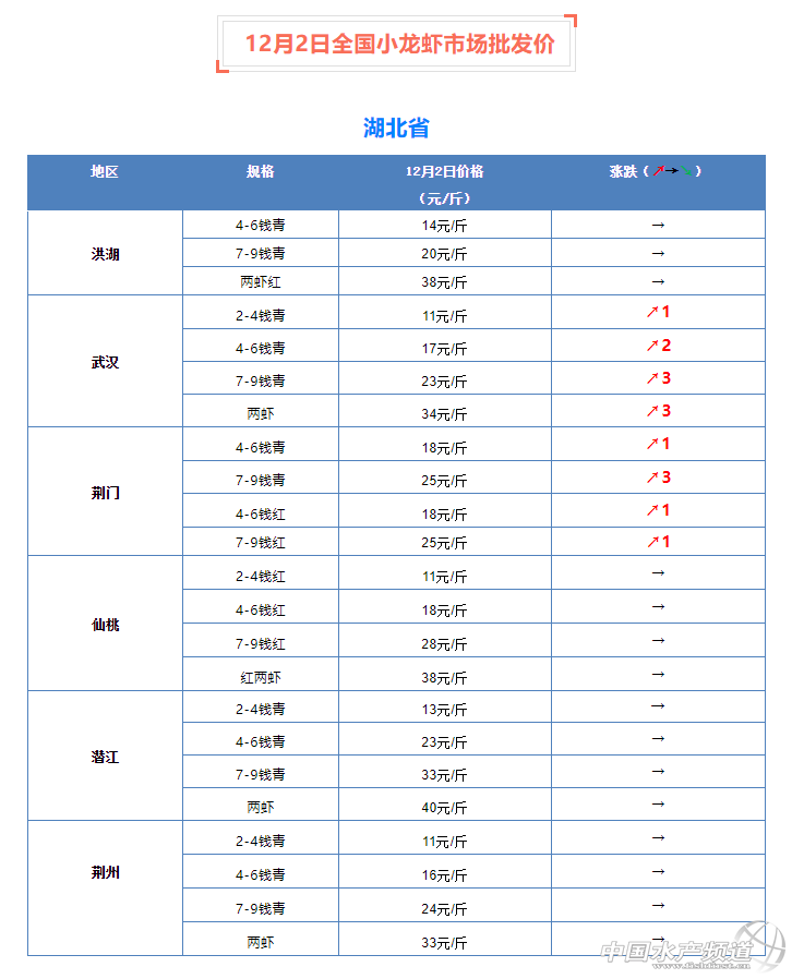12月2日全國小龍蝦市場批發(fā)價(jià)