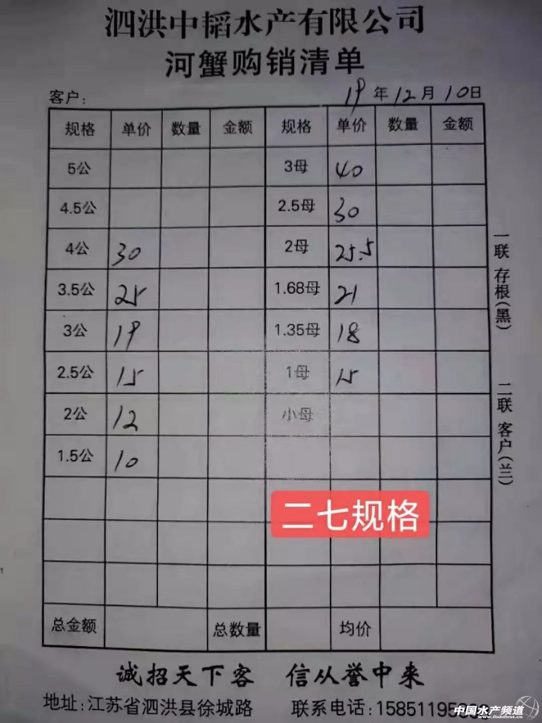 | 中國水產(chǎn)頻道原創(chuàng)報道, 最新河蟹行情解析 高淳 近期高淳精品蟹價整體呈下跌趨勢,近兩天蟹價保持平穩(wěn),今天各規(guī)格蟹價基本未變。與去年同期相比,目前蟹價明顯偏低。 興化 近期興化普蟹價格整體呈下跌趨勢,近3天蟹價連續(xù)小幅下跌。今天蟹價保持平穩(wěn),各規(guī)格蟹價基本未變。 今日河蟹參考價 興化 此報價由江蘇好潤馬家蕩店宋利坤提供 高淳 此報價由江蘇好潤固城湖店劉坤提供 泗洪 此報價由泗洪孫老板提供 無錫 此報價由無錫王老板提供 宣城 此報價由宣城劉老板提供 湖州 此報價由江蘇好潤漾西店井振提供 |