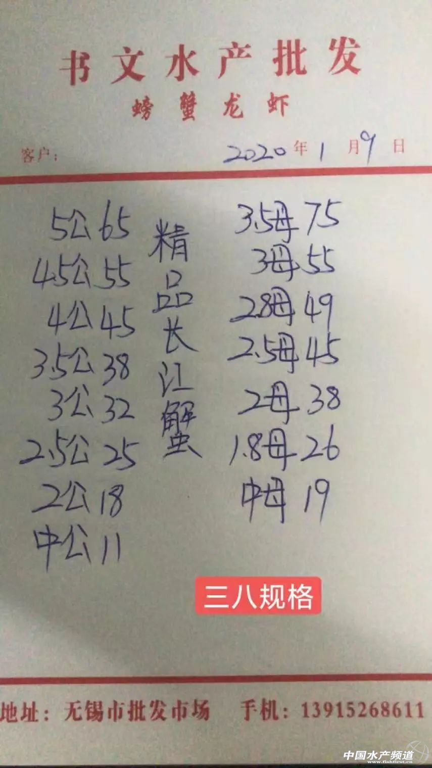 | 中國水產(chǎn)頻道原創(chuàng)報道, 蝦蟹行情每日播報 您身邊的行情顧問 歡迎關(guān)注蝦蟹前沿公眾號! 文|沈君 扣蟹參考價 高淳 水陽 盤錦 成蟹行情解析 高淳 近期高淳精品蟹價略有起伏,今天僅6公跌10元/斤,3.5公、2.5公均漲1元/斤,其他公蟹價格基本未變;母蟹方面,大規(guī)格母蟹價格未變,中小規(guī)格母蟹價格普遍上漲1元/斤。 興化 繼昨天興化普蟹價格上漲后,今天蟹價保持平穩(wěn),各規(guī)格蟹價基本未變。 成蟹參考價 高淳 此報價由高淳倪老板提供 興化 此報價由興化丁老板提供 泗洪 此報價由泗洪孫老板提供 泗洪 此報價由無錫王老板提供 |