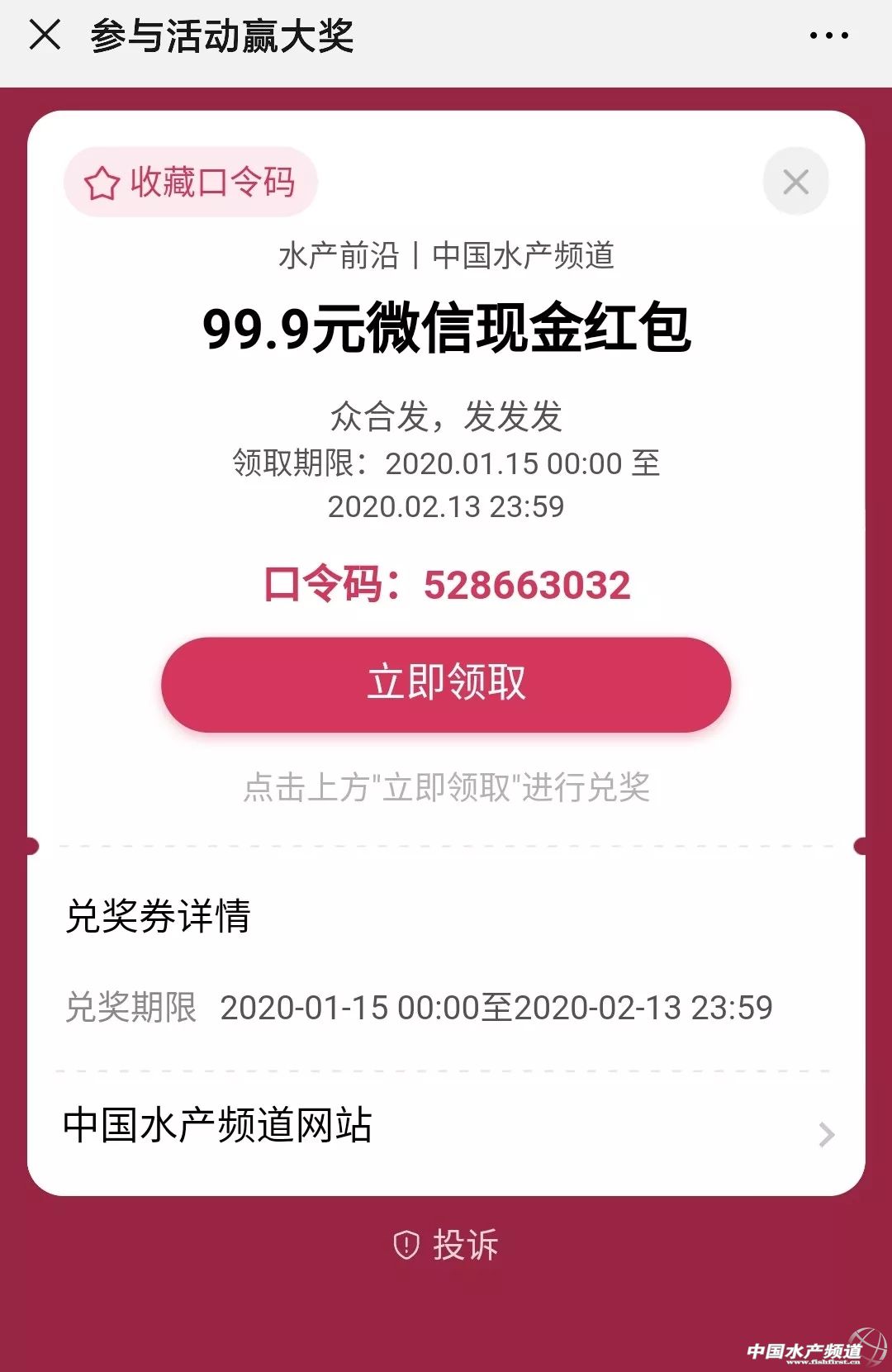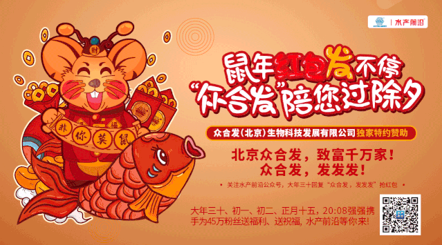 | 中國水產(chǎn)頻道獨家報道, 鐺鐺鐺 倒計時10天!鼠年鐘聲就要敲響 聞聞 空氣中已經(jīng)彌漫著紅包的味道了 沒錯 就是眾合發(fā)、就是好潤 是的 就在水產(chǎn)前沿——中國水產(chǎn)第一媒體 好運 45萬+粉絲福利多多、福氣多多 眾合發(fā),發(fā)發(fā)發(fā) 大年三十,眾合發(fā)攜手水產(chǎn)前沿 派數(shù)萬元紅包,陪您過除夕 鼠年紅,好潤好 大年初一,好潤攜手水產(chǎn)前沿 繼續(xù)狂灑紅包雨,最高99.9/個 2020 “鼠”不盡的魚蝦、“鼠”不盡的財富 ——非你莫“鼠” 咦,紅包呢? 讓它再飛一會 除夕、初一與您不見不散 水產(chǎn)前沿提前祝福 全球水產(chǎn)華人喜氣洋洋過大年! 活動時間 1月24日,大年三十除夕晚上8:08 1月25日,大年初一凌晨0:00 活動獎品 千萬祝!獢(shù)萬紅包!最大99.9元! 參與方式 第一步:長按識別下方二維碼關(guān)注“水產(chǎn)前沿”微信公眾號 第二步: 大年三十除夕晚上8:08后,消息對話框回復(fù)關(guān)鍵詞“眾合發(fā),發(fā)發(fā)發(fā)”,點擊鏈接進入游戲大抽獎 大年初一凌晨0:00后,消息對話框回復(fù)關(guān)鍵詞“鼠年紅,好潤紅”,點擊鏈接進入游戲大抽獎 第三步:中獎幸運兒根據(jù)提示領(lǐng)取紅包 點擊“立即領(lǐng)取”按鈕 再次點擊“立即領(lǐng)取”按鈕,領(lǐng)取紅包 注意!此處領(lǐng)取成功后,該微信紅包將通過微信支付通知推送領(lǐng)取消息,最后送到您的微信錢包! 【本活動最終解釋權(quán)歸水產(chǎn)前沿雜志、中國水產(chǎn)頻道所有】 活動支持媒體 敲黑板,劃重點!除了水產(chǎn)前沿公眾號,你還可以在工業(yè)化水產(chǎn)圈、鱖鱸前沿、農(nóng)牧前沿、蝦蟹前沿等優(yōu)秀公眾號上參與活動!紅包多多,歡樂多多!玩法規(guī)則同上。 好運轉(zhuǎn)轉(zhuǎn)來,紅包派不完! 數(shù)萬紅包,最高99.9元/個, 水產(chǎn)前沿等著您, 鼠年大吉! 據(jù)說,轉(zhuǎn)發(fā)此文章的人獲獎概率更大哦! |