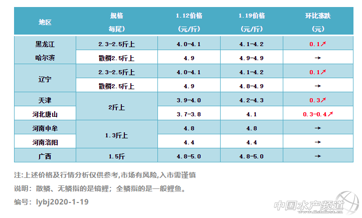 | 中國水產(chǎn)頻道原創(chuàng)報道, 供過于求,魚價漲也無太多空間 文/ 水產(chǎn)前沿 葉豐齊 代表產(chǎn)區(qū)鯉魚行情走勢 一周要聞 1.2019年下半年鯉魚行情非常不好,市場整體消費需求在下降,價格低養(yǎng)殖戶惜售,相較往年而言走魚量大大減少;目前存塘不少,但缺少水車?yán)~,將要過年了,漲價沒有太大的空間; 2.東北如今少有人用鯉魚置辦年貨,春節(jié)后出魚量才會快一些; 3.唐山鯉魚存塘量50%,天津則約40%; 4.2020年河南30%鯉魚養(yǎng)殖戶轉(zhuǎn)養(yǎng)其他品種; 5.廣西桂林地區(qū)仍存有較大量鯉魚,供當(dāng)?shù)厮岵缩庺~消費。 整體行情綜述 本周部分主產(chǎn)區(qū)鯉魚價格上調(diào);東北地區(qū)2.3-2.5斤以上規(guī)格全鱗鯉魚較上周回升0.1元/斤;河北唐山2斤以上規(guī)格鯉魚價格較上周上調(diào)0.3-0.4元/斤;天津2斤以上規(guī)格鯉魚較上周漲0.3元/斤;其他產(chǎn)區(qū)價格則與上周持平。 本周各地區(qū)鯉魚行情一覽 東北地區(qū):遼寧和黑龍江哈爾濱2.3-2.5斤以上規(guī)格鯉魚4.1-4.2元/斤,環(huán)比上周小漲0.1元/斤;兩地2.5斤以上規(guī)格散鱗鏡鯉約4.9元/斤,同上周行情;與去年相比,今年仍存塘許多沒有賣出去的鯉魚,業(yè)者表示散鱗鏡鯉尤其較去年同期多,時下使用鯉魚置辦年貨的消費群體甚小,供過于求,拉魚水車少;整體價格不理想,養(yǎng)戶普遍惜售,有養(yǎng)戶表示出魚量要在春節(jié)后才可能加快一些。 河北唐山和天津地區(qū):唐山2斤以上規(guī)格鯉魚4.1元/斤,環(huán)比上周上漲0.3-0.4元/斤;天津同規(guī)格鯉魚約4.2-4.3元/斤,環(huán)比上周上漲0.3元/斤;兩地鯉魚養(yǎng)殖規(guī)模相較以往已逐漸萎縮,但消費市場不好,行情低迷下,拉魚水車非常少,大部分鯉魚沒賣出去;據(jù)業(yè)者反映,唐山至少50%存魚量,而天津大約40%。 河南地區(qū):當(dāng)?shù)仵庺~消費疲軟,魚價依然持平;1.3斤以上規(guī)格鯉魚,鄭州中牟4.8元/斤,洛陽4.4元/斤,兩地皆保持上周行情;據(jù)業(yè)內(nèi)人士分析,這兩天鯉魚行情有抬頭的跡象,但受限于魚多水車少,實際價格還沒能漲起來;同時,業(yè)者還表示2020年河南鯉魚養(yǎng)殖量會進一步減少,至少30%鯉魚養(yǎng)殖戶轉(zhuǎn)養(yǎng)其他水產(chǎn)品種。 廣西地區(qū):1.5斤以上規(guī)格鯉魚4.8-5元/斤,保持上周價格;桂林地區(qū)仍存有較大量鯉魚,供當(dāng)?shù)厮岵缩庺~消費,但整體走量不快。 |