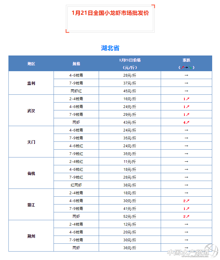 1月21日全國小龍蝦市場批發(fā)價(jià)
