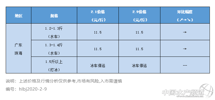 | 中國水產(chǎn)頻道原創(chuàng)報(bào)道, 投苗量已超5個(gè)億,受疫情影響,今年海鱸頭批魚充滿變數(shù) 文/ 水產(chǎn)前沿 陳曉慶 養(yǎng)好魚,更要賣好魚 全新海鱸魚行情解析 水產(chǎn)前沿與您相約每周六 一周要聞 1、海鱸企業(yè)心系抗疫一線,千里馳援保障后勤 珠海,是全國聞名的海鱸之都。為了讓抗戰(zhàn)在疫情一線的工作人員有充足、新鮮的水產(chǎn)品、蛋類及肉類供應(yīng),珠海海鱸企業(yè)積極響應(yīng),雪中送炭,助力湖北度過疫情難關(guān)。 “廣東省海鱸協(xié)會會長單位廣東強(qiáng)競農(nóng)業(yè)集團(tuán)計(jì)劃捐贈海鱸魚6噸,市值約25萬元!睆V東省海鱸魚協(xié)會秘書長王霄表示,協(xié)會會員單位也積極響應(yīng),其他物資捐贈數(shù)量正在統(tǒng)計(jì)中。會員企業(yè)珠海誠匯豐農(nóng)業(yè)科技有限公司已于2月7日發(fā)運(yùn)4噸鱸魚、美國紅魚加工產(chǎn)品到湖北黃岡市。 而除了捐贈的水產(chǎn)品,冷鏈物流運(yùn)輸保障也成了捐贈過程中急需解決的問題,了解到需求后,廣東強(qiáng)競農(nóng)業(yè)集團(tuán)積極響應(yīng)稱:“冷鏈運(yùn)輸車我們隨時(shí)有!” 2、珠海飼料供應(yīng)緊張 目前珠海料企未能正常供料,很多工人在外地?zé)o法回來,另一方面,部分運(yùn)輸飼料原料的外地車也無法進(jìn)入珠海,導(dǎo)致原料供應(yīng)緊張。但對于海鱸飼料供應(yīng)方面,珠海海龍表示暫時(shí)能夠滿足需求。 3、海鱸頭批魚存在著很大的變數(shù) 當(dāng)前珠海海鱸投苗量已經(jīng)超過5個(gè)億。今年上半年海鱸舊魚存塘量不算多,但受疫情影響,冰車開工時(shí)間仍然無法確定,水車只能走周邊市場,酒店餐飲消費(fèi)受阻,存塘魚流通緩慢,今年頭批魚行情存在著很大的變數(shù)。 圖片來自網(wǎng)絡(luò) 價(jià)格走勢 各地具體行情及價(jià)格 本周珠海海鱸流通量與上周相差不多,水車走貨量相比平時(shí)要減少60%左右,主要銷往臨近的珠三角市場。價(jià)格方面,1.4斤以下規(guī)格的海鱸有的開塘11.5元/斤、有的開11.2元/斤。 |