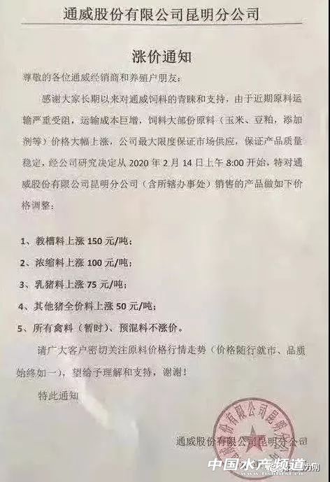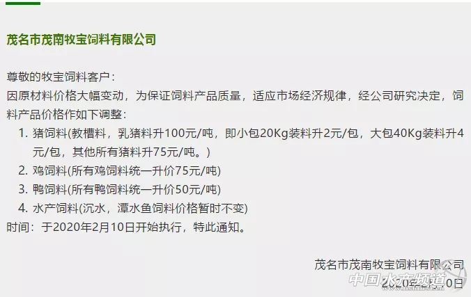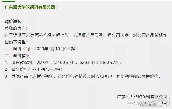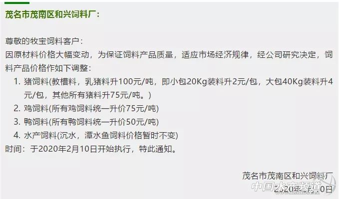 | 中國(guó)水產(chǎn)頻道報(bào)道, 1元/斤賤價(jià)的活雞,無(wú)數(shù)小雞鴨被活埋!受疫情影響,原料及運(yùn)輸成本暴漲,導(dǎo)致飼料最高暴漲250元/噸,但,這對(duì)養(yǎng)殖戶來(lái)說(shuō),真是雪上加霜! 玉米漲110元左右/噸! 豆粕漲300左右! 疫情等綜合情況下, 物流困難,運(yùn)費(fèi)看漲... 畜禽飼料終于忍不住全線暴漲 漲幅在50-250元/噸, 養(yǎng)殖戶面臨雪上加霜雙重打擊...... 隨著疫情逐漸得到控制,為了穩(wěn)產(chǎn)保供,維護(hù)養(yǎng)殖業(yè)生產(chǎn),大批飼料企業(yè)已經(jīng)開(kāi)始復(fù)工。農(nóng)業(yè)農(nóng)村部畜牧獸醫(yī)局副局長(zhǎng)孔亮9日在國(guó)務(wù)院聯(lián)防聯(lián)控機(jī)制新聞發(fā)布會(huì)上表示,全國(guó)飼料企業(yè)復(fù)工復(fù)產(chǎn)率明顯提升,已達(dá)到50%。廣東等一些飼料大省的企業(yè)復(fù)工率已在70%以上。 復(fù)工潮的來(lái)臨,一些問(wèn)題也暴露出來(lái),上游的原材料生產(chǎn)企業(yè)復(fù)工的較少,交通運(yùn)輸沒(méi)有全面開(kāi)放,飼料企業(yè)就算開(kāi)業(yè)也面臨著無(wú)法開(kāi)工的局面。 目前,飼料行業(yè)上游的原材料生產(chǎn)企業(yè)復(fù)工的較少,飼料生產(chǎn)用到的原材料幾十種,現(xiàn)在非常難獲取,原料價(jià)格在不斷的上漲。 原料價(jià)格方面,玉米每噸價(jià)格為2120-2140元左右,較節(jié)前每噸平均上漲150元左右,漲幅7%左右;麥麩每噸價(jià)格為1500-1600元左右,每噸大約上漲150-200元,漲幅10%左右,個(gè)別縣區(qū)漲幅超過(guò)15%;豆粕每噸在3050-3100元價(jià)位,較節(jié)前上漲約200-250元,上漲幅度大約6%-8%;草粉每噸約1100元,較節(jié)前上漲約150元,漲幅15%以上。 隨著上游企業(yè)的開(kāi)工,原料的問(wèn)題或許可以緩解,而交通運(yùn)輸方面存在困難卻最為致命。近期由于新型冠狀病毒的影響,多處運(yùn)輸?shù)缆贩忾],運(yùn)費(fèi)增加;同時(shí)存在運(yùn)輸人員不愿開(kāi)工、車輛不好找的情況,也是導(dǎo)致運(yùn)費(fèi)上漲的因素。 據(jù)統(tǒng)計(jì),豬、禽飼料的價(jià)格已經(jīng)開(kāi)始上漲。山東臨沂市發(fā)改委價(jià)格監(jiān)測(cè)中心消息,大豬飼料,年前每噸價(jià)格為2500-2950元,目前每噸價(jià)格在2550-3000元左右,每噸漲50元左右,漲幅1.69%;小豬飼料,年前每噸價(jià)位約5300-5500元,目前價(jià)位為5400-5600元,每噸漲100元,漲幅1.89%。 禽料方面,主要是雞飼料和鴨飼料。沂南調(diào)查鴨飼料年前每噸2580元,現(xiàn)在上漲至2640元,每噸漲60元左右,漲幅為2.33%;雞飼料年前每噸2850-2860元,現(xiàn)在每噸2950元左右,每噸近100元,漲幅為3.5%左右。 豆粕還會(huì)漲 迫于原料及運(yùn)輸成本大幅暴漲,近日,多家飼料企業(yè)紛紛發(fā)布漲價(jià)通知,包括:新希望、海大、通威、大北農(nóng)、雙胞胎、南寶、揚(yáng)翔、傲農(nóng)、安佑等。 應(yīng)該說(shuō),現(xiàn)在漲價(jià)的罪魁禍?zhǔn)资恰靶鹿诓《尽!目前,漲價(jià)的只是畜禽飼料,水產(chǎn)料并沒(méi)有漲價(jià)。對(duì)于新一年的養(yǎng)殖季,水產(chǎn)料漲跌動(dòng)向如何,你怎么看? |