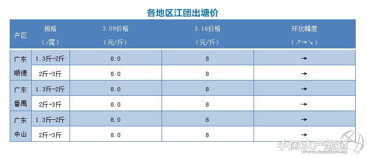 | 中國水產(chǎn)頻道原創(chuàng)報道, 文/圖 何氏水產(chǎn)、水產(chǎn)前沿 李靜 江團 1、本周廣東江團市場行情比上周稍有好轉,北線市場部分開通,銷量有所上升,不過還是以抓大魚為主。現(xiàn)在開塘價保持穩(wěn)定,中小魚價格有8.0元/斤,大魚價格7元/斤。江團銷量總體還是不會太大,價格暫時也沒有上升空間。 2、四川江團疫情有所好轉,市場行情較之前好,現(xiàn)在出塘量也多了一些,價格也在8.5元/斤左右,接下來價格不會有太大改變,銷量會慢慢上升。 |