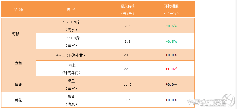 海水特種魚:海鱸下滑,立魚上漲