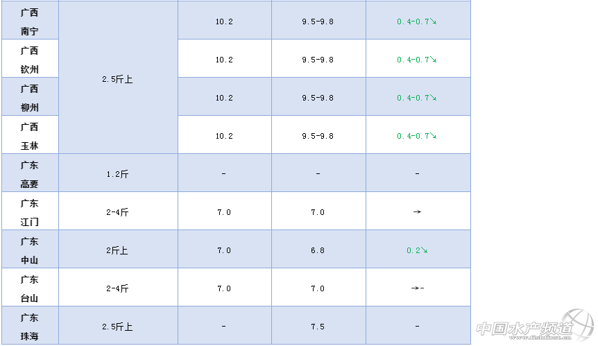 文/ 水產(chǎn)前沿 葉豐齊 2020鮰魚行情走勢 一周要聞 中國水產(chǎn)頻道原創(chuàng)報道,隨著國內(nèi)疫情影響漸消,餐飲業(yè)逐步恢復,有業(yè)內(nèi)人士表示鮰魚已重新啟動消費,但要達到年前旺盛的供求市場至少還要到五月份。 出口方面,據(jù)廠方人士反映,目前還沒有受到影響,但之后很有可能!懊绹咔闀铀俾,即使美國聯(lián)邦不采取措施,各州也會自行采取管控措施,尤其加州和紐約州,餐館停業(yè)、部分超市停業(yè),從中國水產(chǎn)采購會有所減少。” 他如是表示。 這段時間,湖北地區(qū)仍有較大量鮰魚壓塘,當?shù)鼗緵]消費,主要依靠外銷全國各地。有湖北業(yè)者表示,從塘頭到水產(chǎn)批發(fā)市場的流通雖已恢復,但暫時還沒有外省水車來拉魚,因此行情受到了影響。 據(jù)悉,湖北大部分舊魚已于年前出售,當前存塘魚規(guī)格并不是特別大,養(yǎng)殖戶等得起,不愿意低價出魚,正處于觀望狀態(tài)。 因為越冬后鮰魚掉膘,現(xiàn)在正是投喂補膘的時機,養(yǎng)戶一般不著急銷售,除非資金很緊,或是規(guī)格太大,或是發(fā)病影響;有的塘口鮰魚發(fā)生水霉病等情況急需出塘。 3-4月期間是鮰魚發(fā)病高峰,特別是越冬后機體較弱的,若出現(xiàn)腸炎、腸套疊等疾病非常容易致死,養(yǎng)戶在池塘管理上需要特別注意,做好水質(zhì)調(diào)理,控制投喂量不要太高。 另外,有些產(chǎn)區(qū)目前積壓的魚規(guī)格漸大,養(yǎng)戶害怕虧本著急出魚,但最走量的加工廠優(yōu)先從合作方處收購,在市場需求較小的情況下,出現(xiàn)小魚中壓價的現(xiàn)象。 有業(yè)者表示,養(yǎng)殖戶主動與加工廠建立長期合作機制非常關鍵,通過此次疫情,信用良好的龍頭企業(yè)將尤顯珍貴,也會在今后產(chǎn)、加、銷鏈條里凸現(xiàn)最核心的功能。 后期各地餐飲需求量回升后,鮰魚行情有機會上漲,但仍然有集中上市的市場壓力,養(yǎng)戶宜合理安排出魚時間,分批銷售,錯開高峰。 整體行情綜述 本周部分產(chǎn)區(qū)鮰魚行情繼續(xù)下行,一地漲價;河南2斤規(guī)格黑鮰較上周上調(diào)0.5元/斤;江蘇鹽城2.2-3.2斤(平均2.5-2.6斤)規(guī)格較上周下調(diào)0.3元/斤,3.2-3.8斤(平均3.5-3.6斤)規(guī)格較上周下調(diào)0.2元/斤;廣西2.5斤以上規(guī)格較上周下調(diào)0.4-0.7元/斤;廣東中山2斤上規(guī)格較上周下跌0.2元/斤,1.3斤上統(tǒng)貨較上周下調(diào)0.3元/斤;珠海出2.5斤以上規(guī)格7.5元/斤,2斤規(guī)格較上周下調(diào)0.2元/斤。其他地區(qū)行情與上周持平。 各產(chǎn)地行情分析 河南地區(qū):2斤左右規(guī)格紅鮰7.8元/斤,同上周;黑鮰8.8元/斤,環(huán)比上周上調(diào)0.5元/斤;業(yè)者表示外地水車陸續(xù)到河南拉魚,目前比本地水車更多,鮰魚剛開始走量,銷量暫時還未起來。 湖北地區(qū):鮰魚存塘量近50%的仙桃市目前已恢復正常出魚,但當?shù)嘏l(fā)市場基本還沒有外省水車,需求量小行情也不好,加上舊魚已經(jīng)賣得七七八八了,現(xiàn)在存塘規(guī)格魚還不算特別大,本地養(yǎng)殖戶普遍惜售;1.5斤上規(guī)格紅鮰7元/斤,1.8斤以上規(guī)格黑鮰7.5元/斤,同上周價格;荊州開放的菜市場非常有限,本地消費極少;對于供應河南、陜西、甘肅、重慶、四川等地,業(yè)者反映最近兩天才恢復出魚,量還不大,僅比解封前好一些,銷量遠不及去年同期;1.2-2斤規(guī)格黑鮰塘頭價6.3元/斤,2斤以上規(guī)格7.7元/斤。 安徽地區(qū):巢湖地區(qū)加工企業(yè)目前接近滿負荷生產(chǎn),每天收購加工鮰魚60000斤,1-2斤規(guī)格到廠收購價7元/斤,2-3斤規(guī)格8.7元/斤,與上周價格持平(到廠價較當?shù)靥令^價高0.2元/斤,較外地塘頭價高0.5-0.7元/斤)。 江蘇地區(qū):根據(jù)消費市場,鹽城黑鮰有3種規(guī)格:走成都市場的0.8-1.3斤規(guī)格今年基本沒有出貨;走北京、山東市場的2.2-3.2斤(平均2.5-2.6斤)規(guī)格鮰魚約8.5元/斤,環(huán)比上周下調(diào)0.3元/斤;走甘肅、新疆、西藏、廣西的3.2-3.8斤(平均3.5-3.6斤)規(guī)格8.3元/斤,環(huán)比上周下調(diào)0.2元/斤;因北京訂單目前還不能完成,少量貨源依然發(fā)往東北遼寧;大豐東臺還存塘近1200萬斤,目前出魚的基本上是散戶,大戶還在觀望。 四川地區(qū):烤魚、火鍋餐飲陸續(xù)恢復營業(yè),鮰魚消費需求增加,本地養(yǎng)殖戶出魚量開始加大,樂山1.5斤以上規(guī)格黑鮰9元/斤,暫時保持上周行情。 廣西地區(qū):目前以本地消費為主,基本沒有外地水車抓魚;本地市場主要需求2斤以下規(guī)格魚,1.5斤左右規(guī)格8元/斤,環(huán)比上周下調(diào)0.3元/斤;而2.5斤以上較大規(guī)格需求減少,約9.5-9.8元/斤,環(huán)比上周下調(diào)0.4-0.7元/斤。 廣東地區(qū):中山地區(qū)2斤以上規(guī)格鮰魚6.8元/斤,環(huán)比上周下跌0.2元/斤;1.3斤起統(tǒng)貨6元/斤,環(huán)比上周下調(diào)0.3元/斤;江門0.8斤規(guī)格6.3元/斤,1.2斤規(guī)格6.6元/斤,2斤上規(guī)格7元/斤,皆同上周行情;臺山1.3-3.5斤規(guī)格6.6元/斤,2斤上規(guī)格7元/斤,同上周;珠海養(yǎng)戶優(yōu)先出掉較大規(guī)格存塘魚,2.5斤以上規(guī)格7.5元/斤;2斤規(guī)格的有魚中喊價6.8元/斤,環(huán)比上周下調(diào)0.2元/斤;養(yǎng)殖戶表示目前來抓魚的水車很多,省內(nèi)外都有,因為有些小魚中壓價厲害,基本只會和大魚中合作。 鮰魚報價 編號:hybj2020-3-28 說明:塘頭價