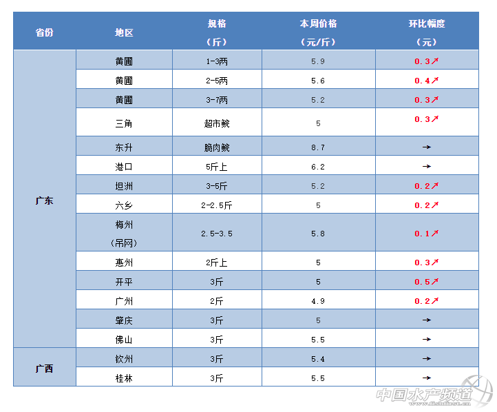 | 中國(guó)水產(chǎn)頻道原創(chuàng)報(bào)道, 存塘草魚已不夠賣,魚車排隊(duì)等魚,3斤的草魚在福建閩江地區(qū)最高可以賣到6.8元/斤,上漲0.4元/斤;江蘇淮安賣到5.5元/斤,上漲0.5元/斤;遼寧沈陽(yáng)賣到5.8-6元/斤,上漲0.5-0.7元/斤;江西樟樹賣到5.6元/斤,20天暴漲1.1元/斤,養(yǎng)殖戶終于等到春天! 文/ 水產(chǎn)前沿 鄭鵬飛 一周要聞 魚價(jià)大漲,養(yǎng)殖戶要雄起 好消息,草魚行情出現(xiàn)全線飄紅,多地3斤的草魚塘頭價(jià)漲到突破6元/斤。 據(jù)了解,隨著存塘魚的不斷消耗,目前很多地區(qū)的草魚已經(jīng)不夠賣,魚車開始排隊(duì)等魚。本周多地草魚行情出現(xiàn)大幅上漲,養(yǎng)殖戶的春天終于到了。從養(yǎng)殖戶和流通商了解到,目前廣東中山地區(qū)1-3兩的草魚苗塘頭價(jià)已經(jīng)賣到5.9元/斤,上漲0.3元/斤;3斤的草魚塘頭賣到5.2元/斤,上漲0.2元/斤。廣西貴港地區(qū)3斤的草魚可以賣到5.6元/斤,3斤的大頭賣到5.8元/斤。 草鯽價(jià)格大漲,湖北搶魚搶瘋了 最近幾天,湖北武漢白沙洲市場(chǎng)都出現(xiàn)嚴(yán)重缺魚現(xiàn)象,魚車排隊(duì)等魚。據(jù)業(yè)內(nèi)人士介紹,目前很多地區(qū)的存塘魚已經(jīng)基本消化完了,流通商在塘頭基本無(wú)魚可抓了,存塘魚嚴(yán)重不足。目前湖北洪湖地區(qū)3斤的草魚塘頭賣5元/斤,上漲0.3元/斤。湖南長(zhǎng)沙,常德等地區(qū)3斤的草魚已經(jīng)可以賣到5.5元/斤,上漲0.5元/斤。最近江西地區(qū)也是大批魚車塘頭排隊(duì)搶魚,草魚一天一個(gè)價(jià)。目前南昌地區(qū)3斤的草魚塘頭賣5.4元/斤,上漲0.3元/斤;樟樹地區(qū)3斤以下的草魚塘頭賣5.3元/斤,3斤以上的賣5.6元/斤,20天暴漲1.1元/斤。 終于搶手,中山3斤上草魚賣5.1元/斤 吉林長(zhǎng)春草魚突破6元大關(guān) 遼寧沈陽(yáng)3斤草魚突破6元/斤,漲0.7元/斤 湖南永州3斤草魚突破6元/斤 福建閩江草魚賣到6.8元/斤,漲0.4元/斤 據(jù)了解,目前福建閩江地區(qū)3斤的草魚最高可以賣到6.8元/斤,上漲0.4元/斤;江蘇淮安可以賣5.5元/斤,上漲了0.5元/斤;遼寧沈陽(yáng)地區(qū)最新塘頭價(jià)賣5.8-6元/斤,上漲0.5-0.7元/斤;甘肅蘭州市場(chǎng)新報(bào)價(jià)6.5元/斤,上漲0.7-0.8元/斤。 養(yǎng)殖戶表示,常規(guī)魚養(yǎng)殖終于等到春天。 行情分析 華南地區(qū) 本周華南地區(qū)的草魚行情也是再次出現(xiàn)上漲勢(shì)頭,尤其珠三角地區(qū)的草魚苗種上漲明顯,目前1-3兩的草魚苗塘頭價(jià)已經(jīng)賣到5.9元/斤,上漲0.3元/斤。 中山:本周中山地區(qū)的草魚行情整體向好。據(jù)了解,目前黃圃地區(qū)草魚苗種較上周整體上漲0.3-0.4元/斤。而且成魚也是呈現(xiàn)上漲勢(shì)頭,從流通商了解到目前3斤的草魚最新塘頭價(jià)賣到5.2元/斤,上漲0.2元/斤。 梅州:目前梅州地區(qū)3斤的草魚最新塘頭價(jià)賣5.8-6元/斤,局部地區(qū)有0.2元/斤的上漲。業(yè)內(nèi)人士表示,目前當(dāng)?shù)氐牟蒴~行情基本保持穩(wěn)定。 廣西:目前廣西地區(qū)的草魚塘頭價(jià)基本維持在上周水平,部分地區(qū)也是出現(xiàn)上漲勢(shì)頭。從養(yǎng)殖戶了解到,目前貴港地區(qū)3斤的草魚已經(jīng)可以賣到5.6元/斤,3斤的大頭賣到5.8元/斤。目前武宣地區(qū)3斤的草魚最新塘頭價(jià)賣6.3元/斤,桂林地區(qū)還是繼續(xù)在5.5元/斤,暫時(shí)沒有明顯變化。 華中地區(qū) 本周華中地區(qū)淡水魚行情終于迎來(lái)春天,多個(gè)地區(qū)和品種價(jià)格上漲明顯,部分地區(qū)3斤的草魚塘頭已經(jīng)賣到5.6元/斤,近20天漲幅超過(guò)1元/斤。 江西:本周江西地區(qū)的草魚行情也是終于出現(xiàn)上漲,大批魚車塘頭排隊(duì)搶魚。據(jù)養(yǎng)殖戶介紹,目前南昌地區(qū)3斤的草魚塘頭賣5.4元/斤,上漲0.3元/斤;樟樹地區(qū)3斤以下的草魚塘頭賣5.3元/斤,3斤以上的賣5.6元/斤,相比3月底的4.5元/斤最高漲1.1元/斤,這幾天草魚更是一天一個(gè)價(jià)。 湖北:本周湖北地區(qū)的草魚行情再次出現(xiàn)大漲。從流通商了解到,連續(xù)幾天武漢白沙洲市場(chǎng)都出現(xiàn)缺魚現(xiàn)象,魚車排隊(duì)等魚。有養(yǎng)殖戶表示,目前湖北很多地區(qū)的存塘魚已經(jīng)基本消化完了,塘頭已經(jīng)基本無(wú)魚可抓了,接下來(lái)存塘魚將會(huì)嚴(yán)重不足。據(jù)了解,目前洪湖地區(qū)3斤的草魚塘頭賣5元/斤,較上周上漲后了0.3元/斤;仙桃地區(qū)草魚塘頭價(jià)也是有明顯上漲。目前隨州地區(qū)草魚價(jià)格還是沒有明顯變化,目前3斤的草魚還是維持在4.5元/斤。 湖南:本周湖南地區(qū)的草魚行情開始出現(xiàn)明顯上漲。據(jù)養(yǎng)殖戶介紹,目前長(zhǎng)沙地區(qū)3斤的草魚賣5.3元/斤左右,最高已經(jīng)賣到5.5元/斤。目前常德地區(qū)存塘草魚已經(jīng)不多,最近草魚也是開啟了上漲模式,3斤的草魚塘頭可以賣到5.5元/斤,較之前上漲0.5元/斤。目前永州地區(qū)3斤的草魚已經(jīng)賣到6元/斤,大頭賣到5.5元/斤。養(yǎng)殖戶表示,常規(guī)魚養(yǎng)殖終于等到春天。 華東地區(qū) 福建:本周福建地區(qū)的草魚行情再次出現(xiàn)明顯的上漲勢(shì)頭。據(jù)養(yǎng)殖戶介紹,目前閩江地區(qū)3斤的草魚塘頭價(jià)在6.5元/斤左右,最高可以賣到6.8元/斤,較上周上漲0.4元/斤。目前三明地區(qū)3斤的草魚也已經(jīng)可以賣到6.4元/斤,行情繼續(xù)保持上漲