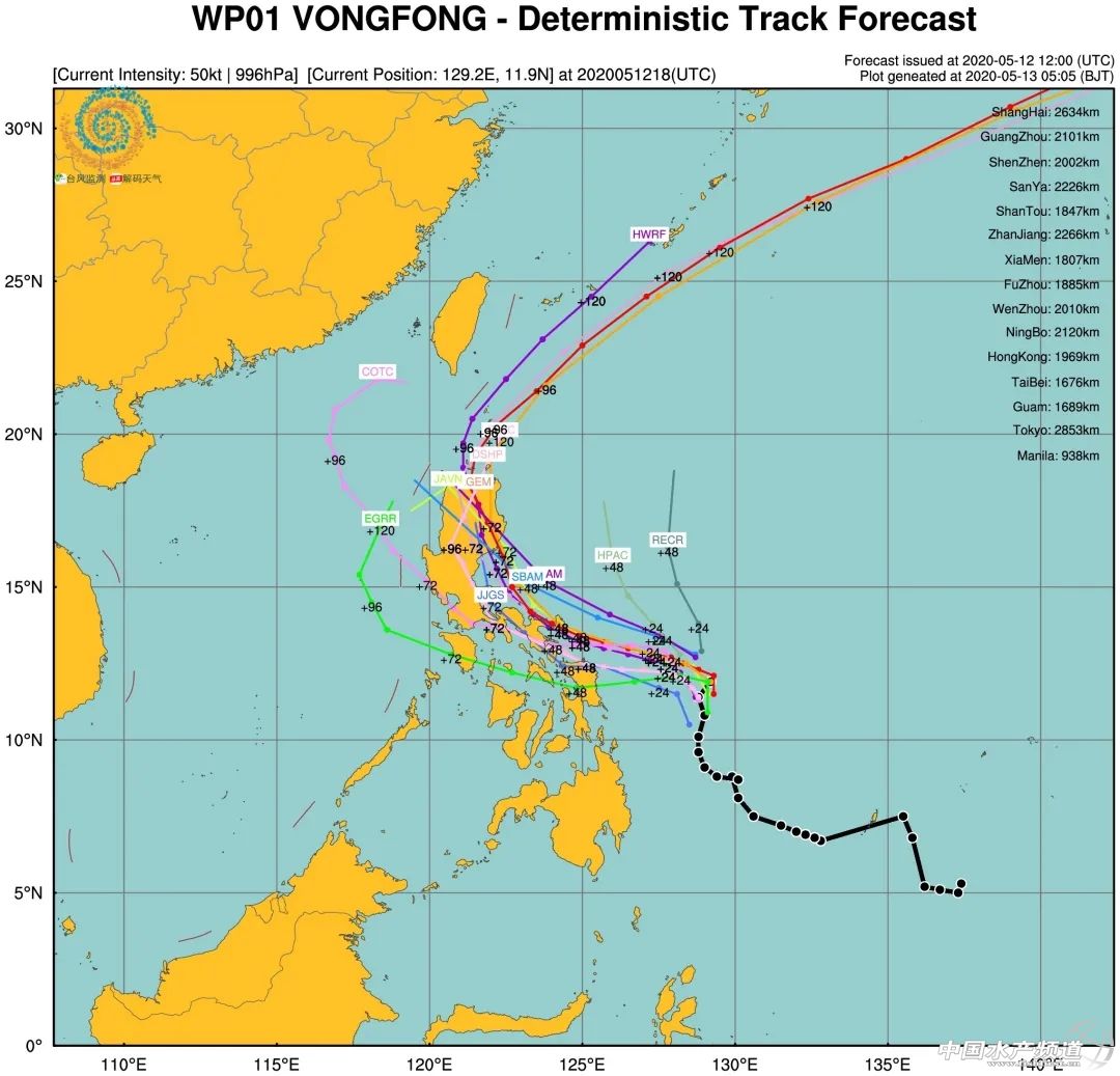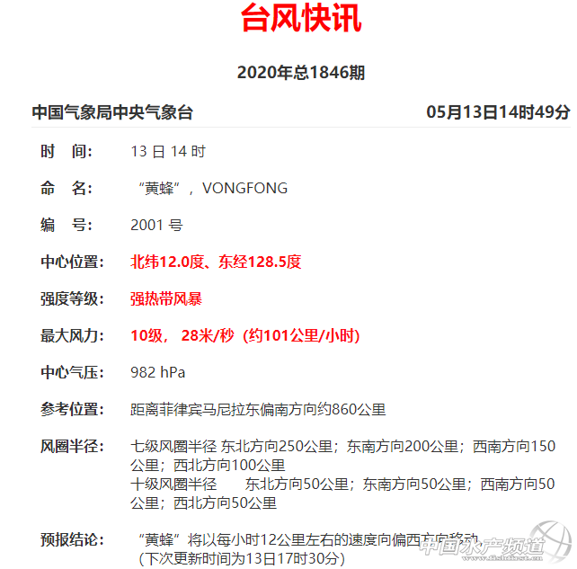 | 中國(guó)水產(chǎn)頻道綜合報(bào)道, 廣東、廣西、福建、浙江魚蝦塘臺(tái)風(fēng)警報(bào)緊急拉響!華南龍舟水、華東雨季即將全面爆發(fā)! 緊急關(guān)注! 2020年臺(tái)風(fēng)季大幕正式拉開, 首個(gè)臺(tái)風(fēng)“黃蜂”生成! 最強(qiáng)將達(dá)13級(jí) 廣東、福建、臺(tái)灣或先“吃下沉” 華南龍舟水、華東梅雨季即將爆發(fā)! 廣東、廣西、福建、浙江、臺(tái)灣 可能遭今年最強(qiáng)暴雨襲擊! 2020年首個(gè)臺(tái)風(fēng)“黃蜂”已正式生成,最強(qiáng)13級(jí) 2020年首個(gè)臺(tái)風(fēng)“黃蜂”(熱帶風(fēng)暴級(jí))已于昨晚生成,預(yù)計(jì),“黃蜂”強(qiáng)度將逐漸增強(qiáng),最強(qiáng)可達(dá)臺(tái)風(fēng)級(jí)。 中央氣象臺(tái)的預(yù)測(cè)認(rèn)為,臺(tái)風(fēng)黃蜂未來將持續(xù)向西北方向移動(dòng),逐漸向菲律賓群島靠近,由于目前臺(tái)風(fēng)黃蜂發(fā)展相當(dāng)順利,中央氣象臺(tái)認(rèn)為未來臺(tái)風(fēng)黃蜂的強(qiáng)度還將繼續(xù)加強(qiáng)。從目前來看,到5月14日上午可能就將達(dá)到臺(tái)風(fēng)級(jí),而5月14日晚還能達(dá)到13級(jí)風(fēng)力。但從路徑預(yù)測(cè)上也能看到,臺(tái)風(fēng)黃蜂在快速增強(qiáng)后將以巔峰強(qiáng)度登陸菲律賓,并且可能橫掃菲律賓群島中北部。 今年第1號(hào)臺(tái)風(fēng)“黃蜂”今天(13日)上午8點(diǎn)鐘(北京時(shí),下同)由熱帶風(fēng)暴級(jí)加強(qiáng)為強(qiáng)熱帶風(fēng)暴級(jí),上午8點(diǎn)鐘其中心位于菲律賓馬尼拉東偏南方約910公里的洋面上,就是北緯11.9度、東經(jīng)128.9度,中心附近最大風(fēng)力10級(jí)(25米/秒),中心最低氣壓985百帕,七級(jí)風(fēng)圈半徑100-250公里。 黃蜂出現(xiàn)“臺(tái)風(fēng)眼”,正在不斷增強(qiáng) 從衛(wèi)星云圖上看,它正位于菲律賓以東洋面,結(jié)構(gòu)小巧緊湊,已經(jīng)發(fā)展出一個(gè)比較密集的核心區(qū),這是它明顯增強(qiáng)的表現(xiàn)。 中央氣象臺(tái)認(rèn)為它目前已經(jīng)是10級(jí)的強(qiáng)熱帶風(fēng)暴。 從目前來看,由于其所在的位置海水能量充沛,大氣環(huán)流條件適合,它還將繼續(xù)增強(qiáng)。 今天上午,臺(tái)風(fēng)黃蜂中心一度出現(xiàn)朦朧的臺(tái)風(fēng)眼,這是它開始趨于成熟的標(biāo)志,意味著臺(tái)風(fēng)黃蜂可能開始朝著更高強(qiáng)度邁進(jìn)。 接下來,它將一邊增強(qiáng)一邊靠近菲律賓群島,對(duì)于菲律賓群島而言1號(hào)臺(tái)風(fēng)黃蜂是個(gè)不容忽略的威脅。 未來兩天“黃蜂”對(duì)我國(guó)海區(qū)無影響 預(yù)計(jì),“黃蜂”將以每小時(shí)10-15公里的速度向西北方向移動(dòng)并逐漸向菲律賓東部沿?拷,強(qiáng)度繼續(xù)增強(qiáng),將于15日前后登陸菲律賓呂宋島,爾后轉(zhuǎn)向東北方向移動(dòng),并將在臺(tái)灣島以東洋面減弱消失。未來兩天“黃蜂”對(duì)我國(guó)海域無影響。 從衛(wèi)星云圖可見,生成前后的黃蜂,已有非常明確的核心云團(tuán),強(qiáng)烈對(duì)流圍繞中心旋轉(zhuǎn)、翻滾。 葵花-8號(hào)衛(wèi)星監(jiān)測(cè)到的“黃蜂”動(dòng)態(tài)云圖(時(shí)間段:2020年5月13日01時(shí)00分至5月13日08時(shí)00分)來自:臺(tái)風(fēng)監(jiān)測(cè) “黃蜂”可能直接影響我國(guó)臺(tái)灣島 “黃蜂”有直接影響我國(guó)臺(tái)灣島的可能性,同時(shí)它在巴士海峽附近轉(zhuǎn)向的過程中北側(cè)的臺(tái)風(fēng)倒槽會(huì)影響到福建、浙江南部和廣東東部沿海。 各個(gè)預(yù)報(bào)方法預(yù)測(cè)的1號(hào)臺(tái)風(fēng)“黃蜂”幾天內(nèi)移動(dòng)路徑 據(jù)官方預(yù)報(bào),受副熱帶高壓和黃蜂臺(tái)風(fēng)下沉氣流影響,5月17日之前廣州將出現(xiàn)桑拿天,來自NMC 廣東、廣西、福建、浙江、臺(tái)灣或迎來今年最強(qiáng)暴雨 而到5月17日以后,隨著黃蜂的轉(zhuǎn)向、副高的東退,西南季風(fēng)將在南海全面爆發(fā),華南龍舟水、福建、浙江雨季、臺(tái)灣梅雨隨即開始。5月18日前后,廣東、廣西、福建、臺(tái)灣都可能迎來今年最強(qiáng)暴雨。 5月16-19日,西南季風(fēng)在南海的爆發(fā)過程預(yù)估。中氣愛根據(jù)ECMWF數(shù)據(jù)制作 總之,1號(hào)臺(tái)風(fēng)雖然登陸我國(guó)的可能性不大,但它會(huì)促成副高東退和南海夏季風(fēng)爆發(fā),對(duì)我國(guó)的間接影響不容忽視,尤其是華南、福建和臺(tái)灣。其中,臺(tái)風(fēng)轉(zhuǎn)向之前,廣東福建臺(tái)灣可能“吃下沉”,會(huì)熱幾天;臺(tái)風(fēng)轉(zhuǎn)向之后,兩廣福建臺(tái)灣將陸續(xù)進(jìn)入強(qiáng)盛的雨季。 “黃蜂”目前來看不會(huì)登陸我國(guó),那何時(shí)才會(huì)有臺(tái)風(fēng)登陸我國(guó)呢? 從常年來看,首個(gè)登陸我國(guó)的臺(tái)風(fēng)出現(xiàn)在6月28日,超過4成的首登臺(tái)風(fēng)登陸在了廣東沿海。從登陸強(qiáng)度來看,首個(gè)登陸我國(guó)的臺(tái)風(fēng)普遍不強(qiáng),絕大多數(shù)強(qiáng)度都在臺(tái)風(fēng)級(jí)或以下,其中超過7成的臺(tái)風(fēng)都是強(qiáng)熱帶風(fēng)暴級(jí)或臺(tái)風(fēng)級(jí)。 今年一號(hào)臺(tái)風(fēng)“黃蜂”的生成,代表著今年臺(tái)風(fēng)季的大幕已經(jīng)拉開,今年臺(tái)風(fēng)影響區(qū)域集中