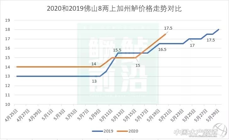 | 中國水產(chǎn)頻道原創(chuàng)報道, 一天一個價,繼續(xù)漲! 文/水產(chǎn)前沿賀志義 圖/杰大飼料 一周行情綜述 本周廣東佛山加州鱸價格接連上漲,從上周末開始,幾乎每天漲0.5元/斤,一天一個價,目前8兩上加州鱸17.5元/斤,漲勢十分強勁。魚價的持續(xù)上漲也導(dǎo)致養(yǎng)殖戶更加惜售,此外,還有出魚發(fā)生“硬骨”的情況,也對此次價格上漲起到一定助推作用。廣東魚價上漲引起全國新一輪漲價潮,其他主產(chǎn)區(qū)紛紛隨之上漲,普遍上漲1.5-2元/斤,四川9兩上規(guī)格的加州鱸漲至21元/斤,繼續(xù)領(lǐng)跑全國。 魚苗方面:朝苗價格再次下降,8朝苗價格為0.38元/尾,8.5朝為0.45元/尾,9朝0.62-0.65元/尾左右,普遍下降0.1元/尾左右。 主產(chǎn)區(qū)行情簡析、報價 廣東佛山:今天8兩上報價為17.5元/斤,比上周暴漲2.5元/斤左右,本周抓魚“硬骨”情況還是比較明顯,而且魚價上漲之后養(yǎng)殖戶也十分惜售,導(dǎo)致目前市場總體比較缺魚。昨日,在佛山塘頭兩位魚車司機為了“搶魚”更是大打出手。提醒養(yǎng)殖戶朋友注意后期隨著氣溫回升,加州鱸長途運輸風(fēng)險增加,省外魚車預(yù)計會有所減少,建議合理安排出魚時間。 浙江湖州:今天統(tǒng)貨報價為15-16元/斤,同比上周上漲0.5元/斤左右。某流通商反映目前湖州地區(qū)的存魚量比較少,現(xiàn)在主要是在菱湖周邊和吳江地區(qū)抓魚,基本上可以滿足訂單需求,但走貨量明顯減少。華東加州鱸供應(yīng)的市場本周最明顯的變化是廣東魚的量減少的比較多,氣溫太高,長途運輸容易死魚。 江蘇吳江:今天8兩上報價為16.5元/斤,據(jù)悉目前吳江地區(qū)出魚以統(tǒng)貨居多,降低風(fēng)險,賣統(tǒng)貨比較安全,價格在15.5元/斤左右。廣東魚價的上漲也造成吳江養(yǎng)殖戶惜售心理加重,當(dāng)?shù)啬沉魍ㄉ瘫硎绢A(yù)計吳江很快也會和廣東魚價持平。 四川成都:今天報價9兩上21元/斤,同比上周上漲1元/斤,由于四川當(dāng)?shù)乜缮鲜械募又蓣|存塘量比較少,養(yǎng)殖戶又比較惜售,流通商再次提價刺激出魚,也有部分流通商前往廣西、湖南等地收魚。 湖北武漢:今天8兩上報價為17元/斤,同比上周上漲1.5元/斤。據(jù)悉武漢目前也有部分流通商報價17.5元/斤,當(dāng)?shù)匾涣魍ㄉ谭从常罱蒸~比較困難,武漢本地魚在此前漲到16元/斤時,出魚放苗的人比較多,導(dǎo)致現(xiàn)在商品魚比較少,預(yù)計近期要去省外抓魚。 湖南華容:今天8兩上報價為18元/斤左右,9兩上報價為18.5元/斤左右,湖南本地目前比較缺魚,很多流通商都在找魚或者搶魚,把價格抬高,當(dāng)然也受廣東魚價的影響。 廣西南寧:今天1斤上報價為18.5元/斤左右,同比上周暴漲2元/斤,當(dāng)?shù)匾涣魍ㄉ谭从衬壳皬V西還有一些網(wǎng)箱魚,主要集中在紅水河巖灘庫區(qū),其他地方網(wǎng)箱魚很少了,土塘也只剩少量,總體來說市場上比較缺魚。 |
