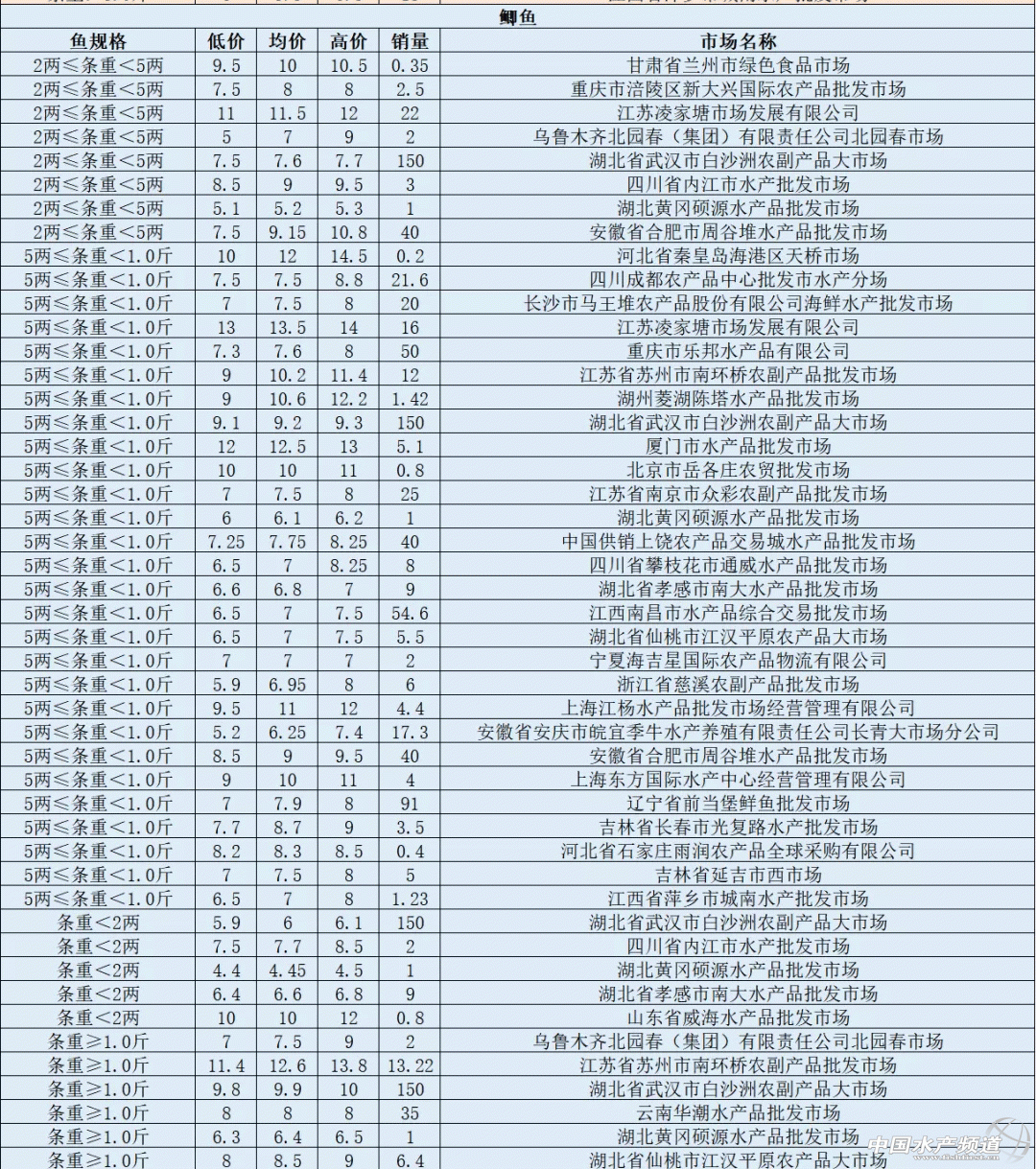 摘要: 中國(guó)水產(chǎn)頻道報(bào)道,2020年5月20日最新鯽魚各地批發(fā)市場(chǎng)報(bào)價(jià)。