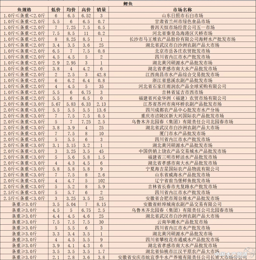 摘要: 中國水產(chǎn)頻道報道,2020年5月20日最新鯉魚各地批發(fā)市場報價。